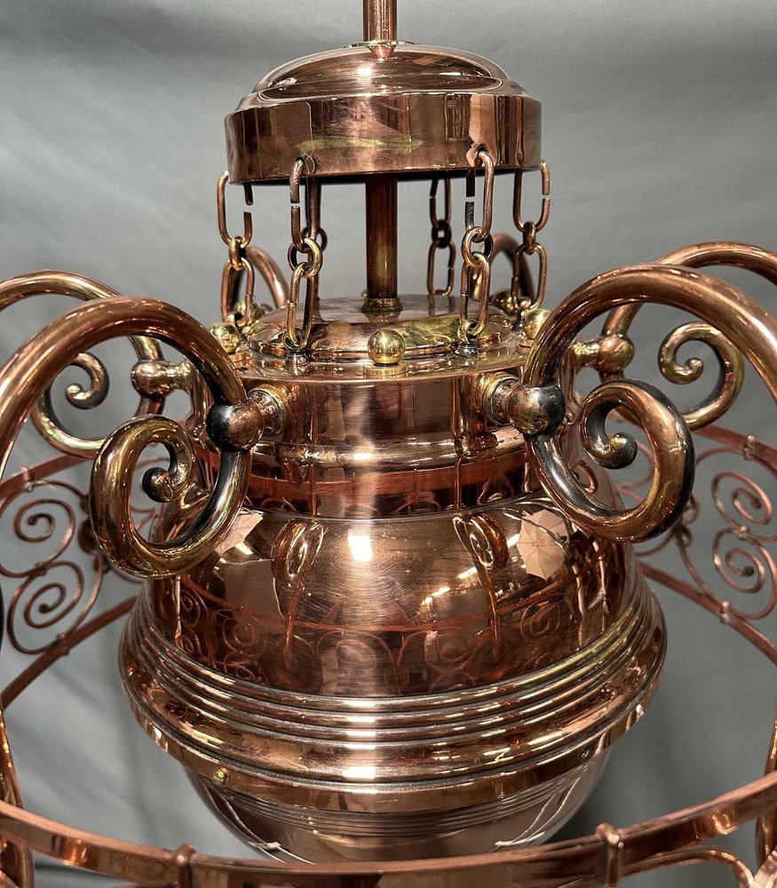 Art Nouveau Copper Light Chandelier, 1920s