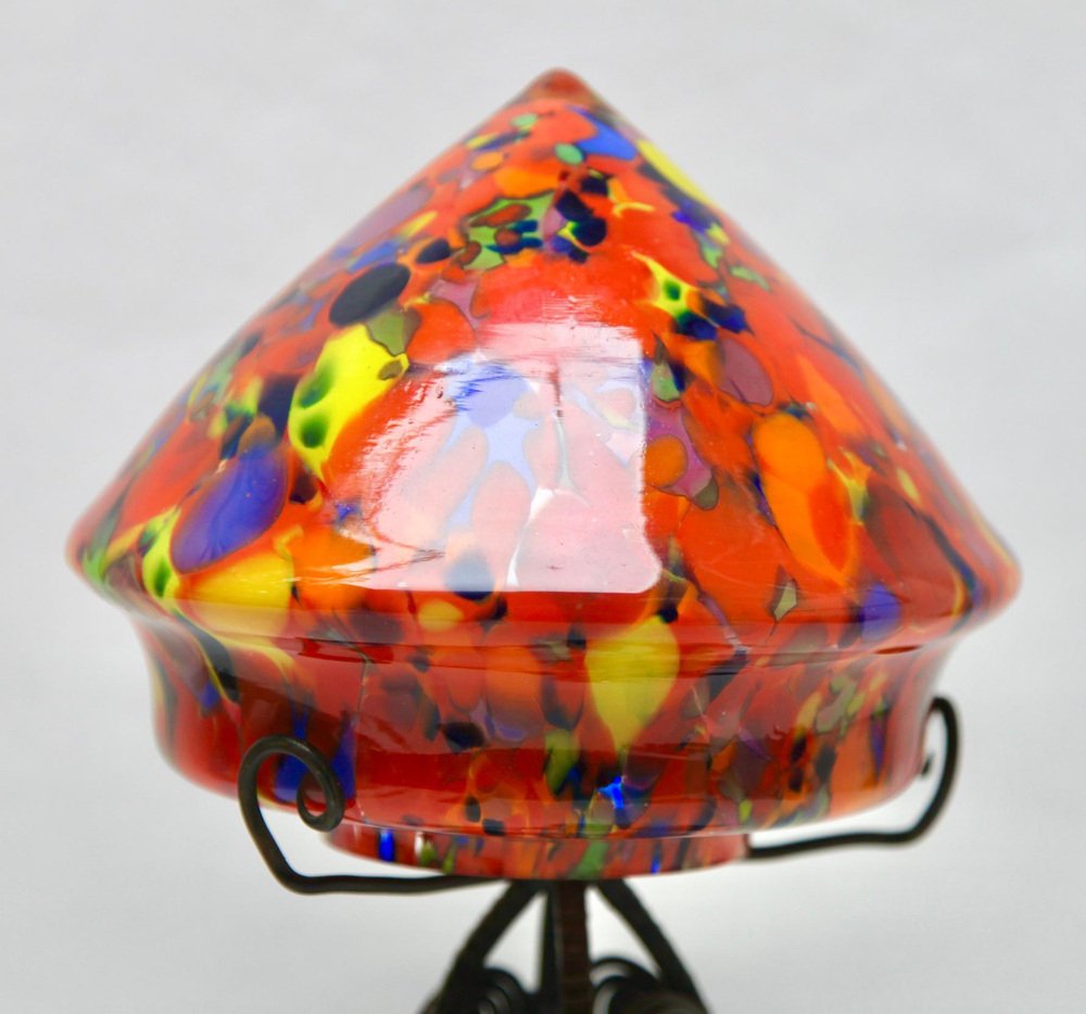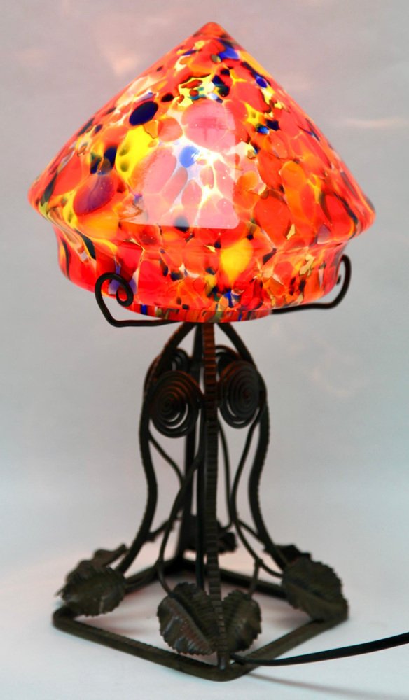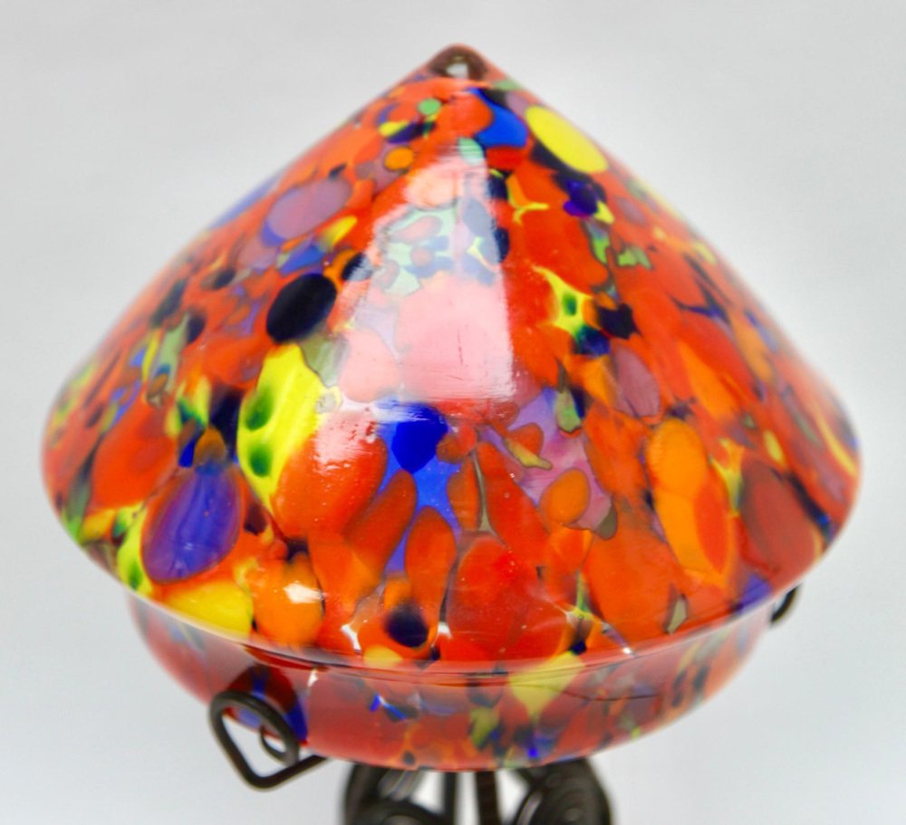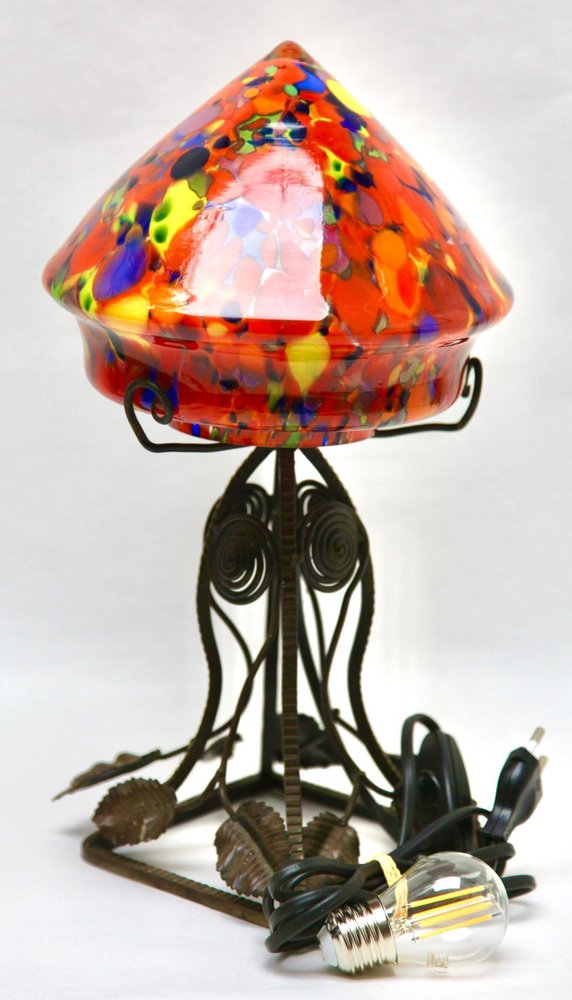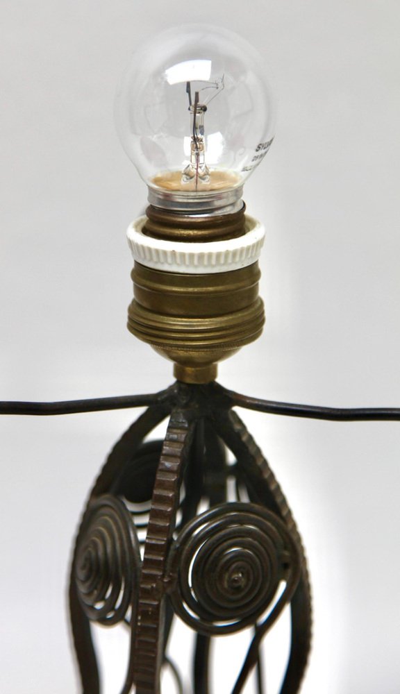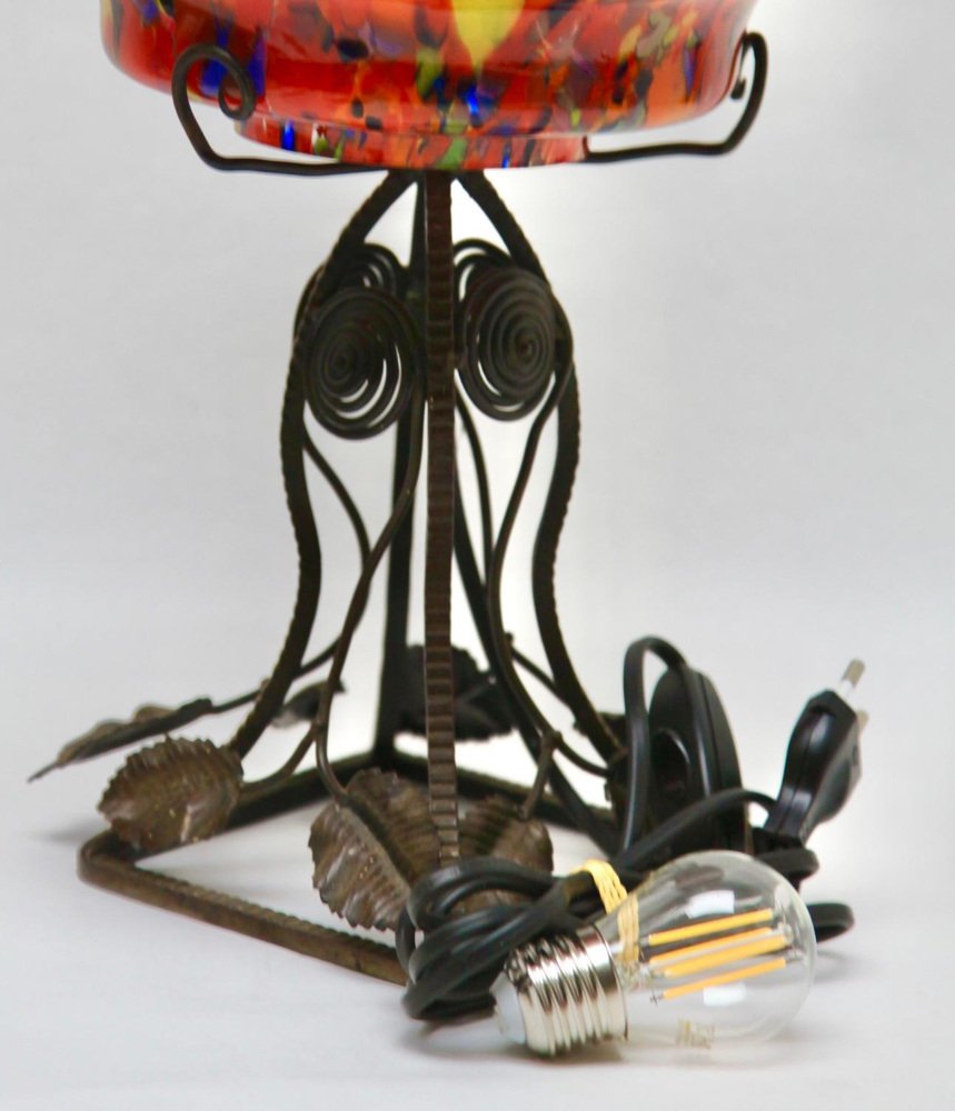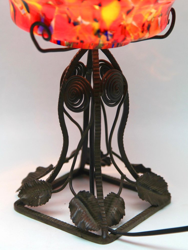 Art Nouveau Lamp in Wrought Iron with Glass Shade Scailmont, 1930s