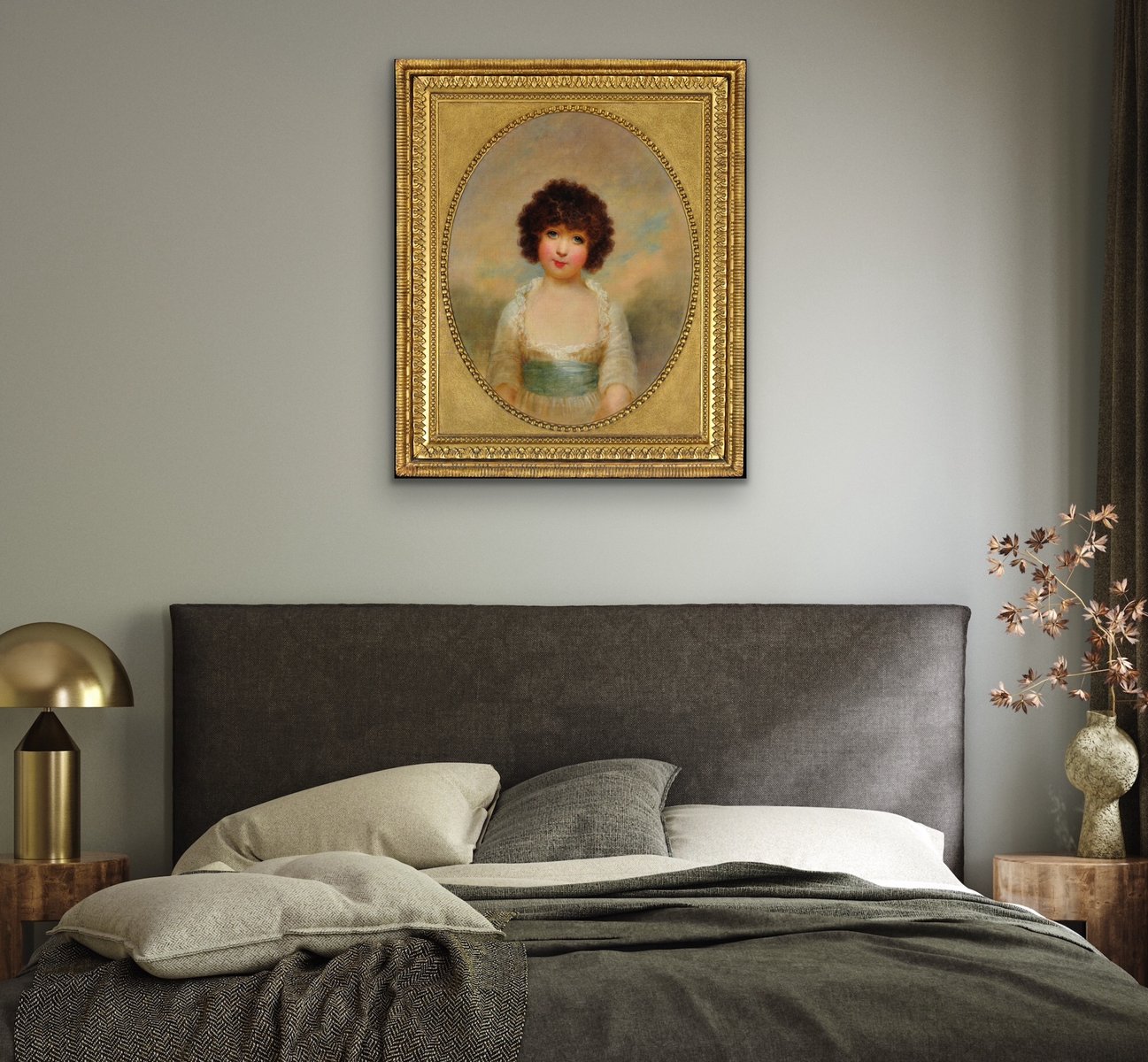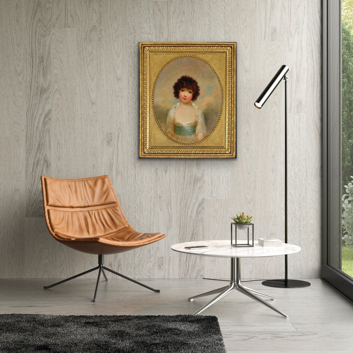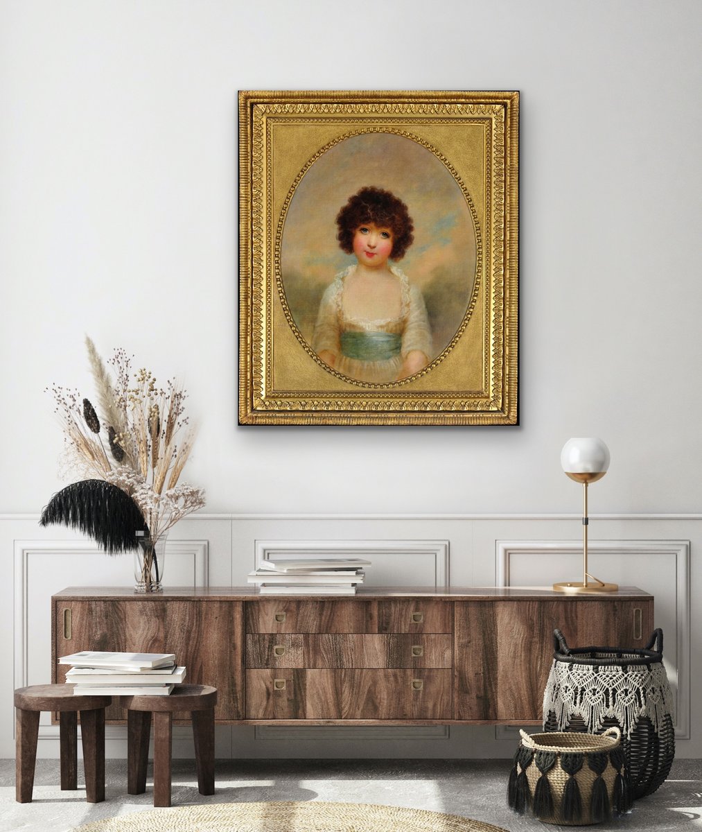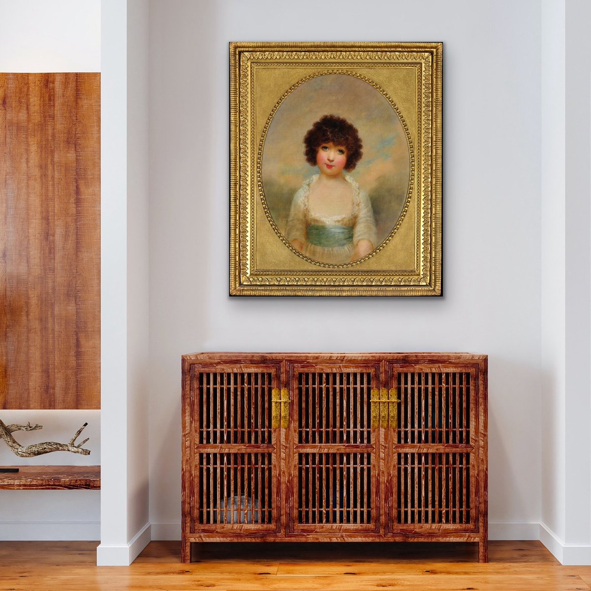 This adorable original oil on canvas depicts Charlotte, the eldest child and first daughter of the first Lord Teignmouth, aged around five to seven years old. (On the basis that the family returned to England in 1798 when Charlotte would have been 11 years old, this painting was almost certainly created in India, during the time when her father was the Governor General of India. We also know that the artist was painting portraits in India the decade up to 1795, when he returned to England.)