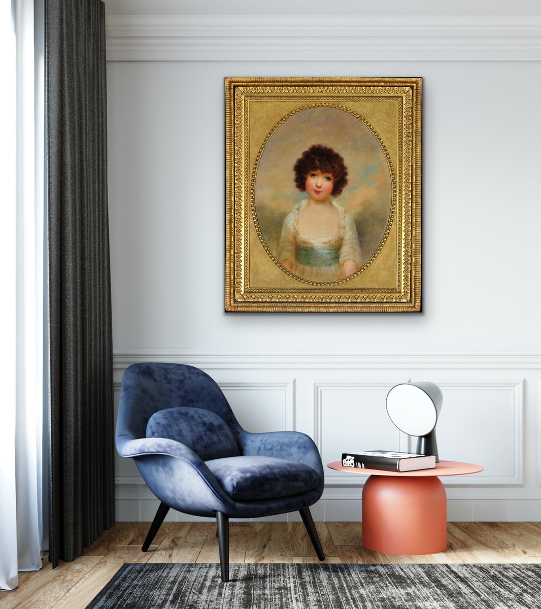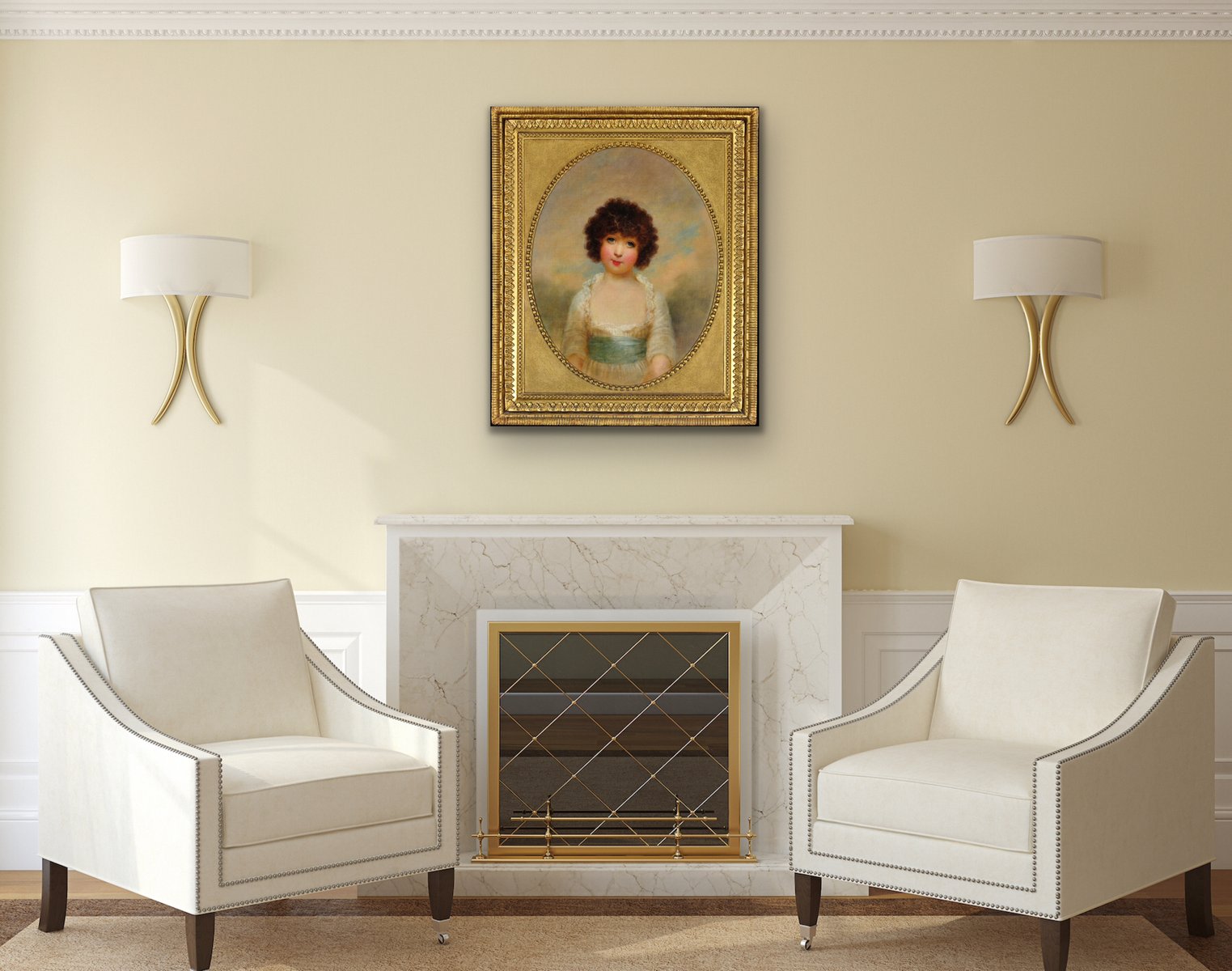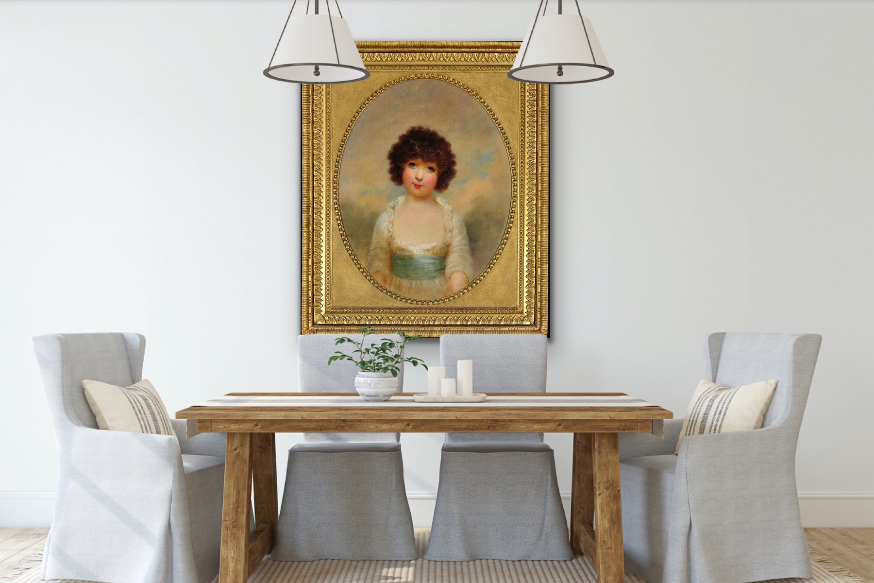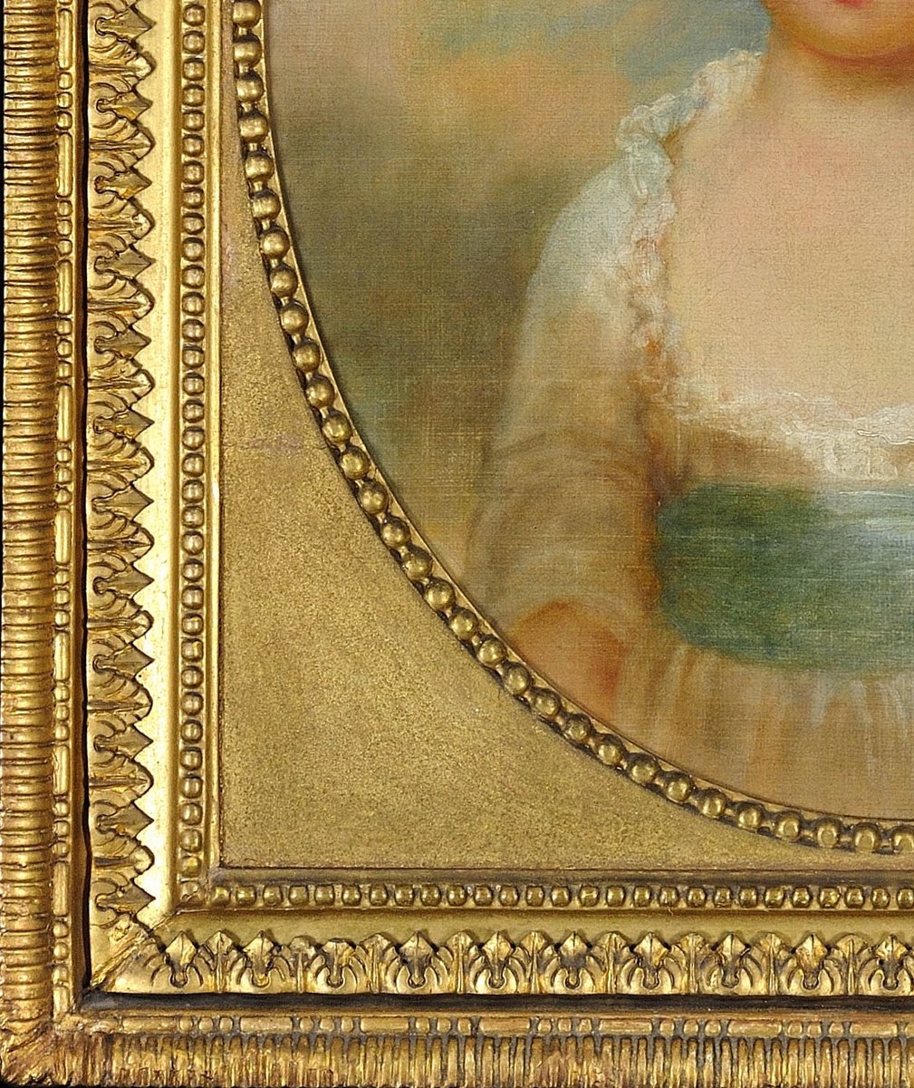 This adorable original oil on canvas depicts Charlotte, the eldest child and first daughter of the first Lord Teignmouth, aged around five to seven years old. (On the basis that the family returned to England in 1798 when Charlotte would have been 11 years old, this painting was almost certainly created in India, during the time when her father was the Governor General of India. We also know that the artist was painting portraits in India the decade up to 1795, when he returned to England.)