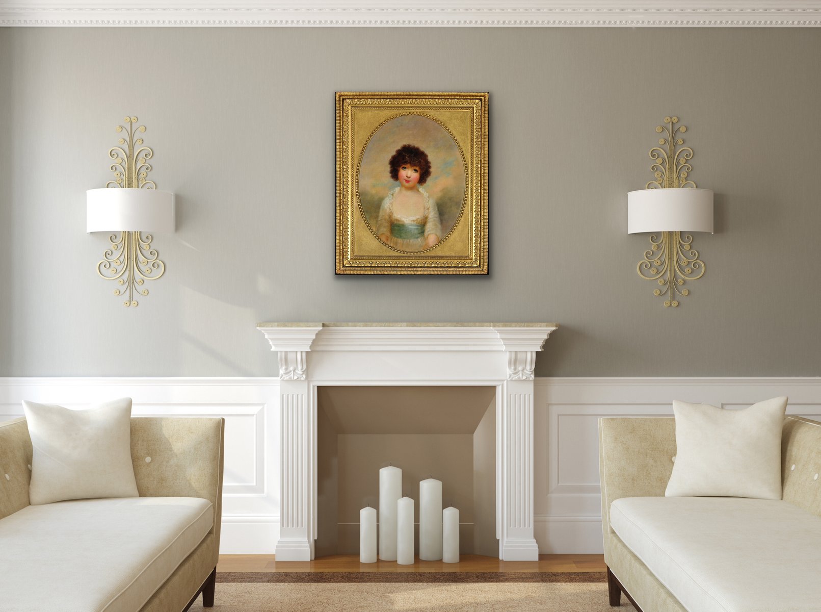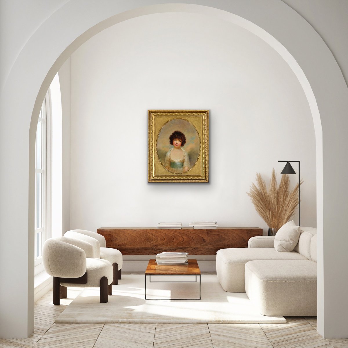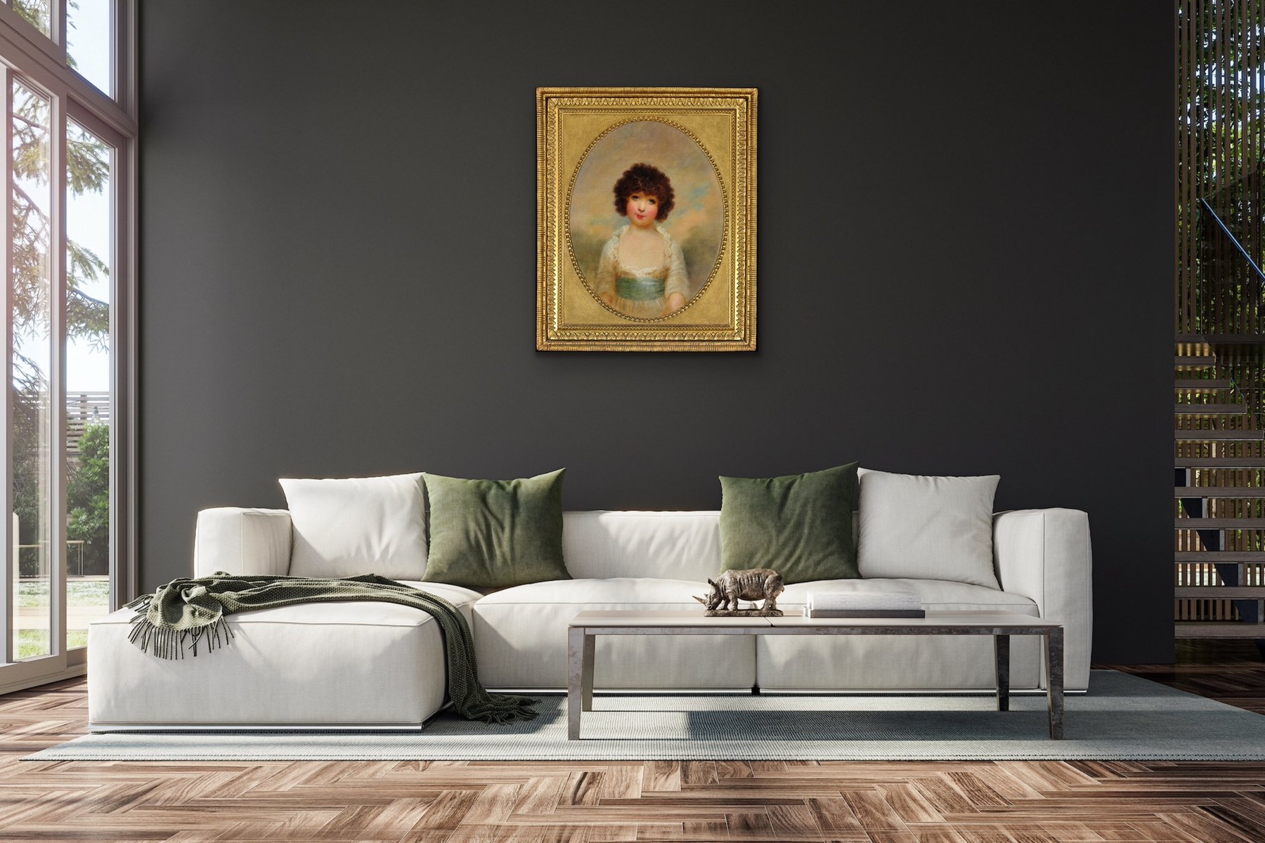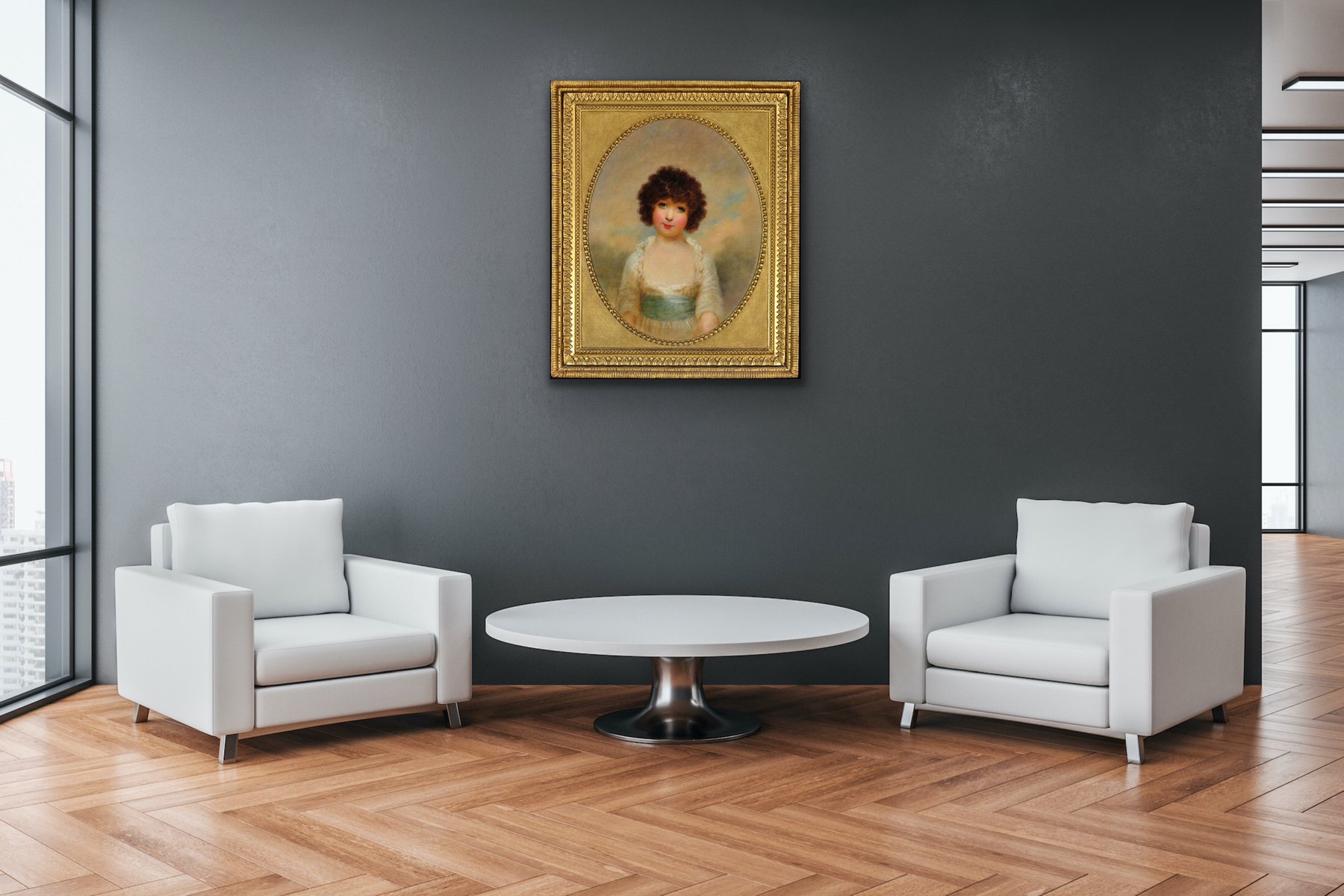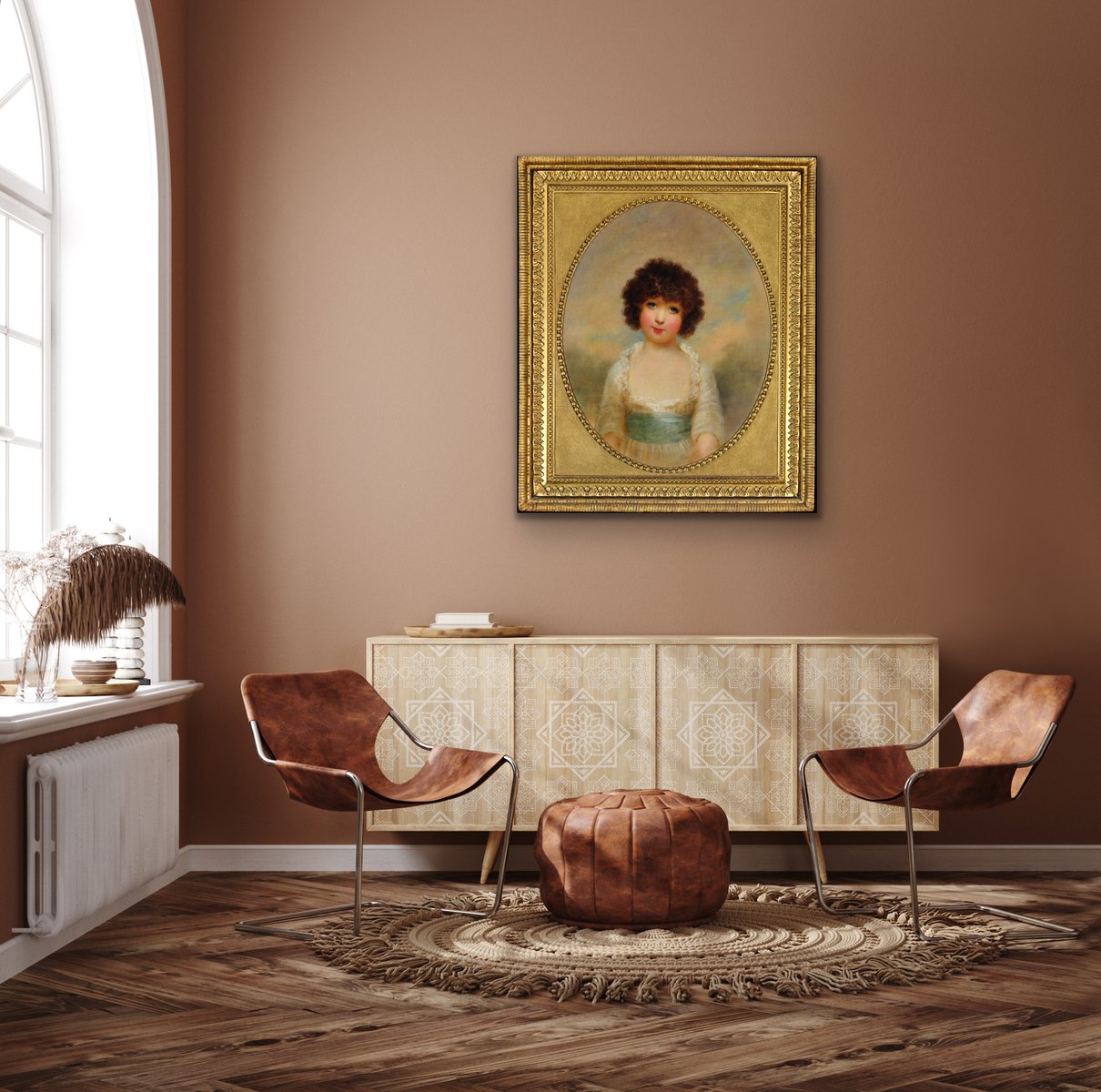 This adorable original oil on canvas depicts Charlotte, the eldest child and first daughter of the first Lord Teignmouth, aged around five to seven years old. (On the basis that the family returned to England in 1798 when Charlotte would have been 11 years old, this painting was almost certainly created in India, during the time when her father was the Governor General of India. We also know that the artist was painting portraits in India the decade up to 1795, when he returned to England.)