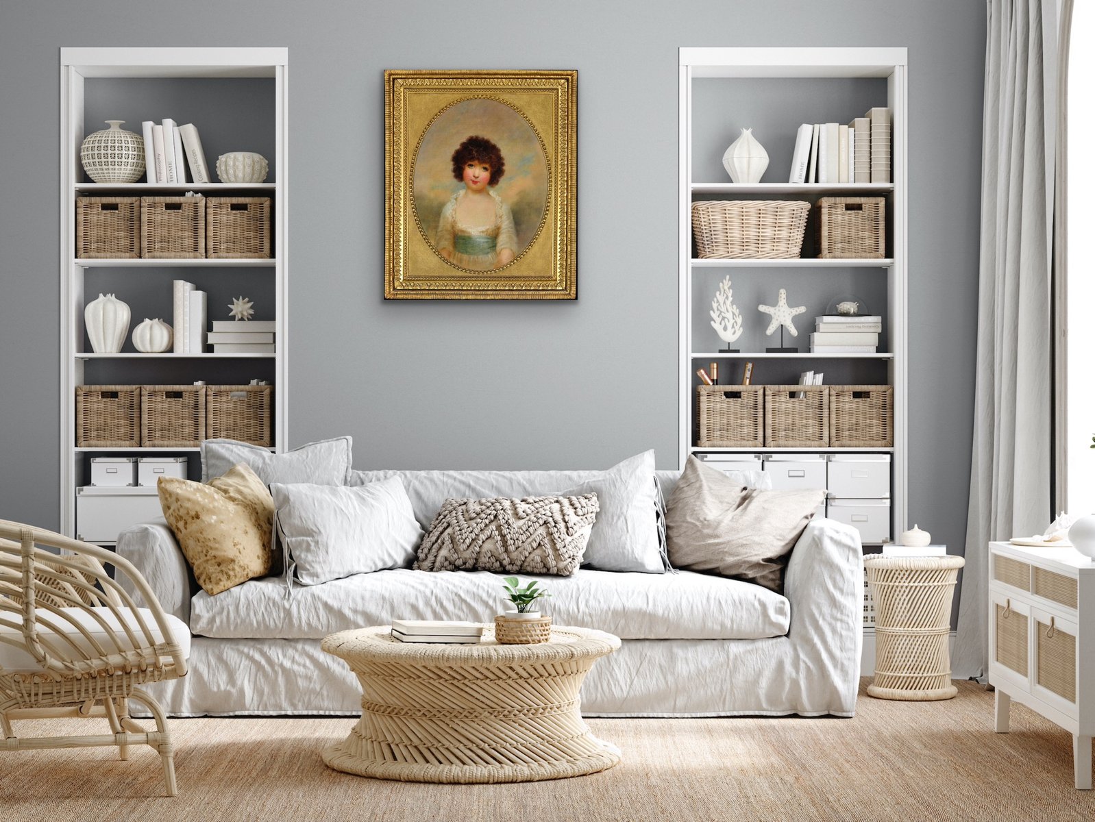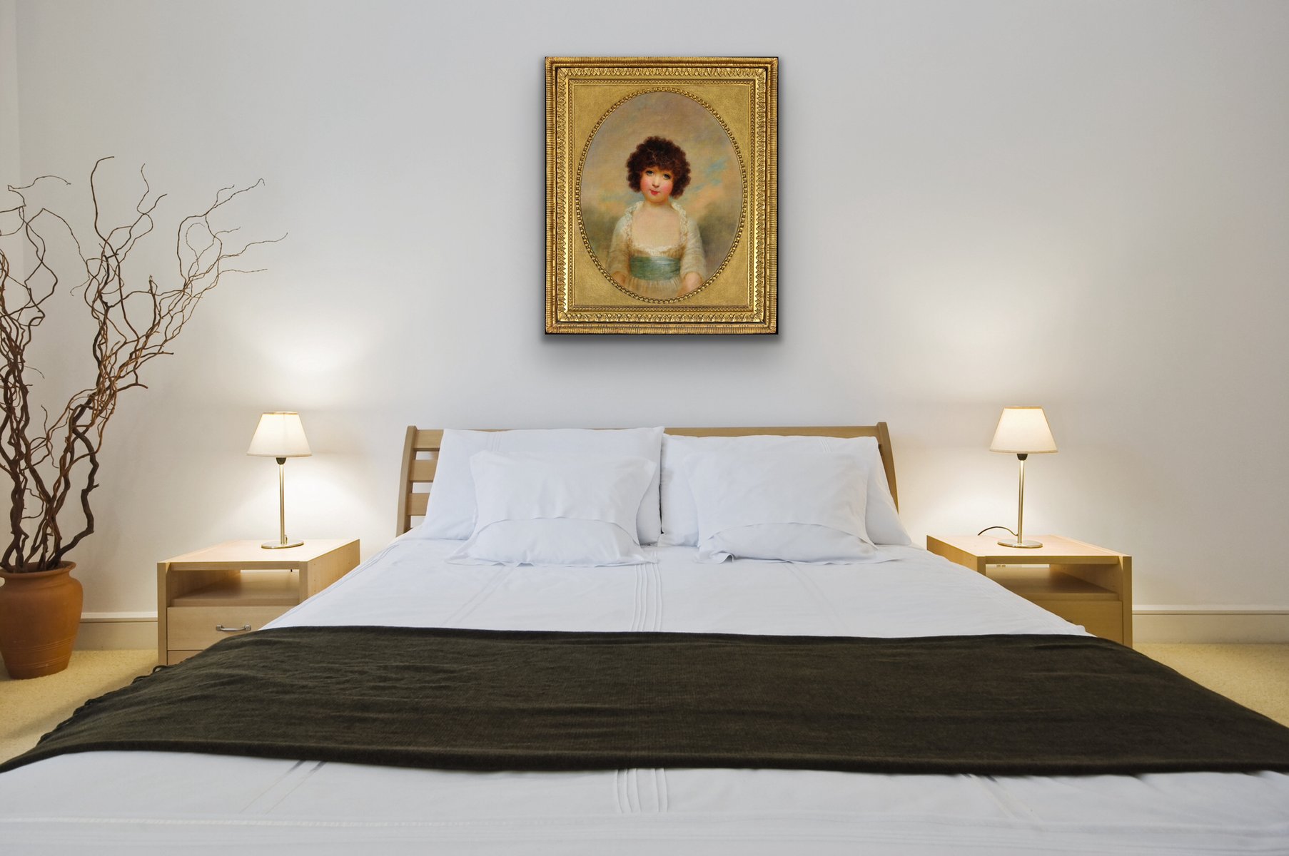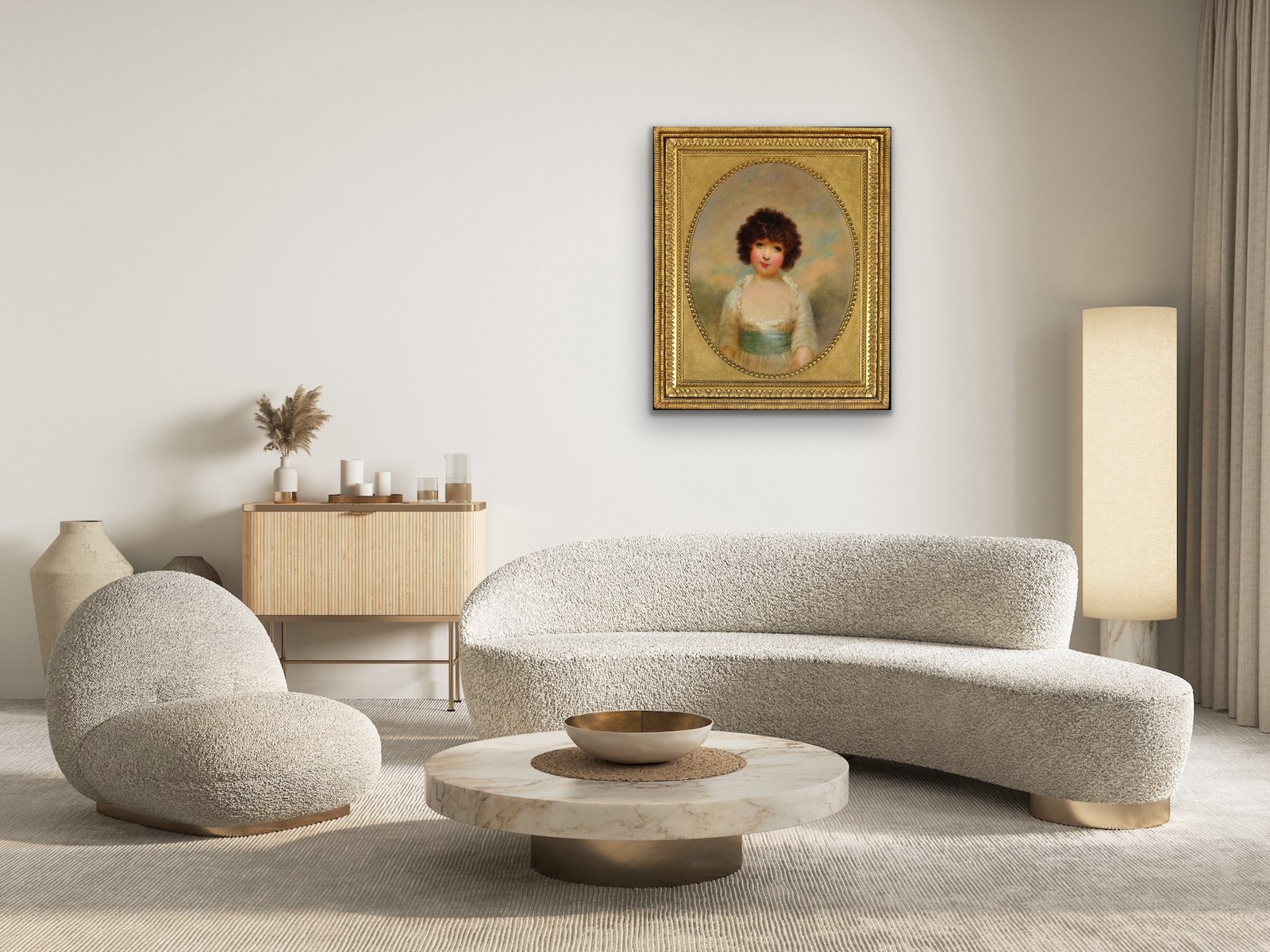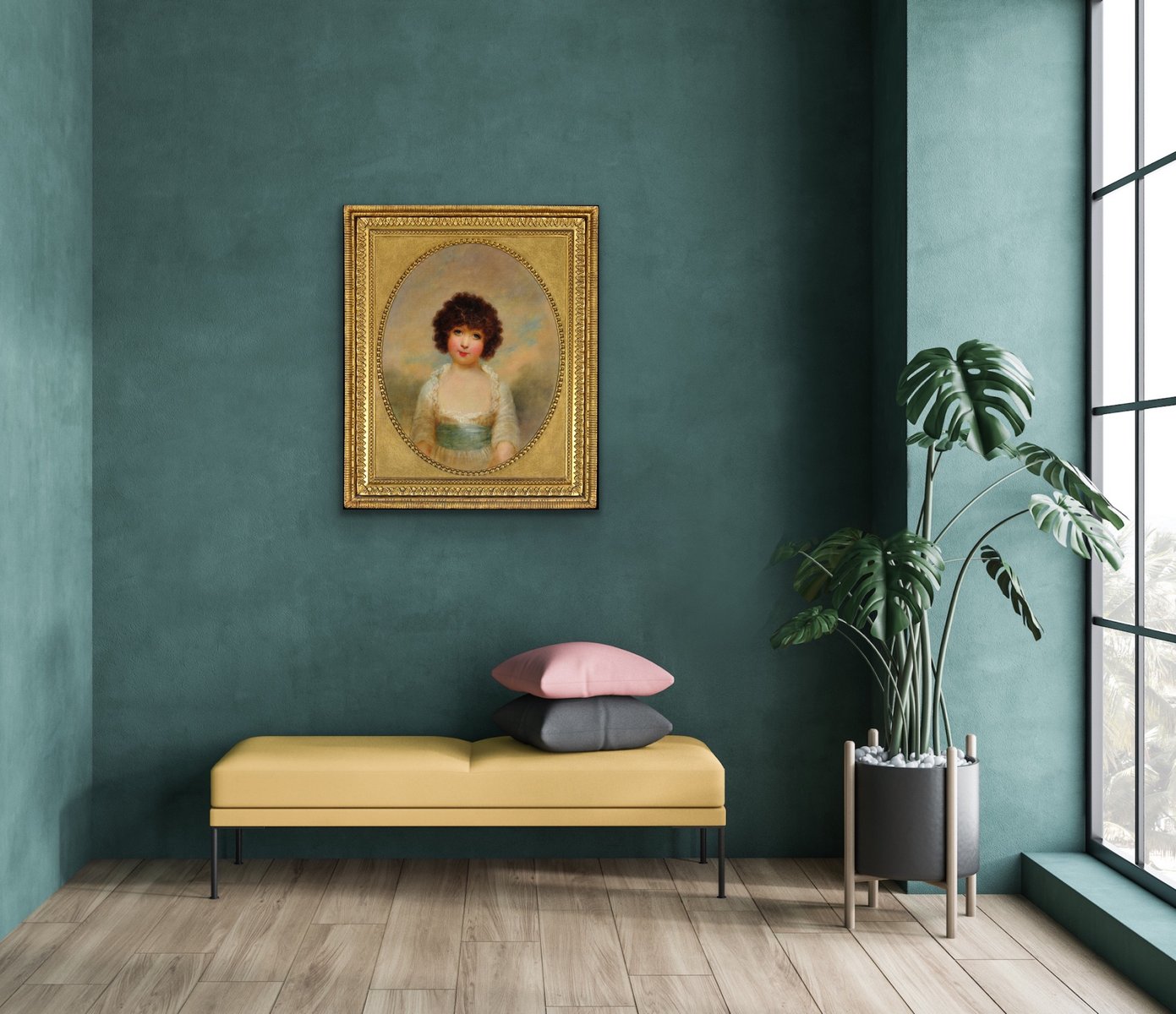 This adorable original oil on canvas depicts Charlotte, the eldest child and first daughter of the first Lord Teignmouth, aged around five to seven years old. (On the basis that the family returned to England in 1798 when Charlotte would have been 11 years old, this painting was almost certainly created in India, during the time when her father was the Governor General of India. We also know that the artist was painting portraits in India the decade up to 1795, when he returned to England.)