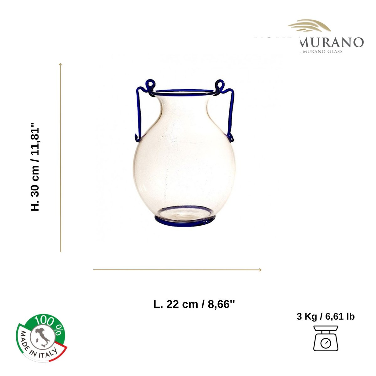 Artistic Amphora Vase in Murano Glass from YourMurano