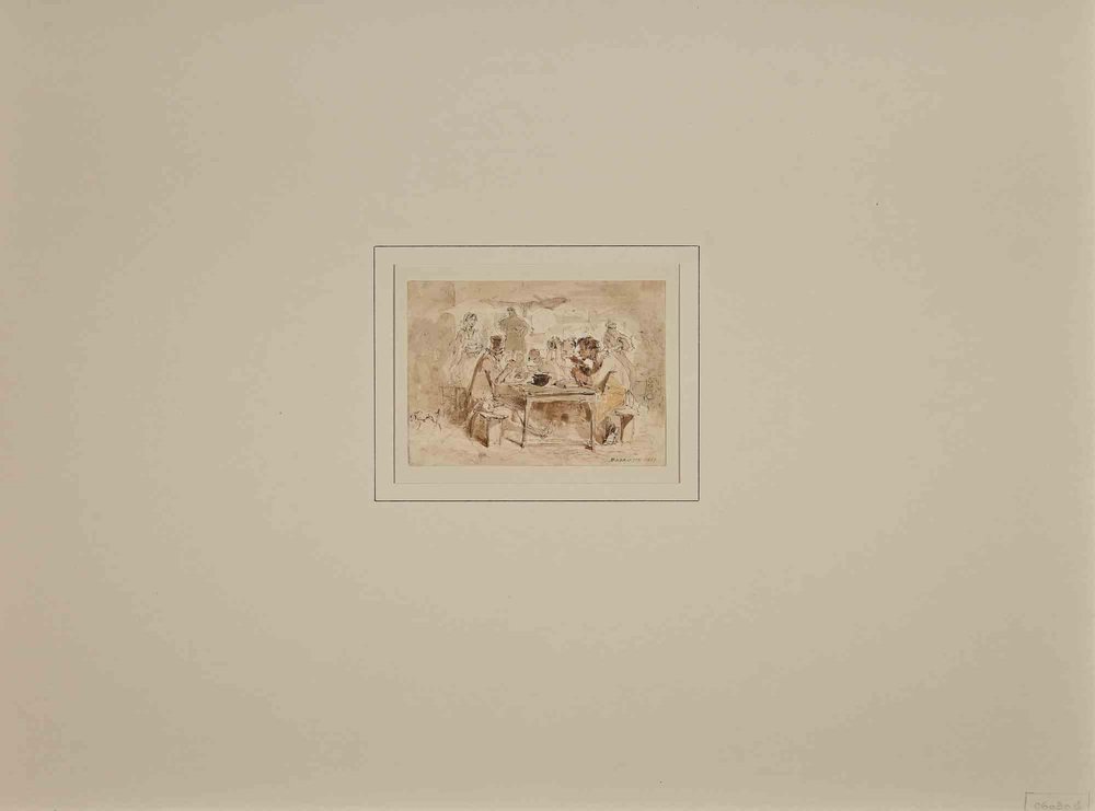 Auguste Andrieux, The Dinner, Ink & Watercolor, 1848