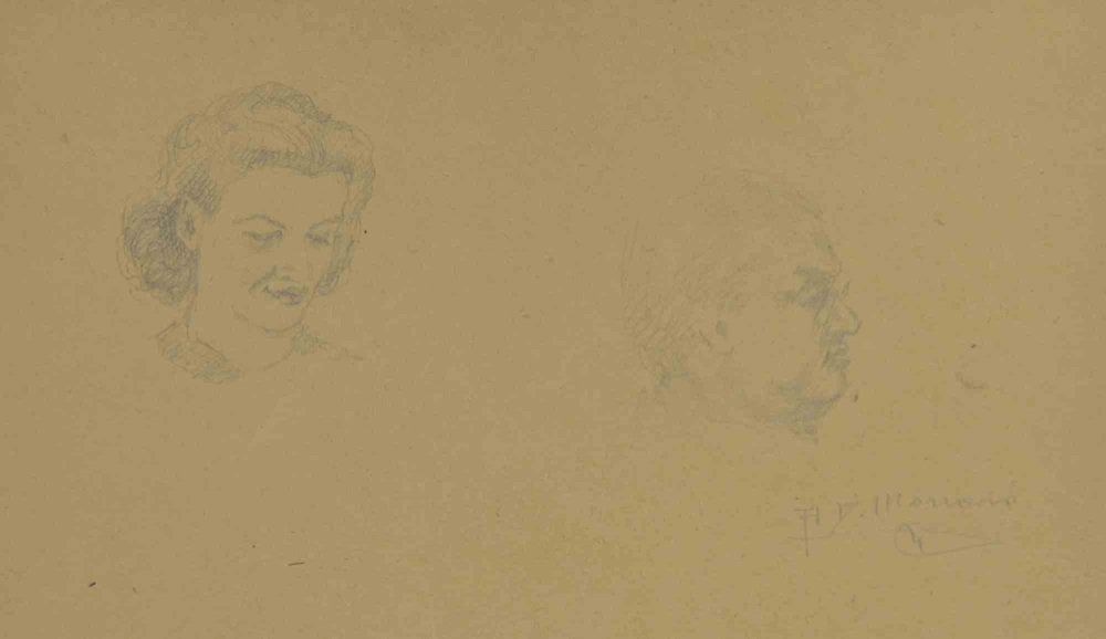 Augusto Monari, Portraits, Pencil Drawing, Early 20th Century