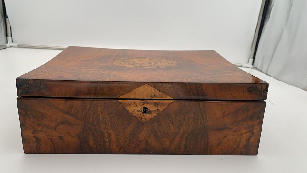 Austrian Biedermeier Jewelry Box in Walnut Veneer, 1820