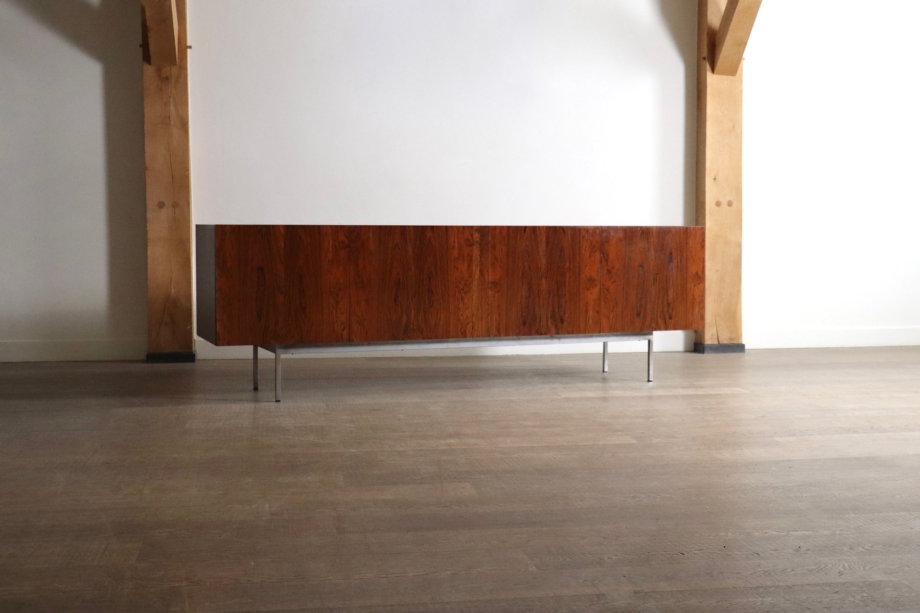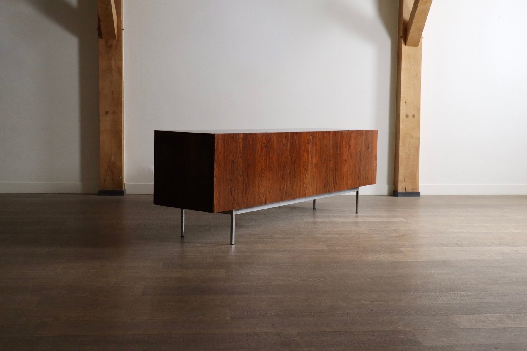 Born in Basel in 1930, Wäckerlin undertook a carpentry apprenticeship and design internships in Paris before splitting his professional career between his native country and Germany. His earliest, and best-known commercially produced work was for Behr, a furniture manufacturer located in Osnabrück, in the north of Germany. The E-226 Canberra Sideboard (1956), and the B40, B41, and B60 Sideboards (all 1957-58 and part of the multifunctional Buffet Series) were born of the Wäckerlin-Behr collaboration.