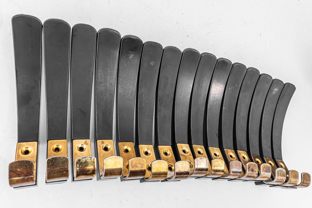 Bakelite and Brass Wall Hooks, Vienna, 1950s, Set of 15
