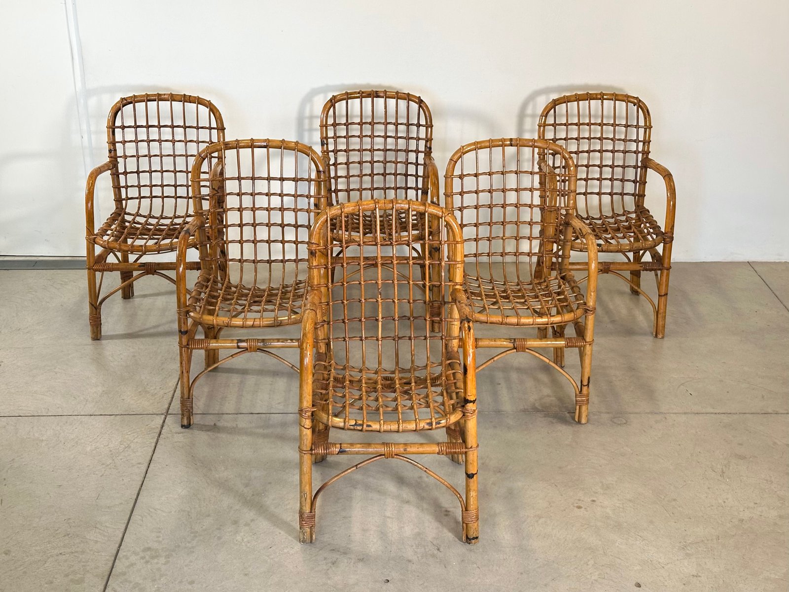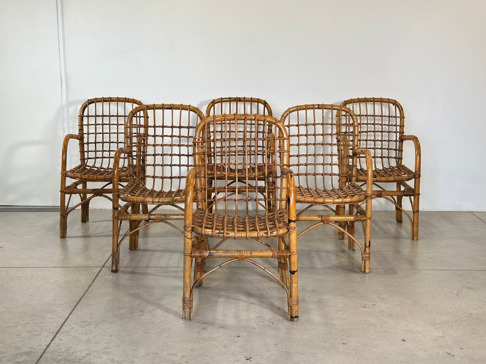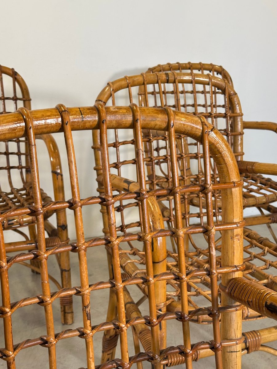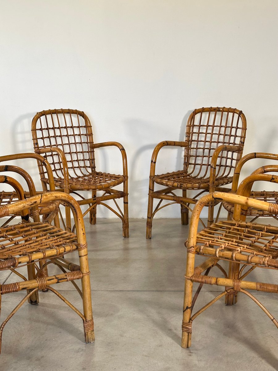 Bamboo Armchairs by Tito Agnoli, 1970s, Set of 6