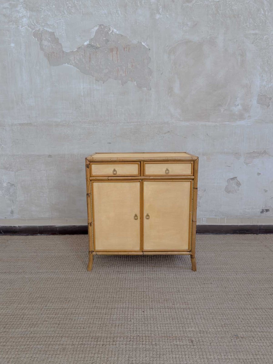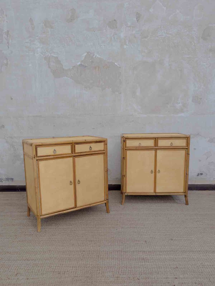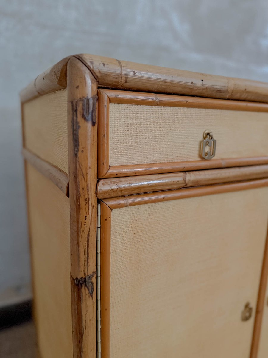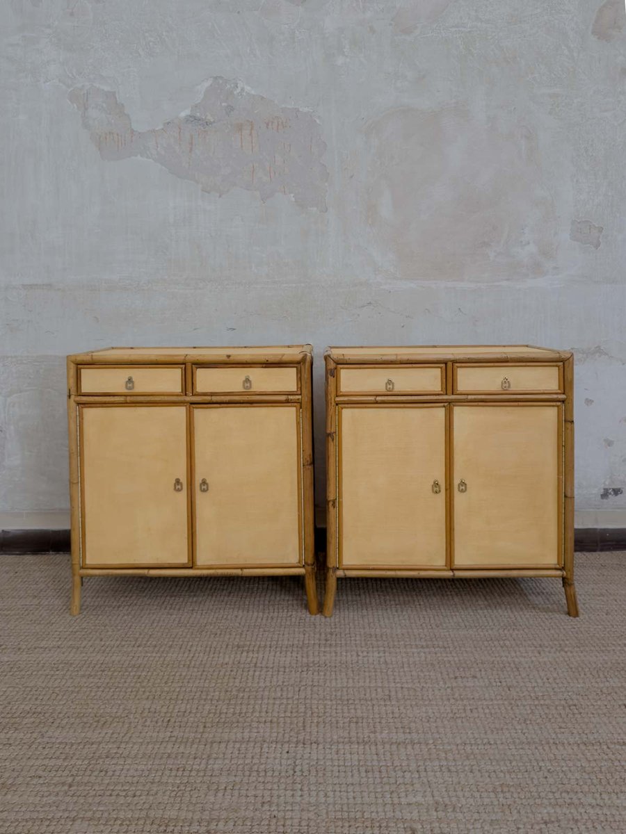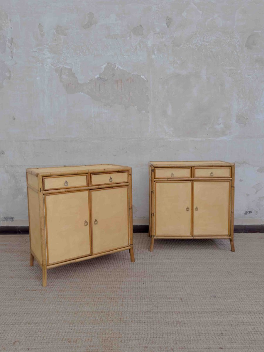 Bamboo Cabinets in Raffia, 1970s, Set of 2
