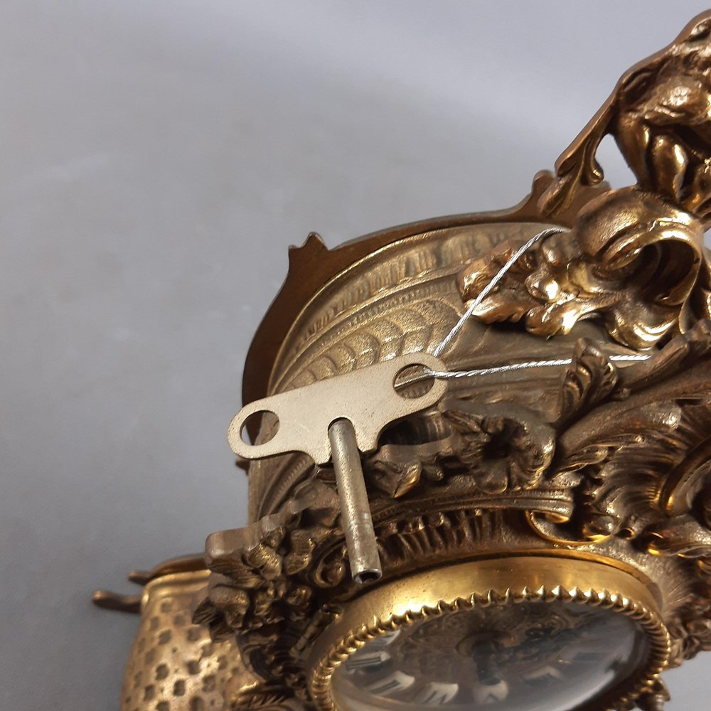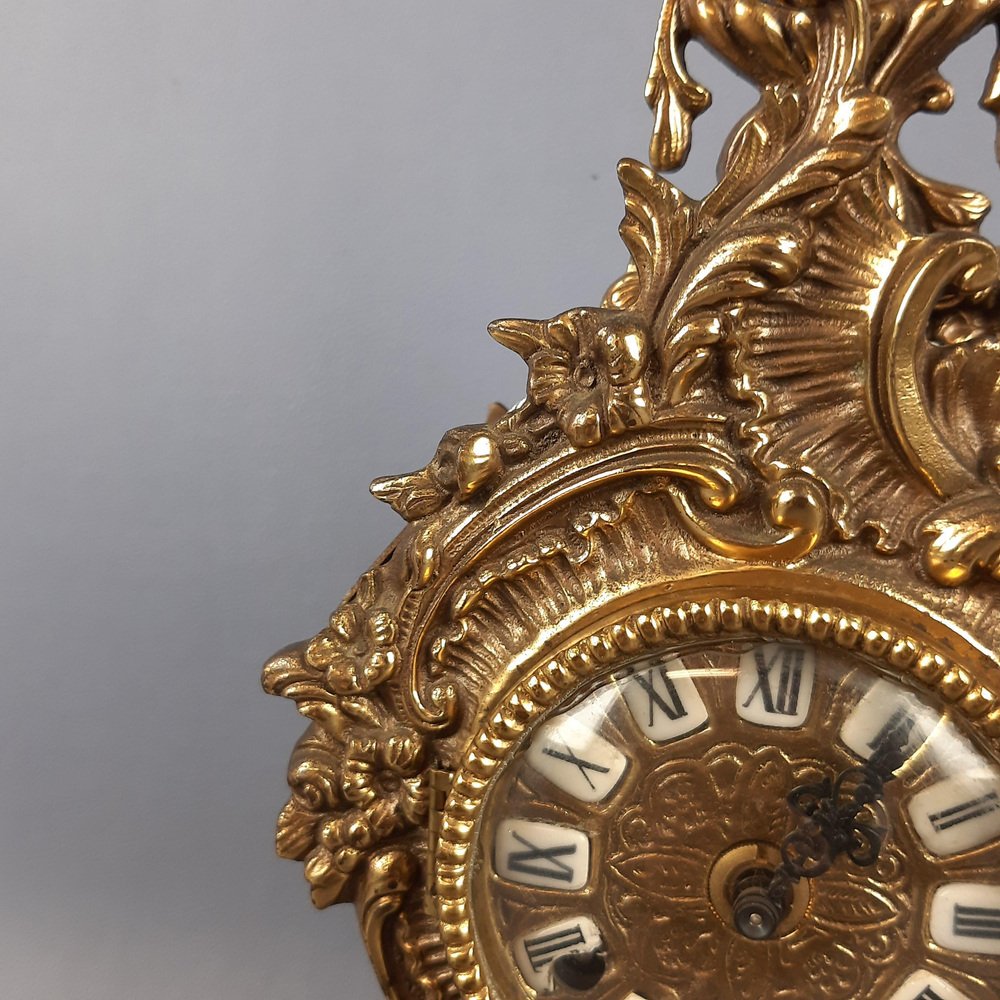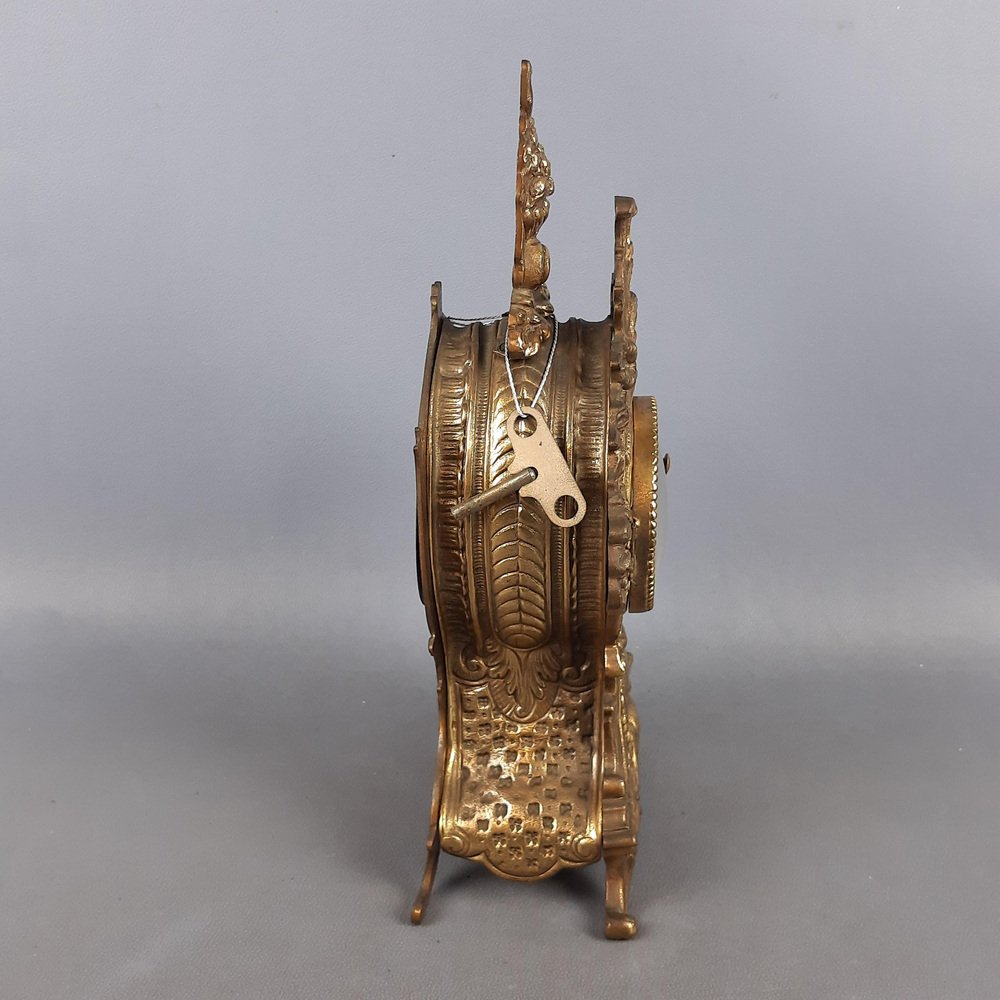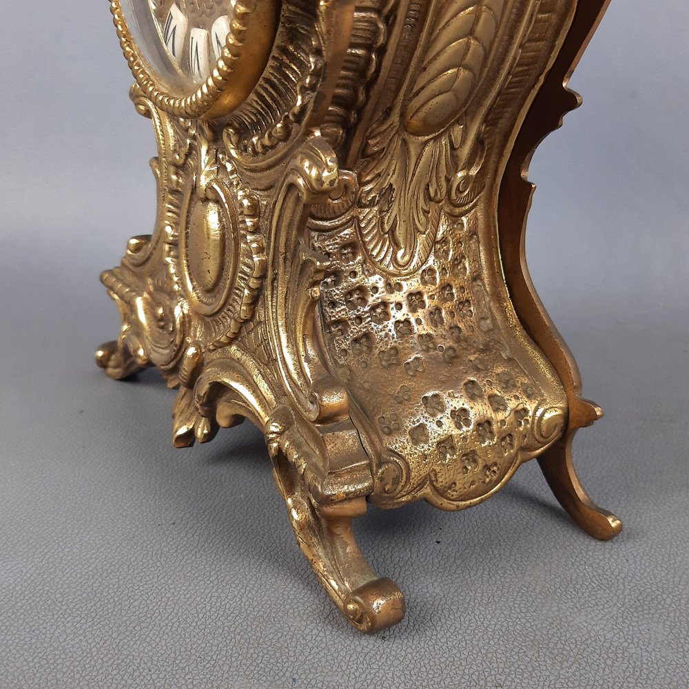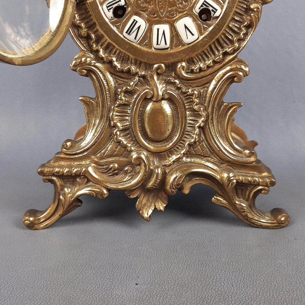 Baroque Mechanical Table Clock in Golden Brass, 1960s