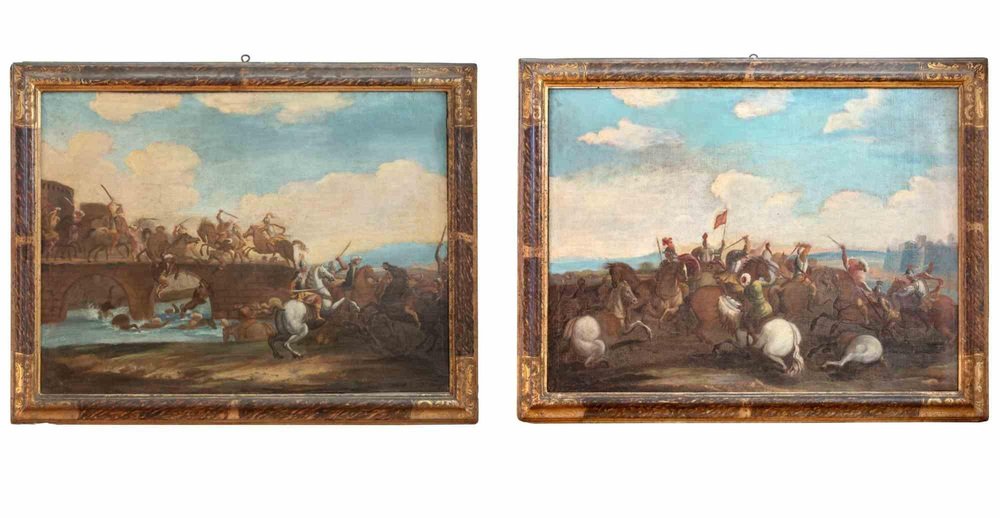 Battle Scenes, Oil Paintings, 18th Century, Set of 2