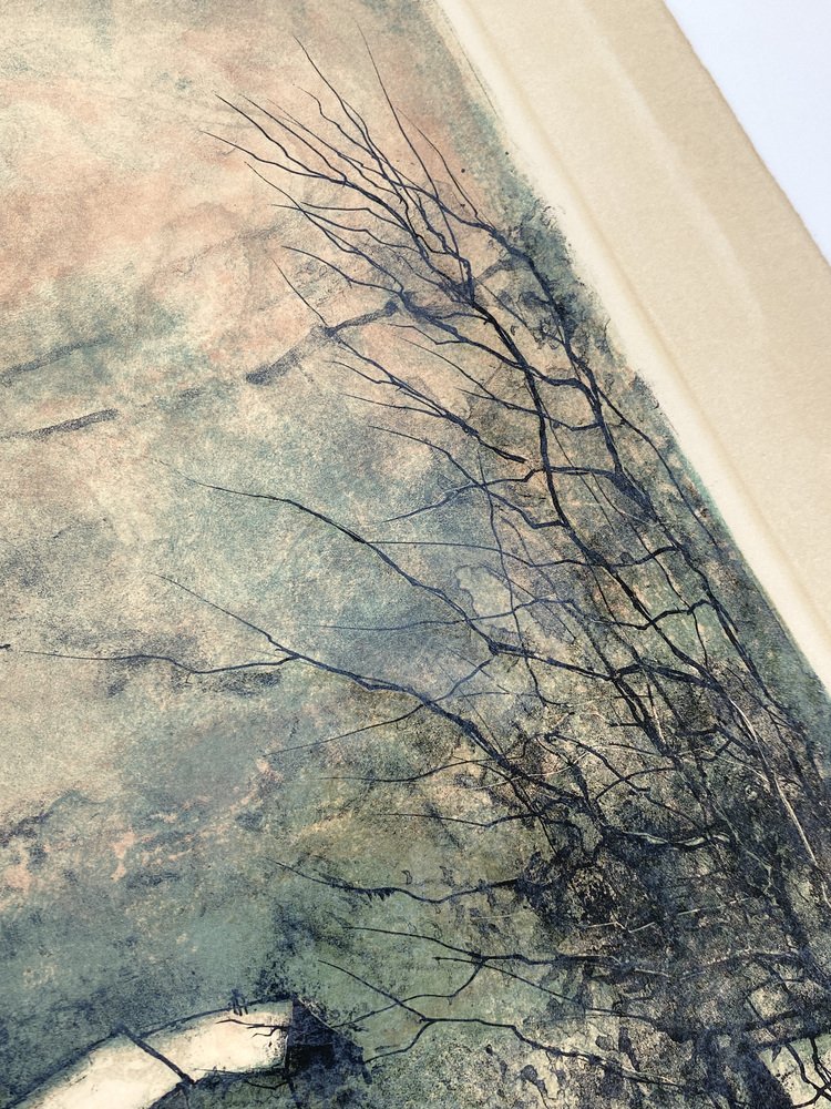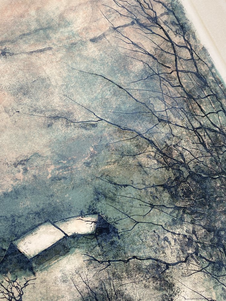 Bernard Gantner, Winter Landscape with Village, Color Lithograph, 20th Century