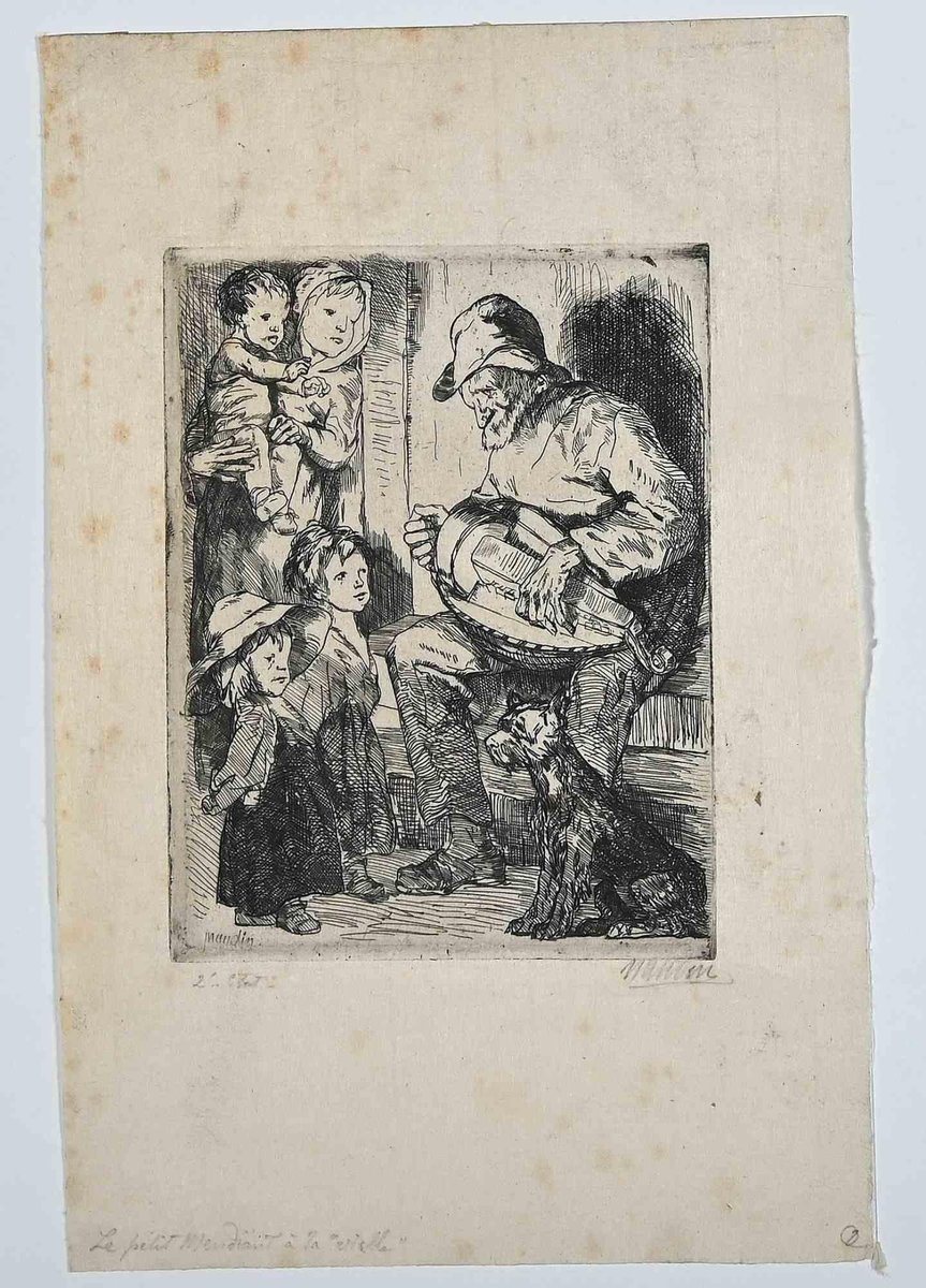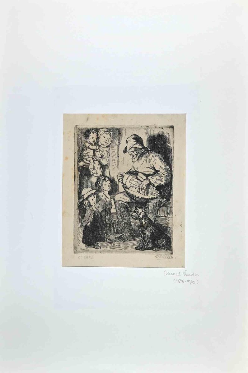 Bernard Naudin, The Little Beggar, Original Etching, Early 20th-Century