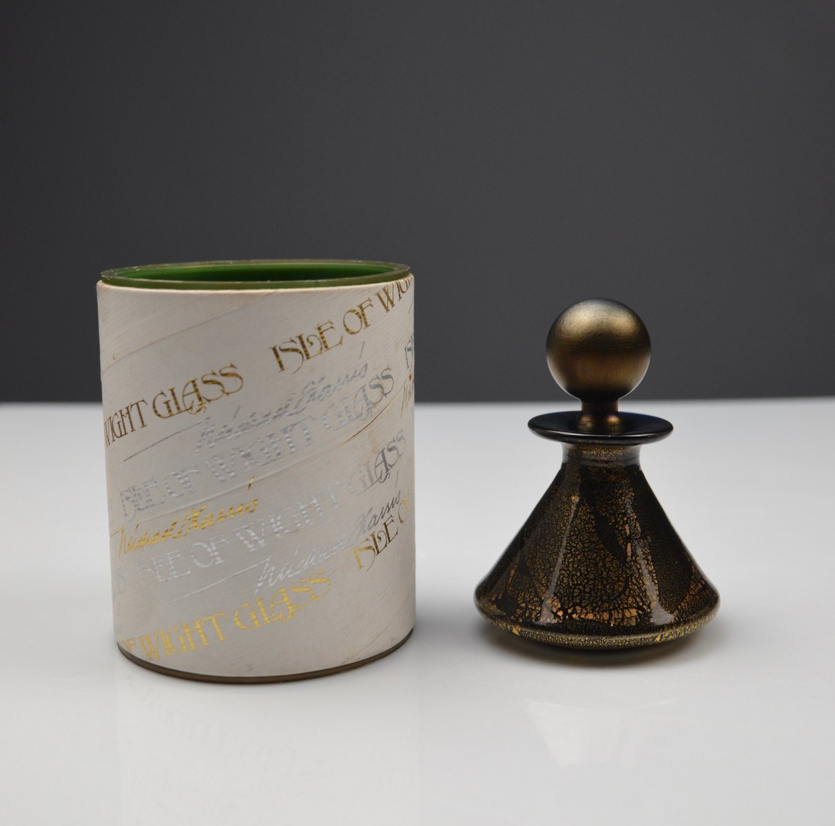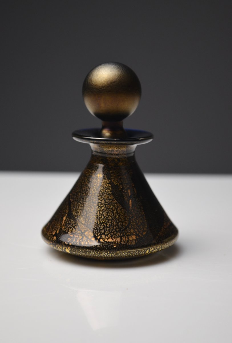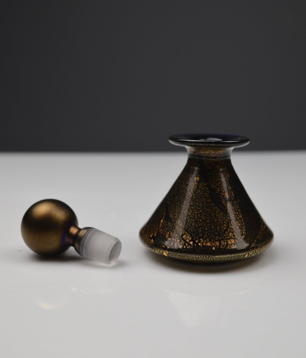 Black and Golden Blown Glass Perfume Bottle from Isle of Wight Studio, England, 1970s