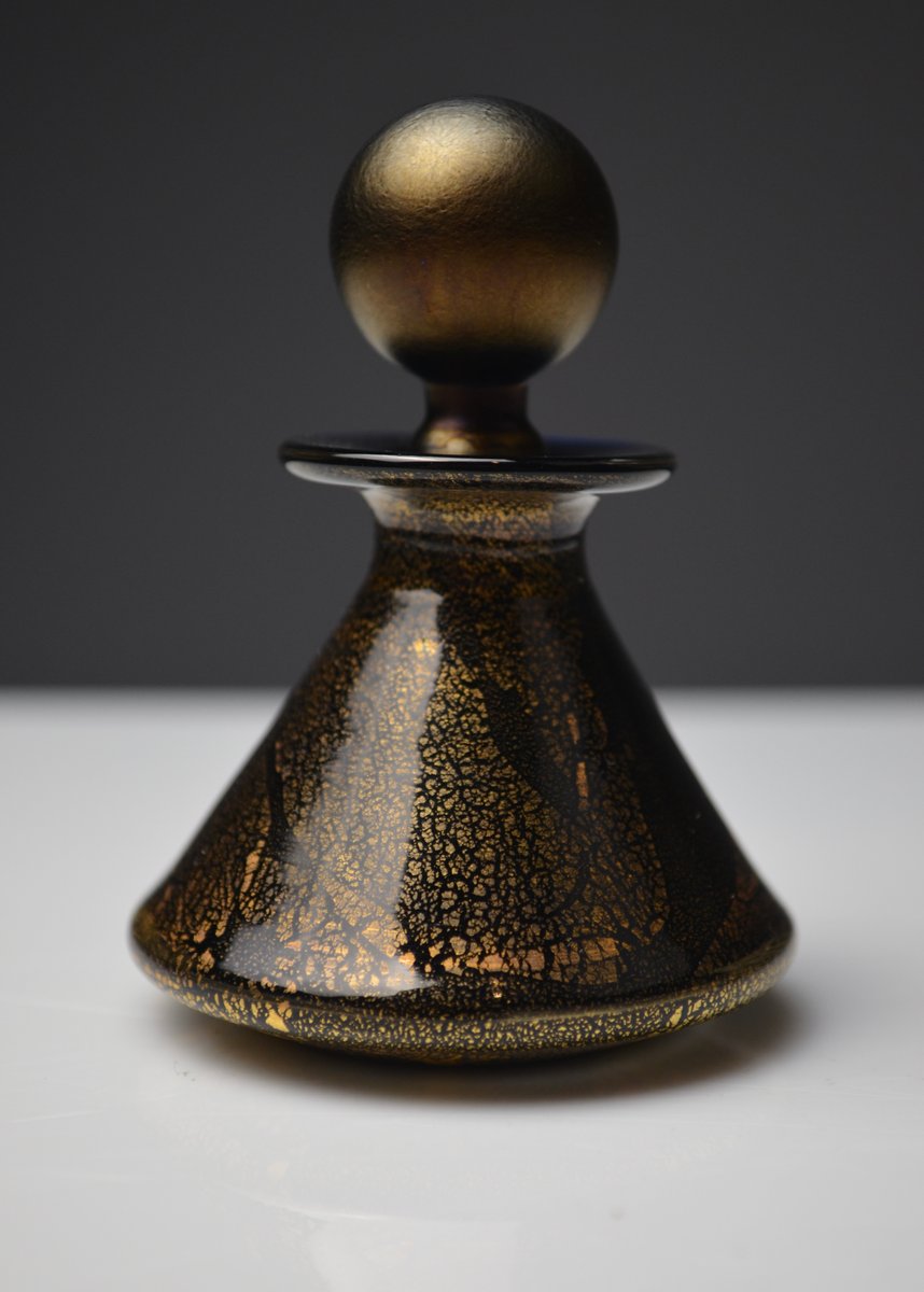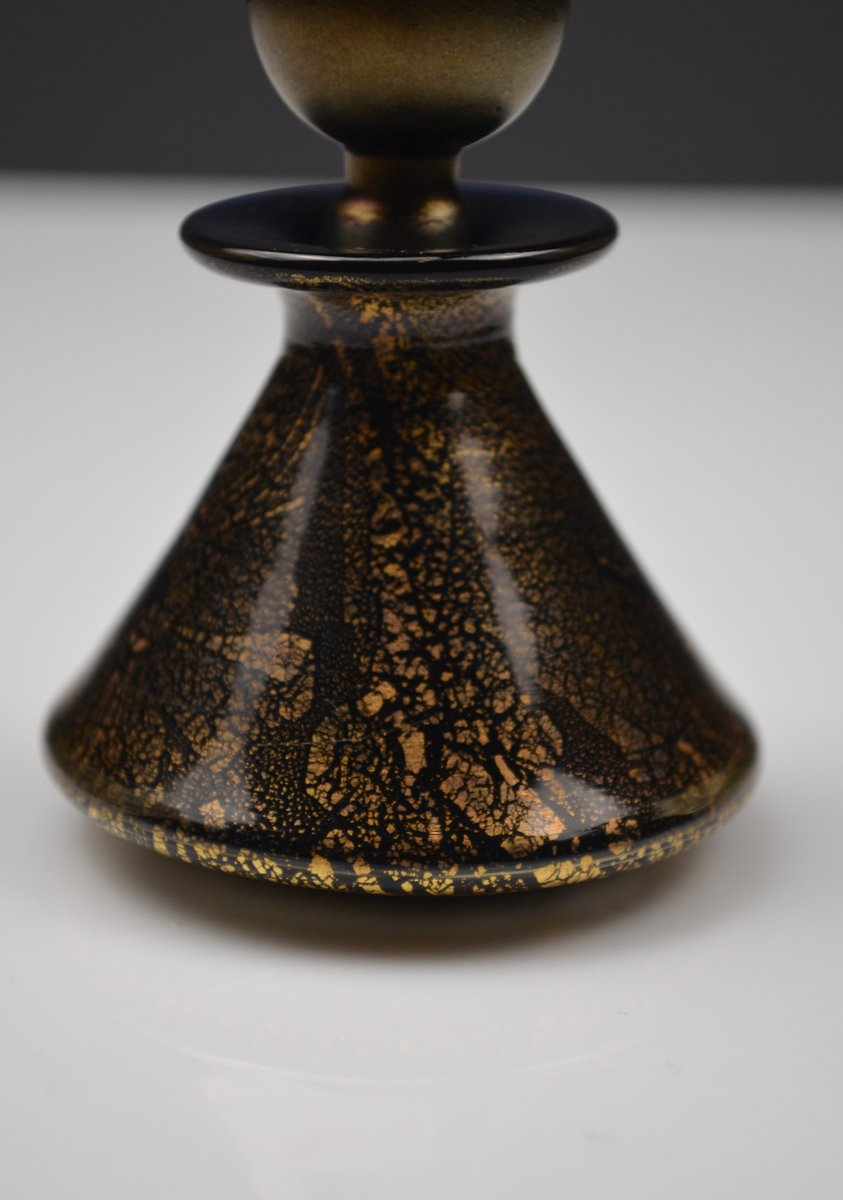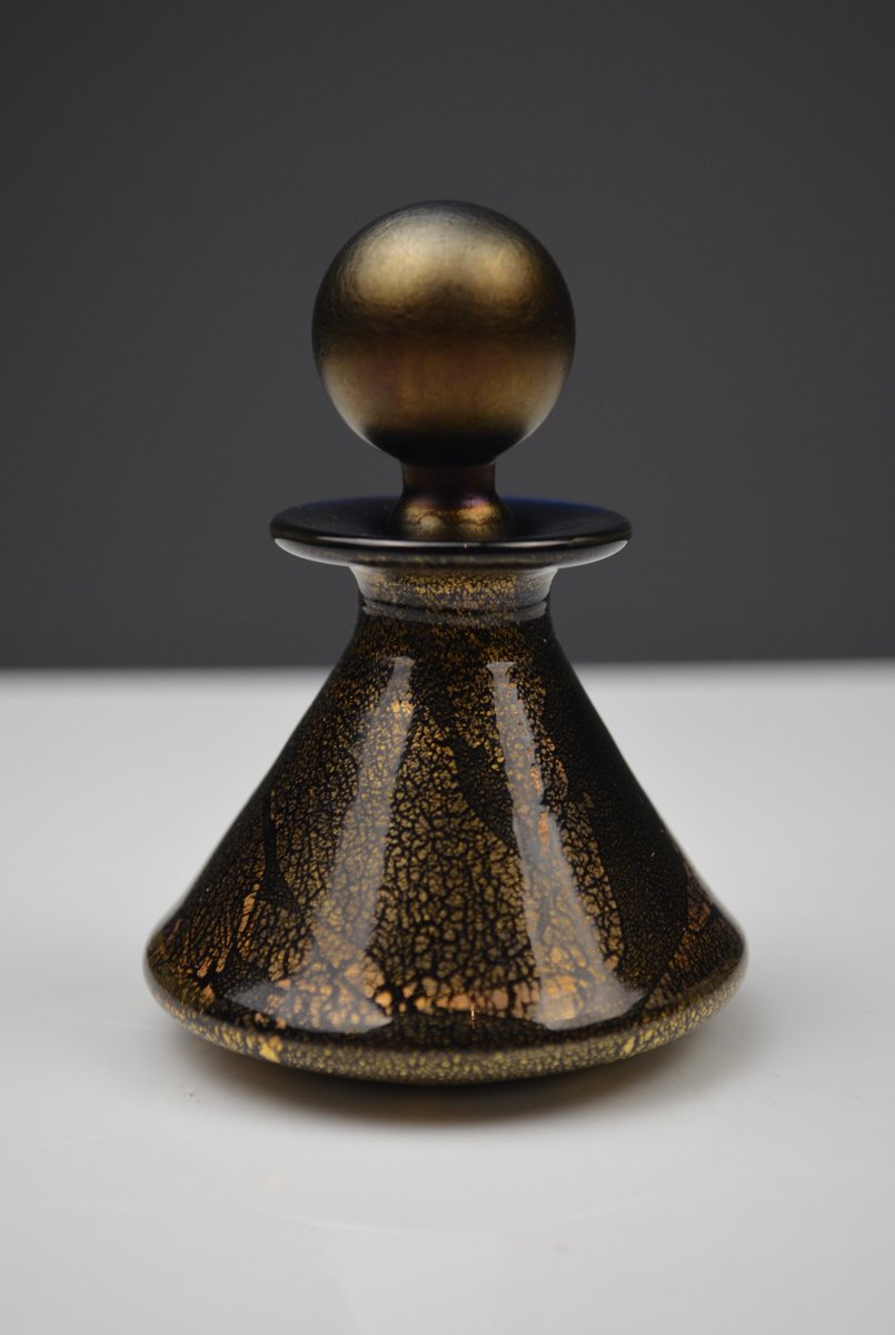 Black and Golden Blown Glass Perfume Bottle from Isle of Wight Studio, England, 1970s
