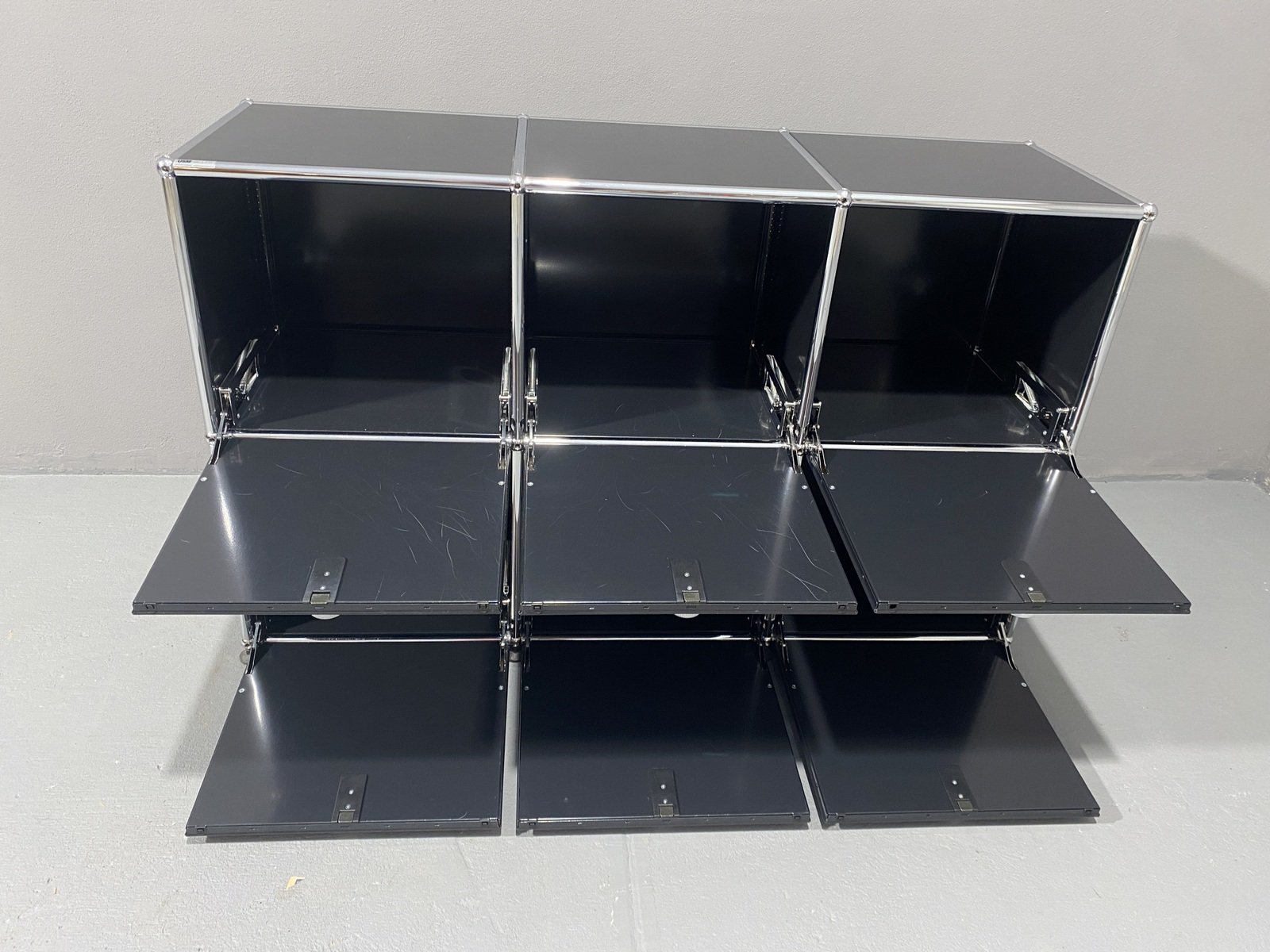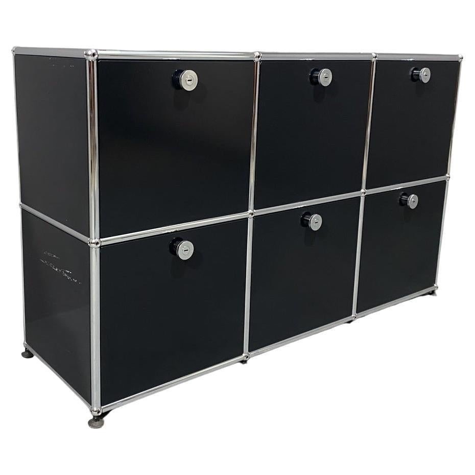 Black Metal Cabinet by Paul Schaerer and Fritz Haller for Usm, Switzerland, 1970s