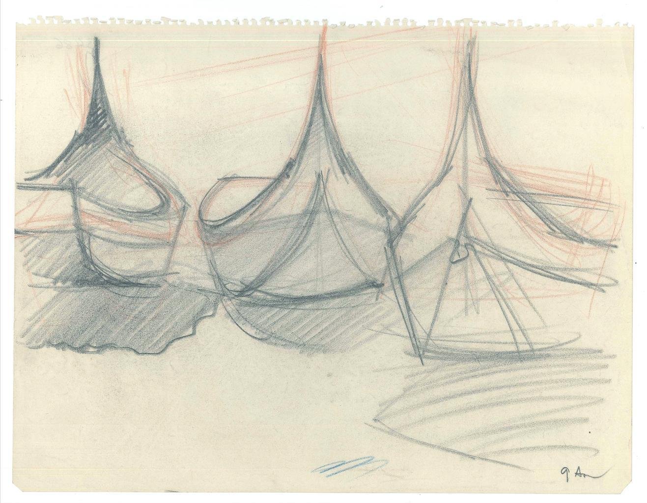 Boats - Original Pencil on Paper - 1947 1947