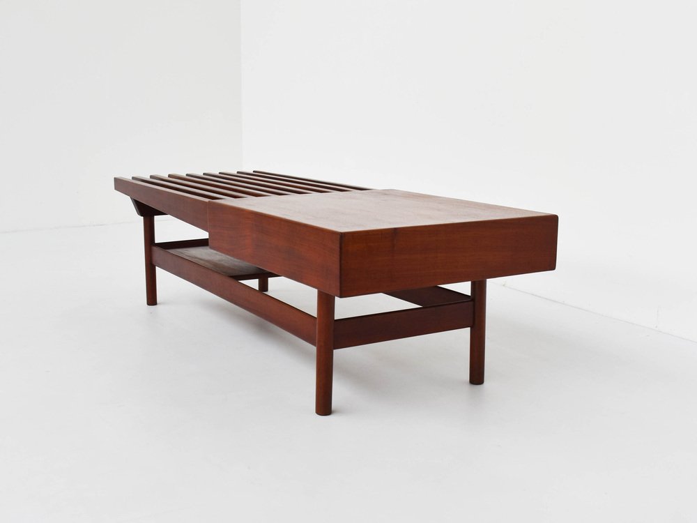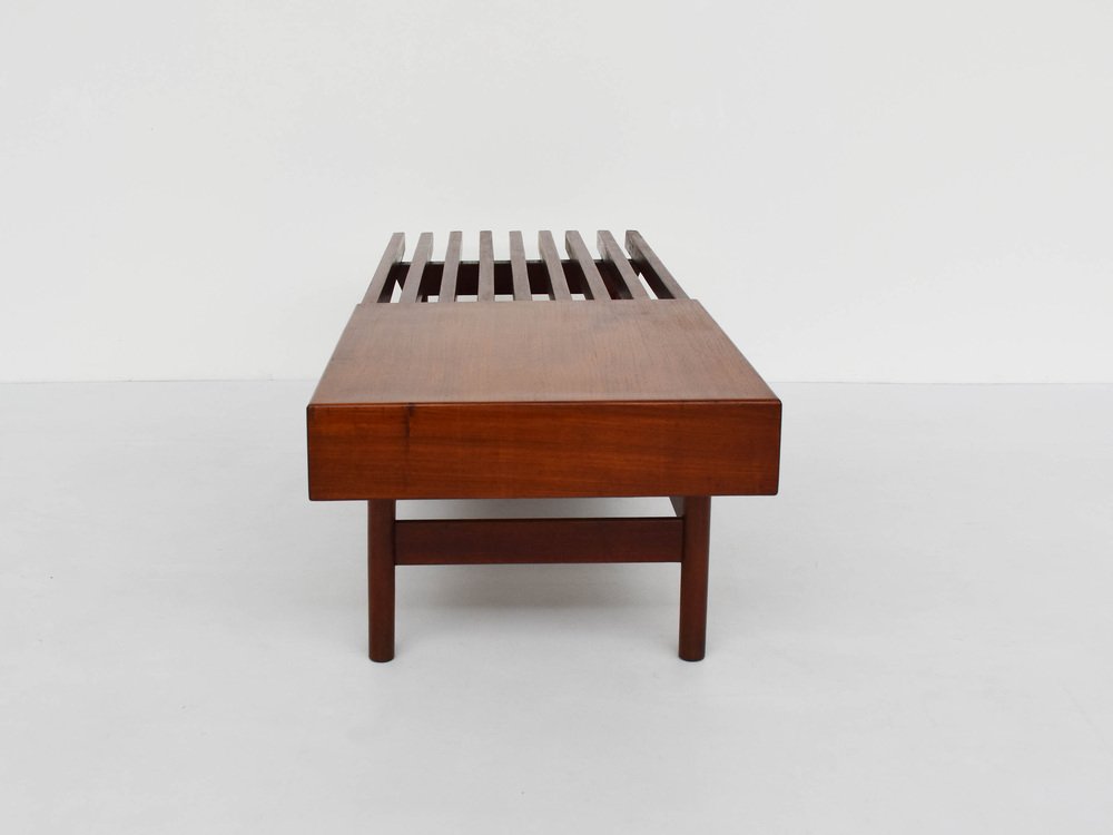 Sometime in the early-1940s, Tenreiro established Langenbach & Tenreiro Ltd. and abandoned traditionalist aesthetics in favor of a European modernist style. He aimed to introduce lighter construction methods and forms into the local Brazilian furniture culture. Using robust woods indigenous to Brazil—like jacaranda, peroba, and imbuia, as well as cane and wicker, Tenreiro created a striking range of