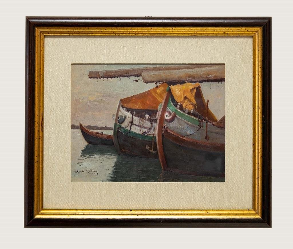 Bruno Croatto, Ships, Original Oil on Canvas, 1938, Framed