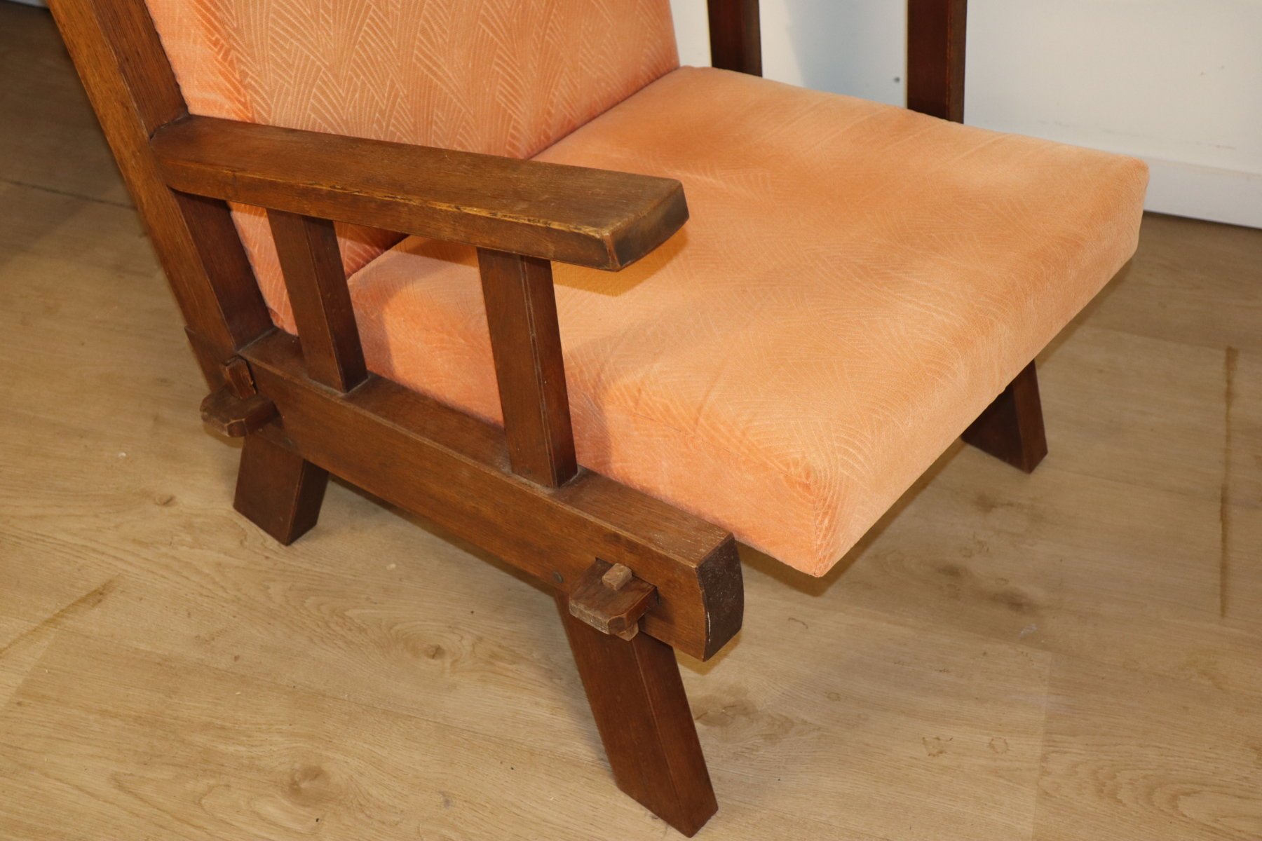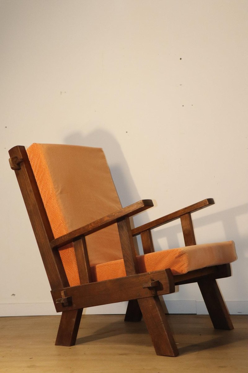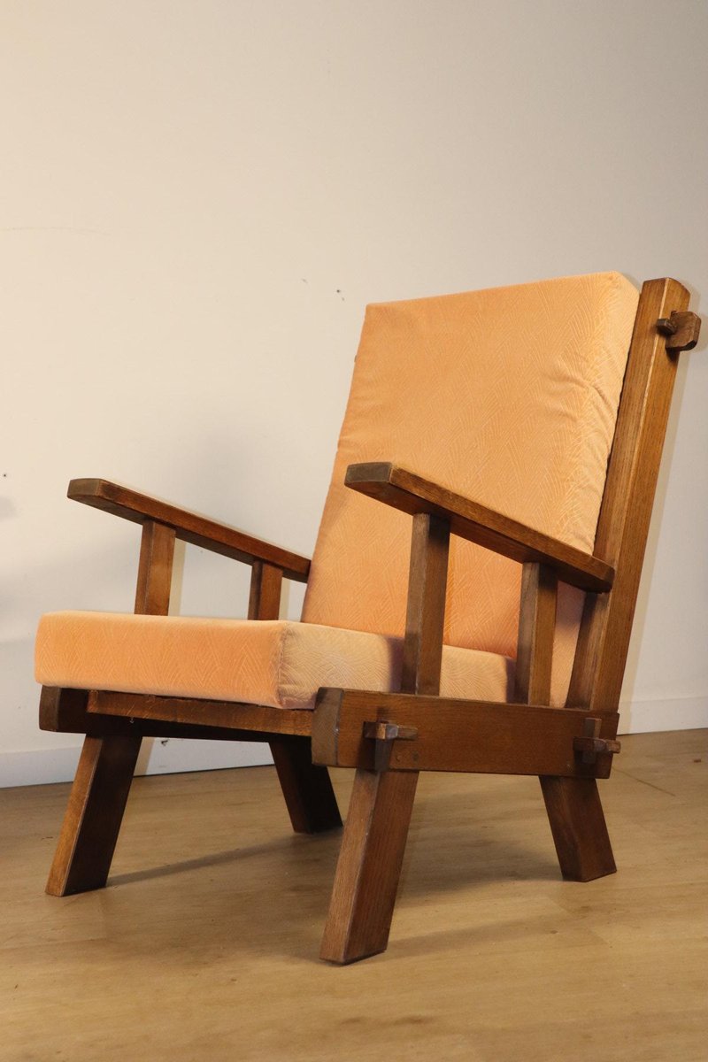Brutalist Armchairs in Oak and Velvet, 1960s-1970s, Set of 2