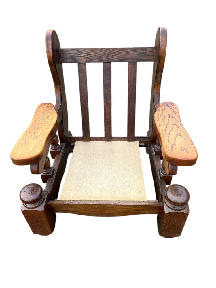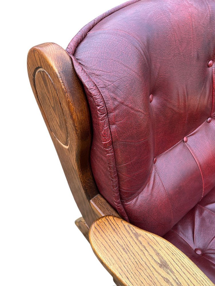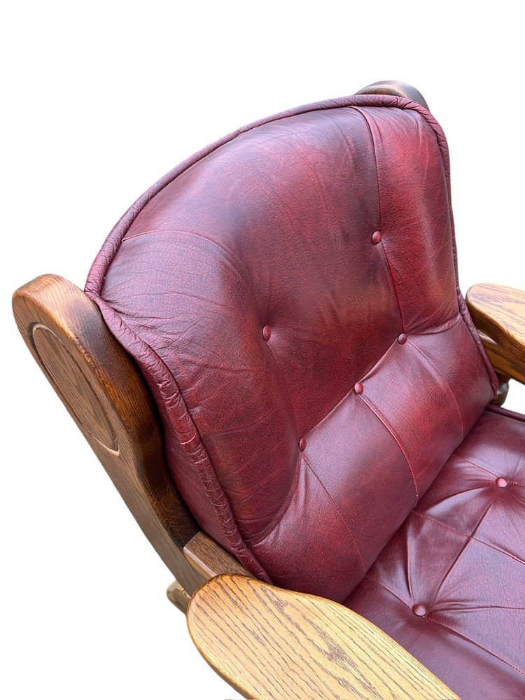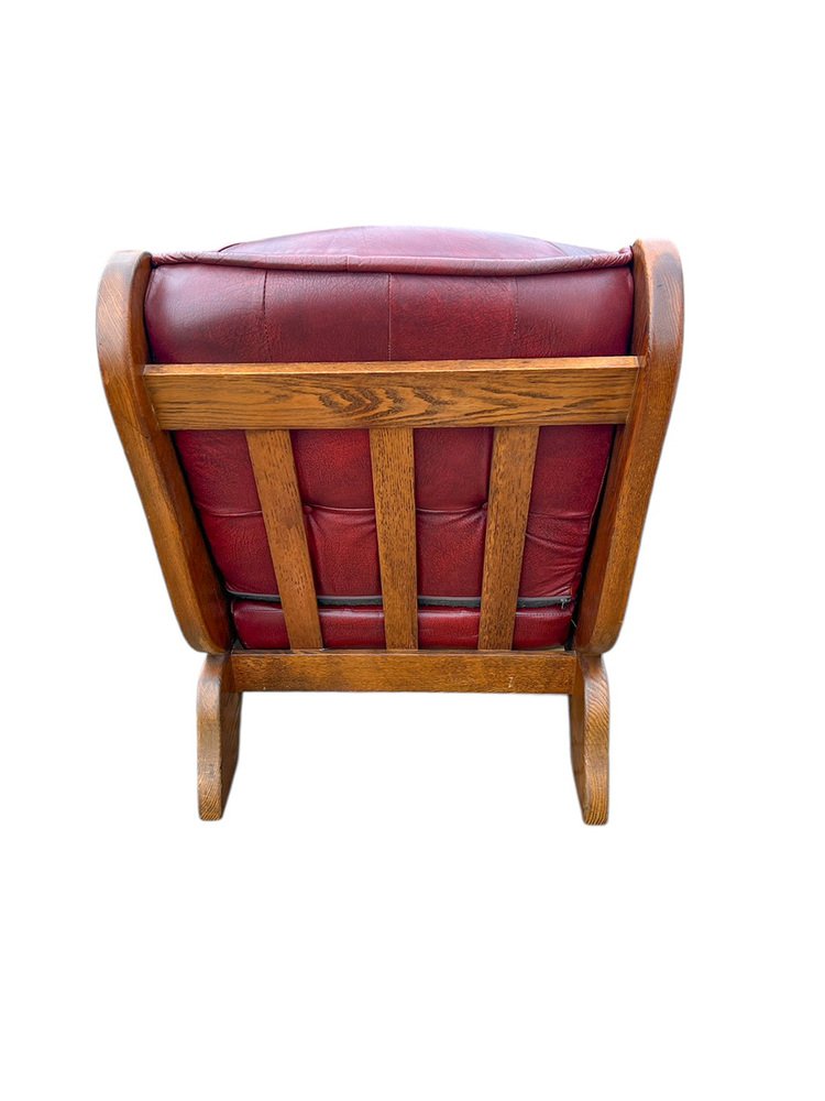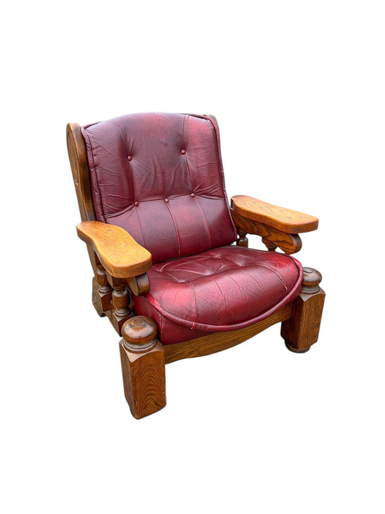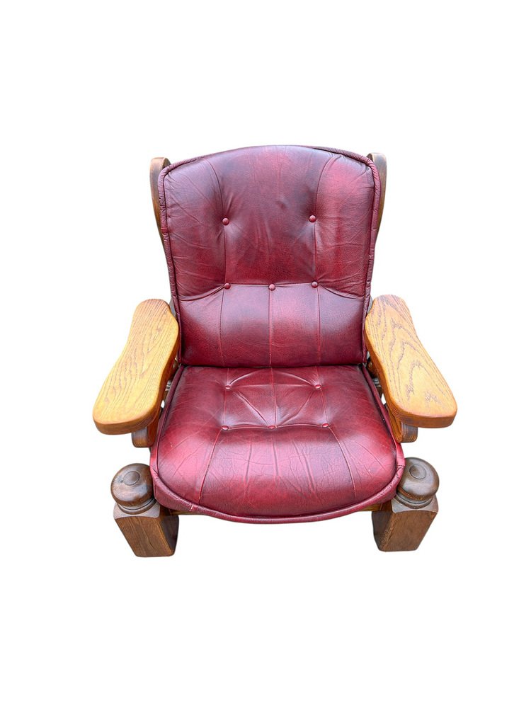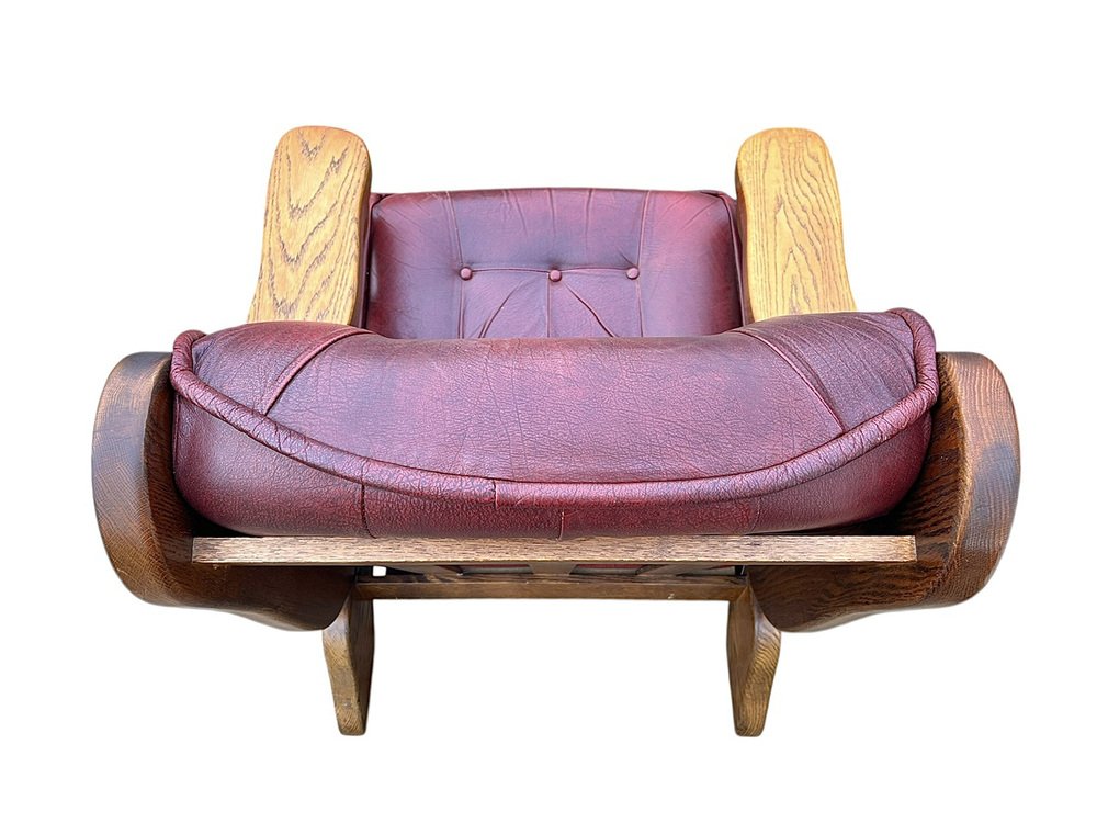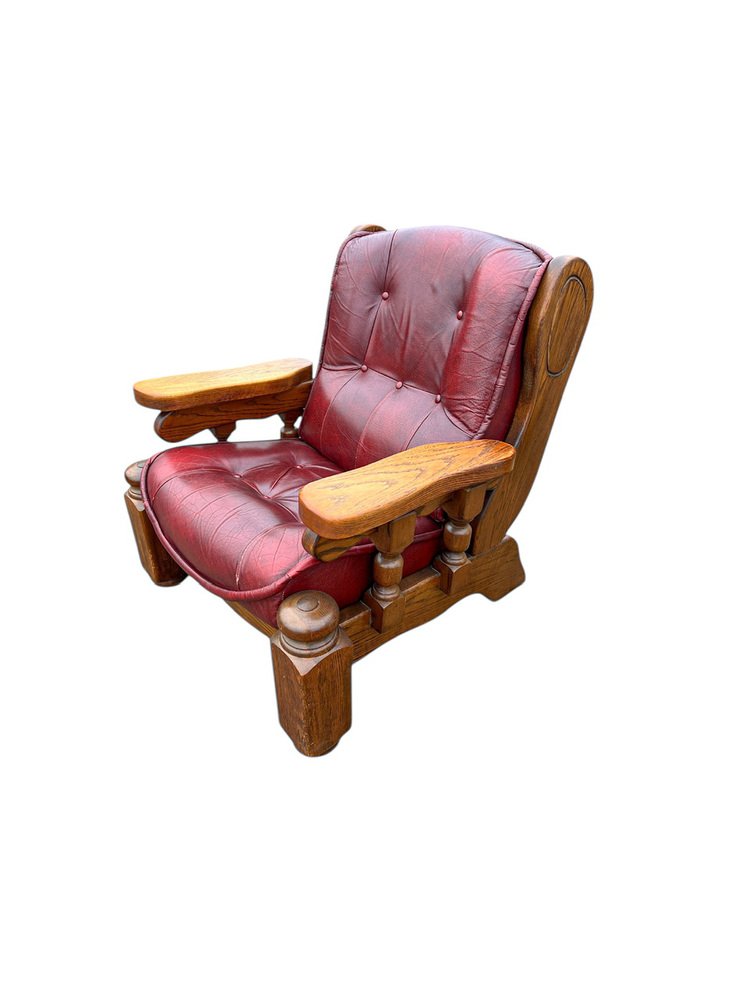 Brutalist Dutch Oak and Red Leather Lounge Chair, 1970s
