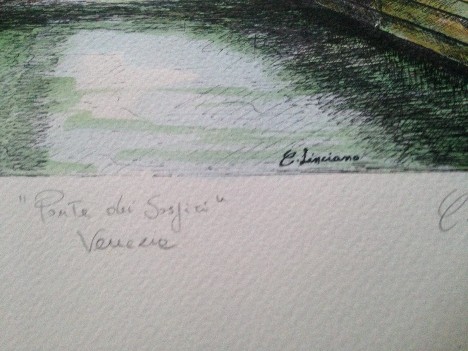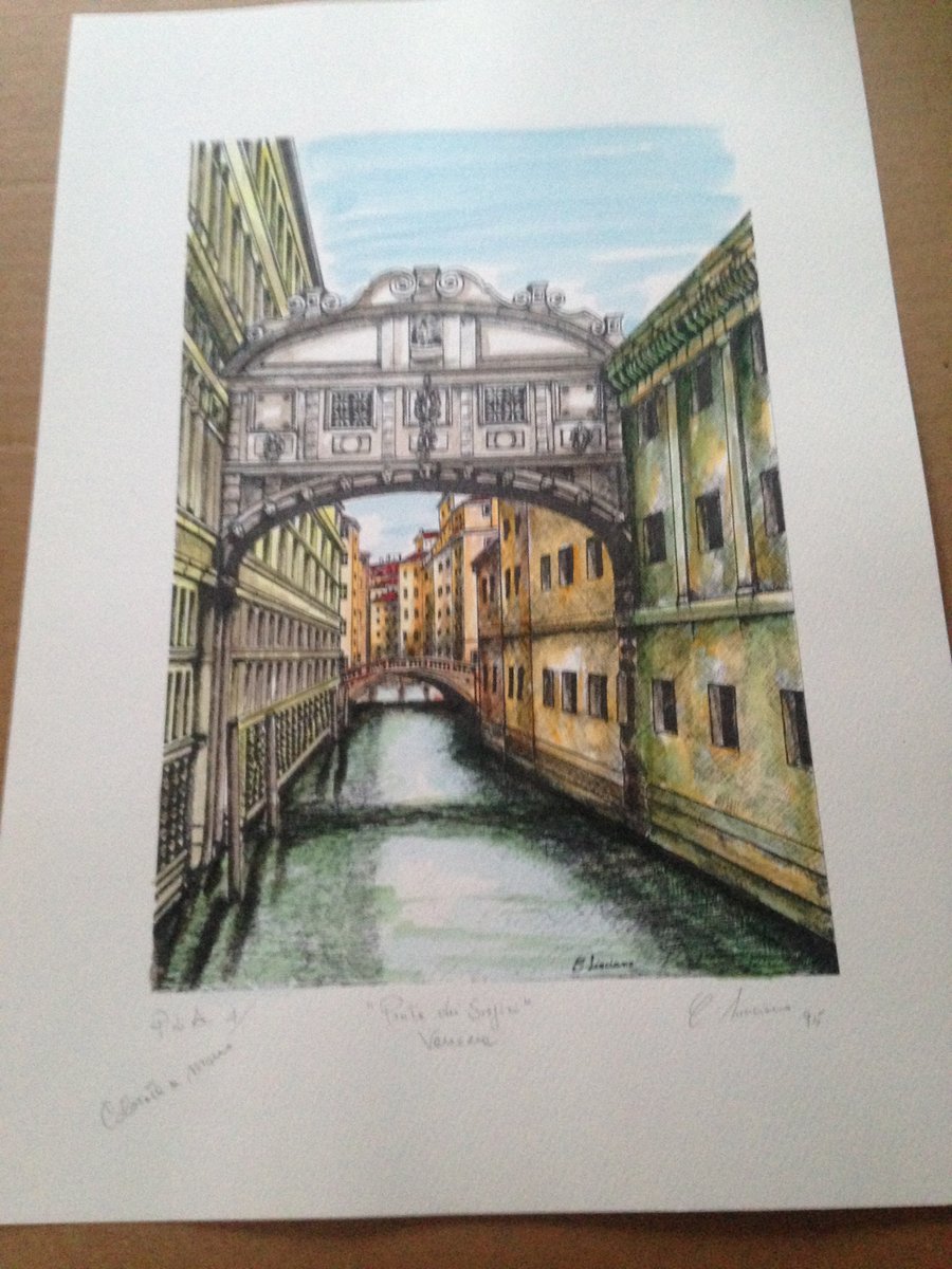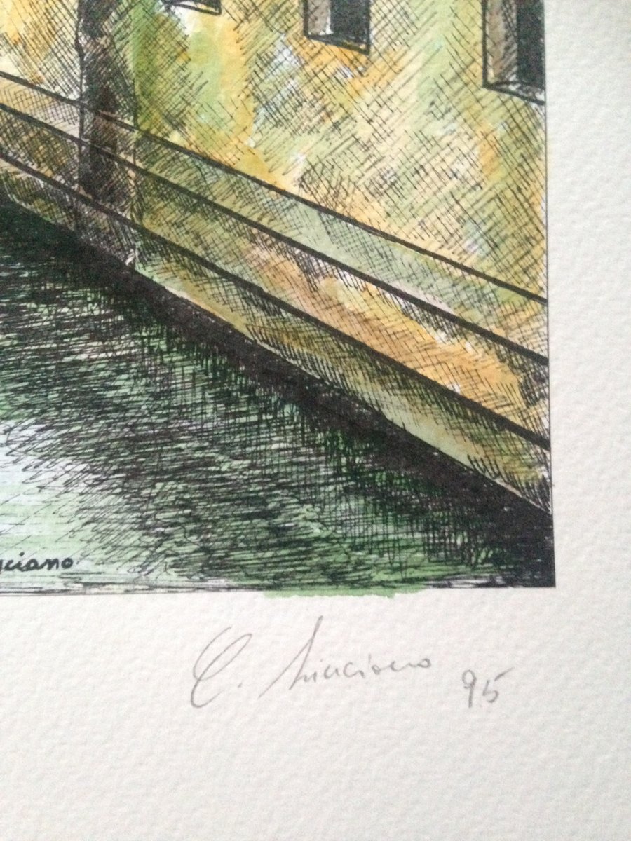 Carmelo Linciano, Bridge of Sighs, Venice, Watercolor on Lithograph, 1995