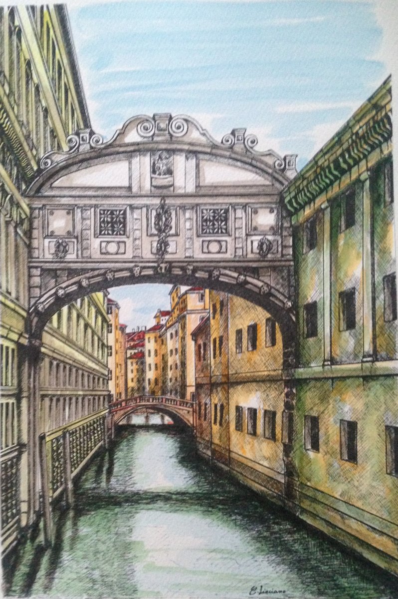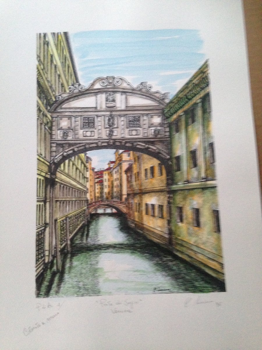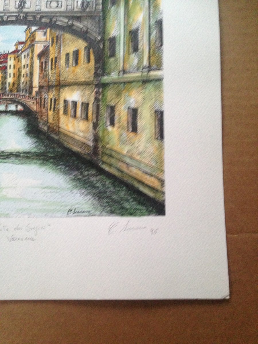 Carmelo Linciano, Bridge of Sighs, Venice, Watercolor on Lithograph, 1995