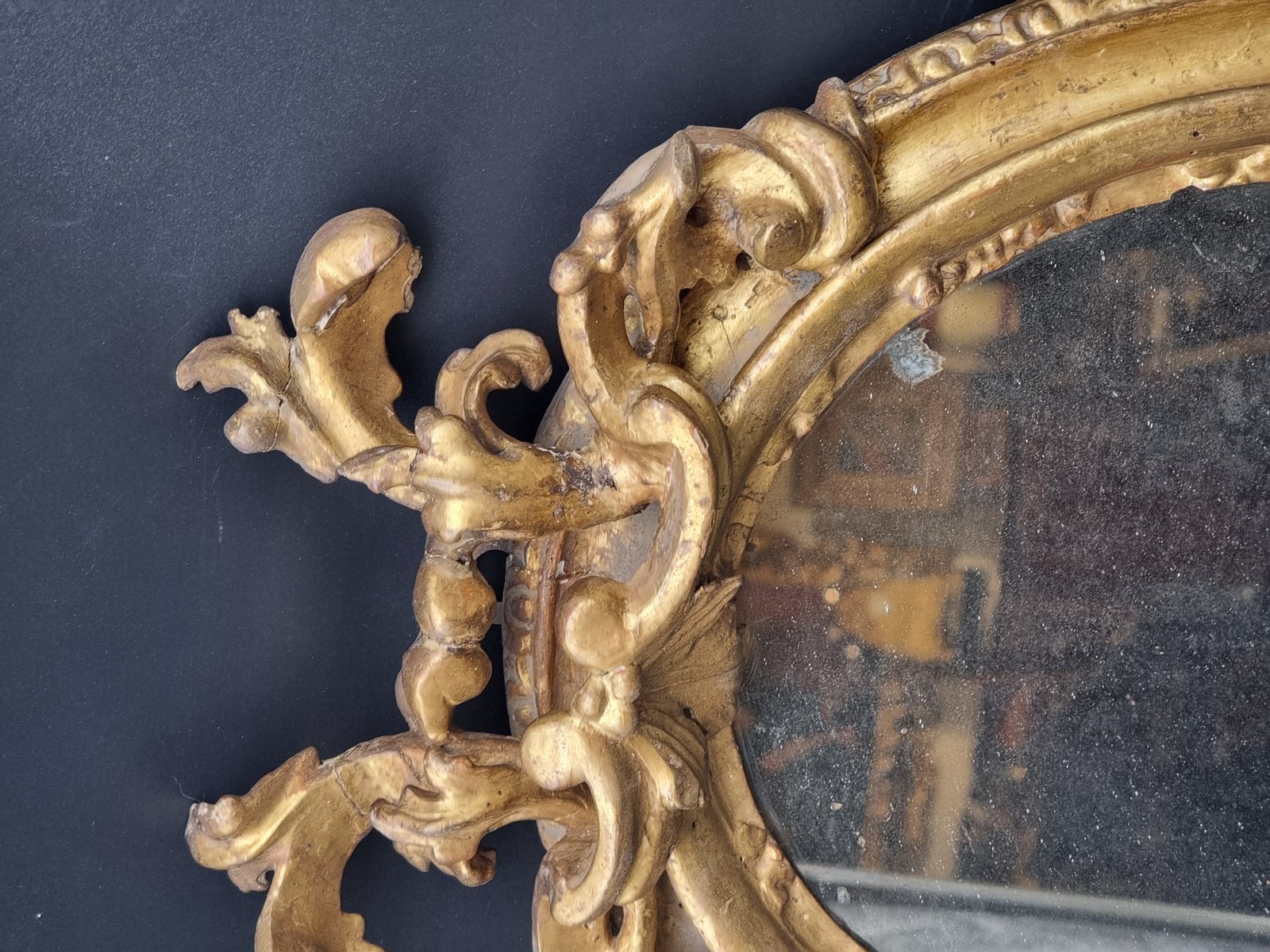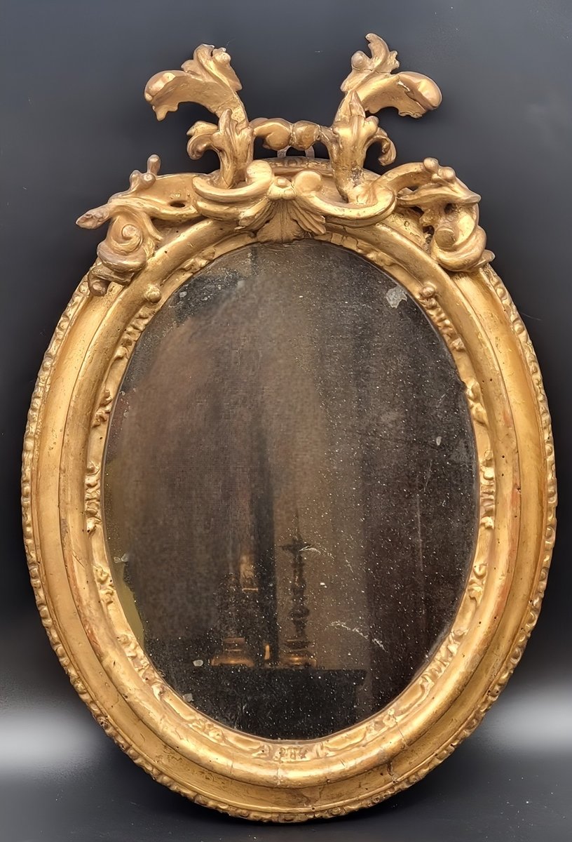 Carved and Gilded Oval Framed Mirror, 1700