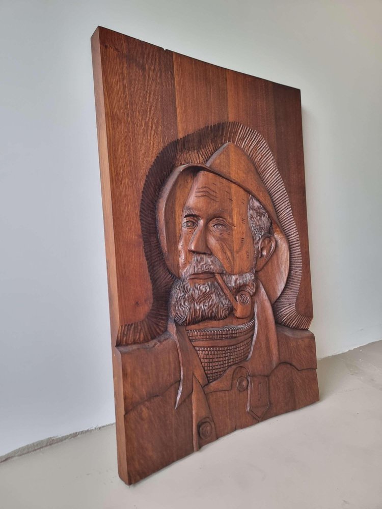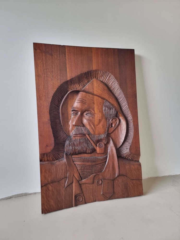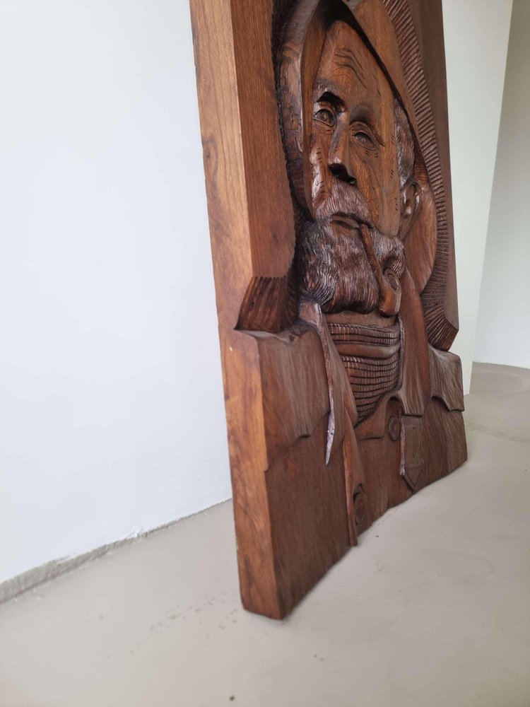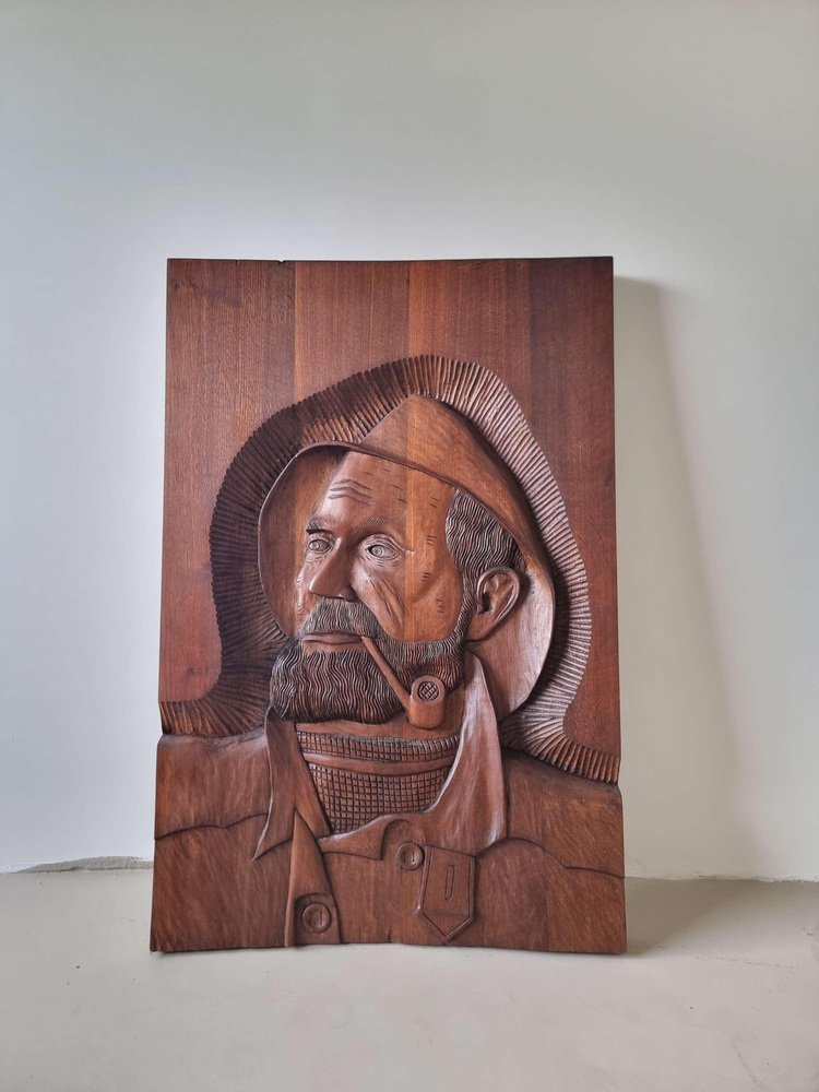 Carved Oak Wall Hanging Piece of Man with Pipe