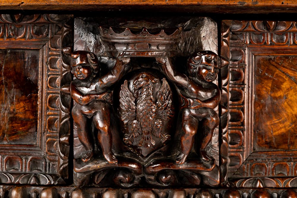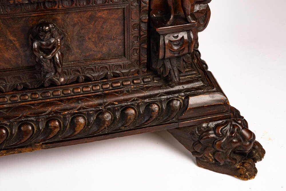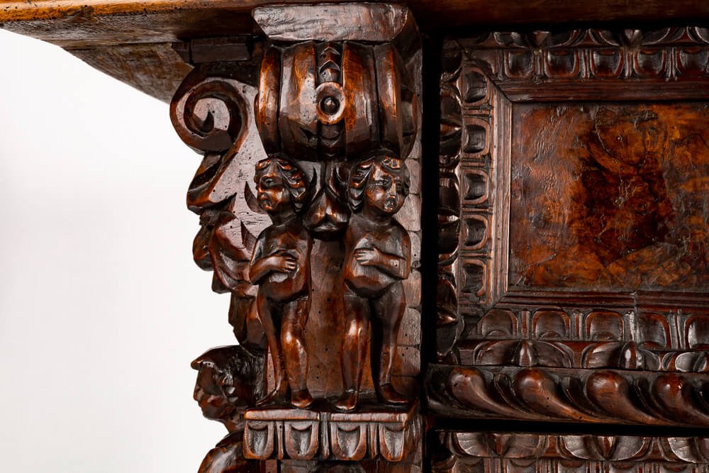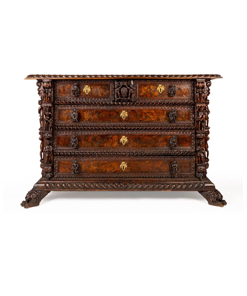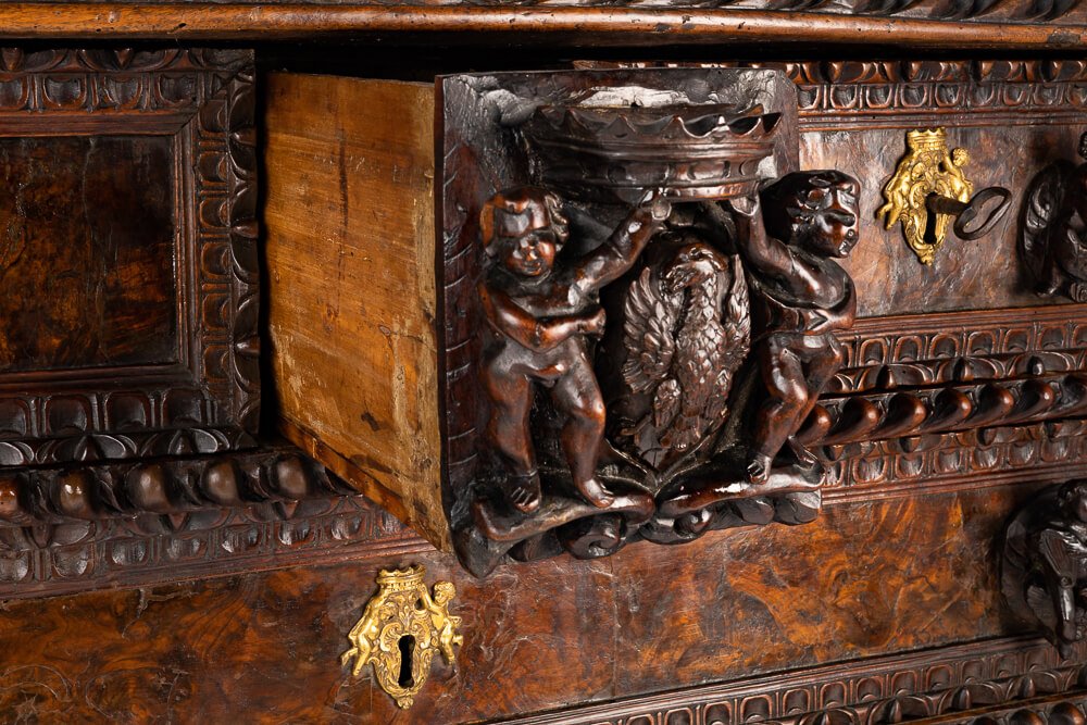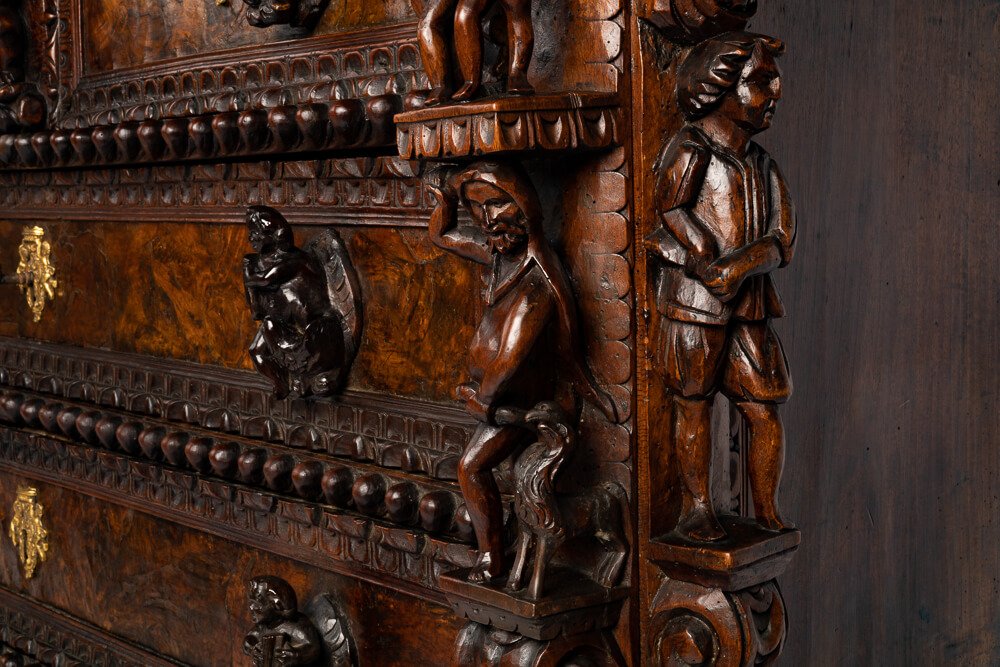 Today, the bambocci chest of drawers stands as a symbol of the excellence and strength of late 16th-century Genoese furniture, celebrated for its bold sculptural decoration with fully carved and half-length figures in the round. It is widely regarded as one of the highest achievements of early Italian furniture and a true icon of high-epoch craftsmanship.