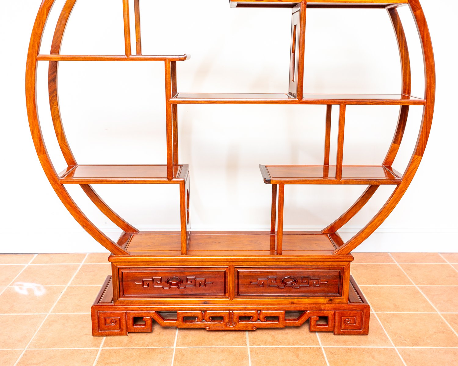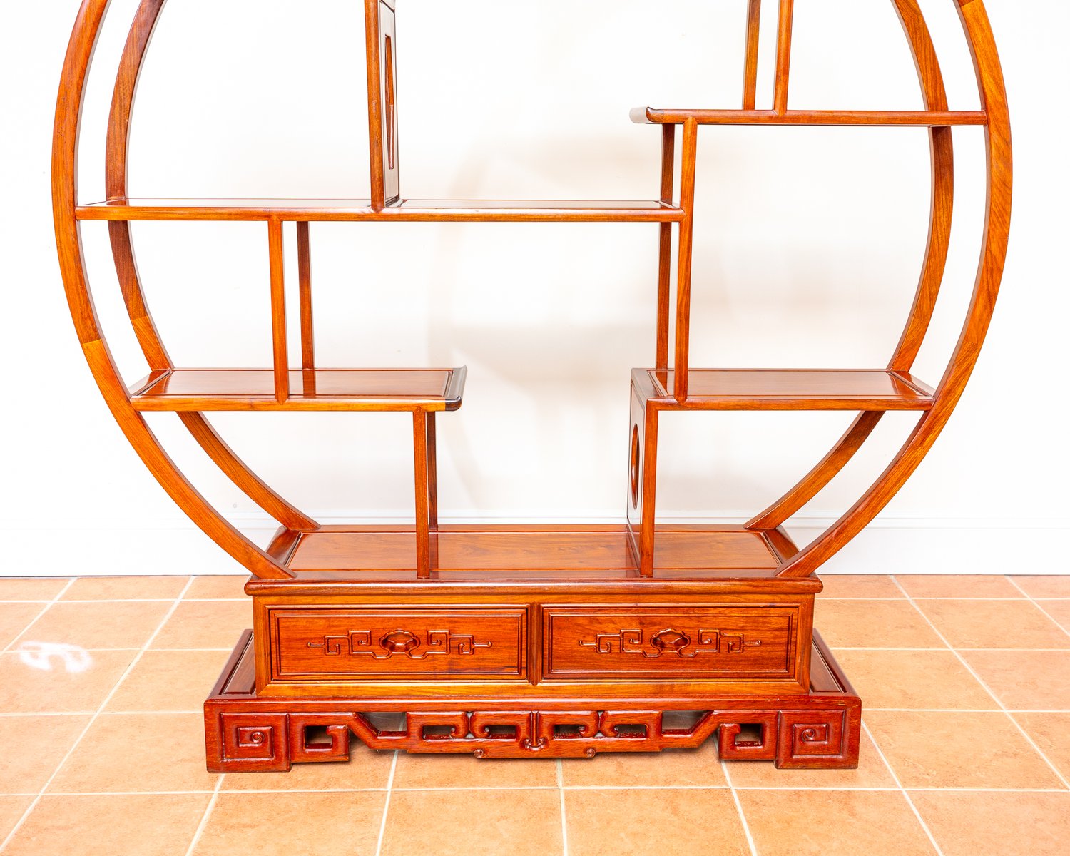 An exceptional, gorgeous and rare Chinese circular display stand in wonderful condition. Likely made in the second half of the 20th Century or possibly earlier, this show-stopping piece will add quintessential ornate-yet-minimalist Oriental design, stunning quality, gorgeous colouring and an exquisitely elegant aesthetic of Eastern splendour to any setting.