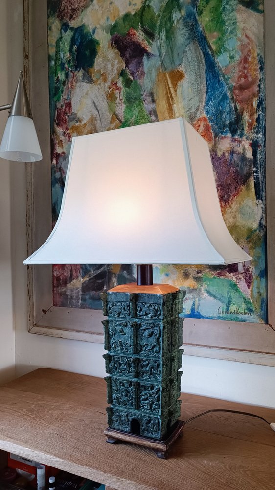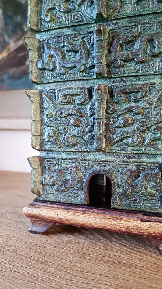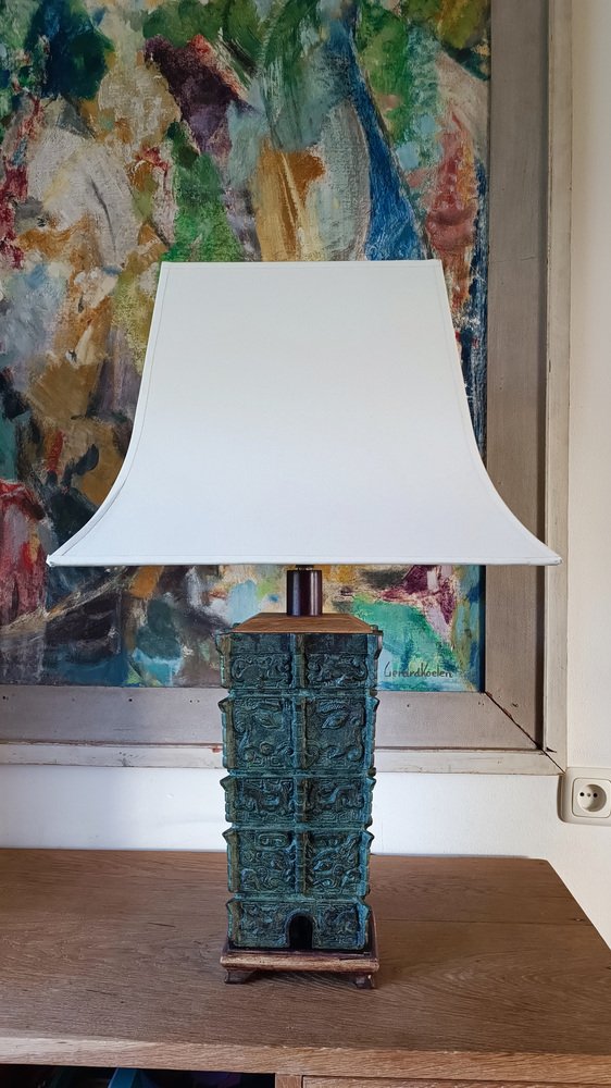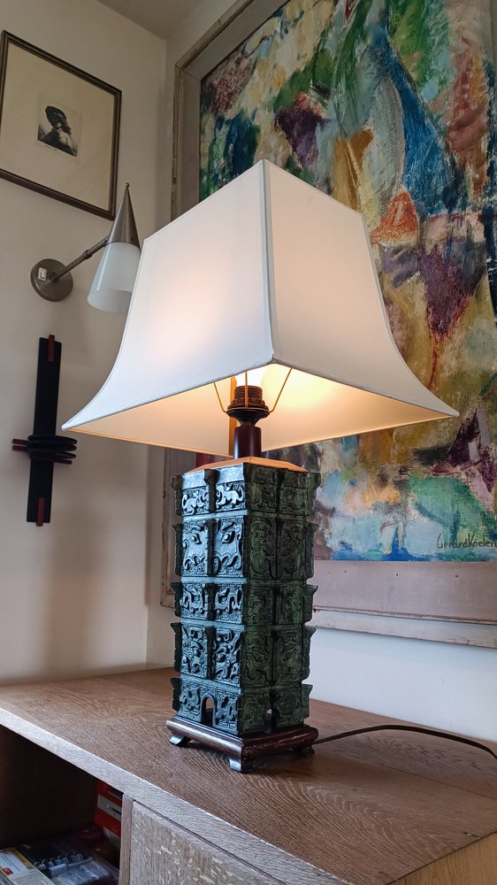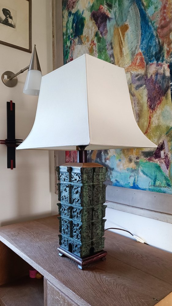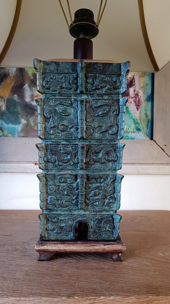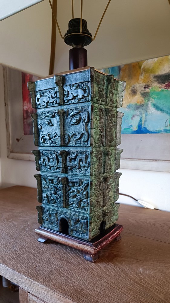Chinese Taotie Bronze Urn Table Lamp, 1920s