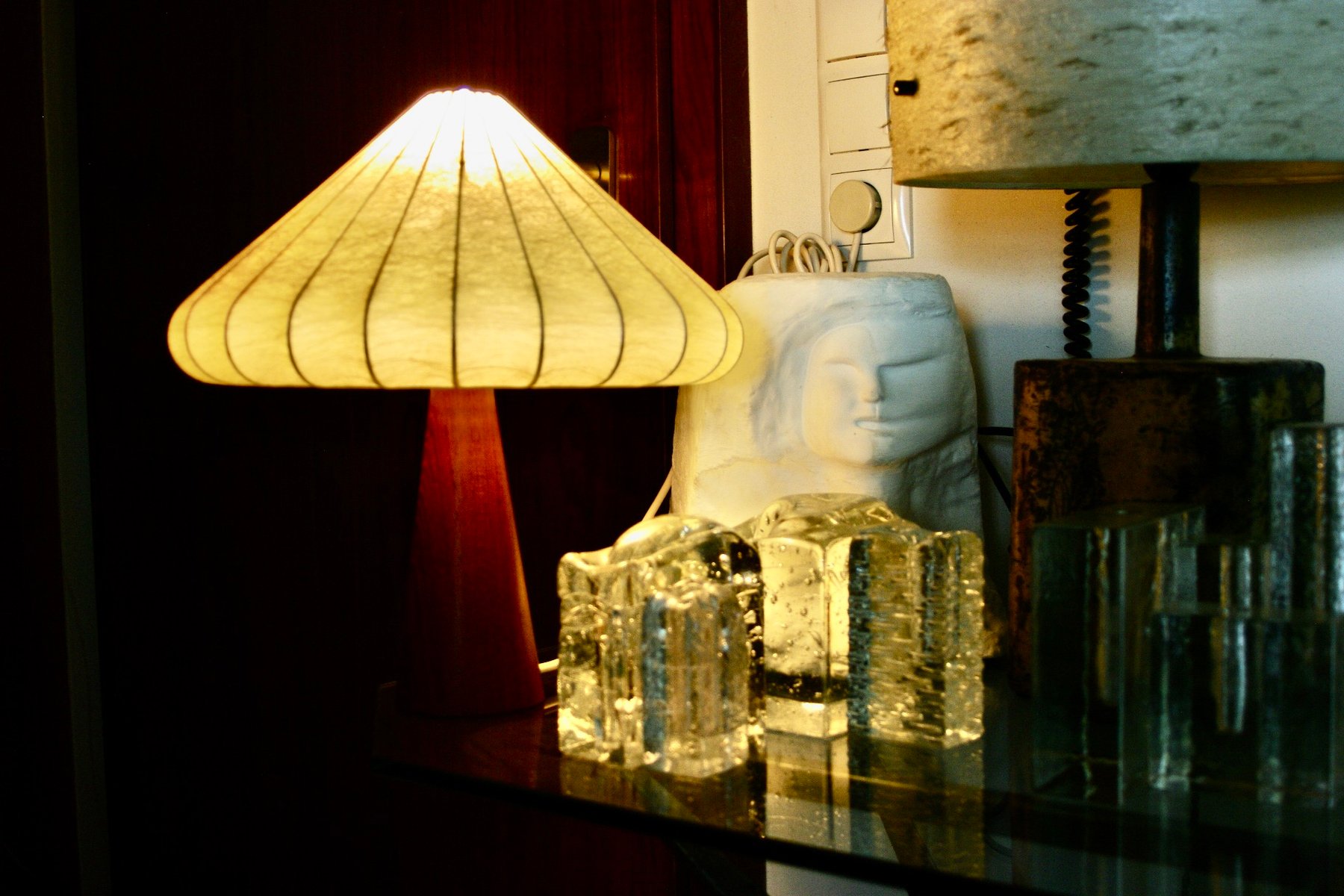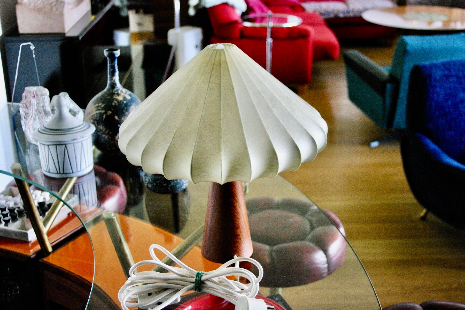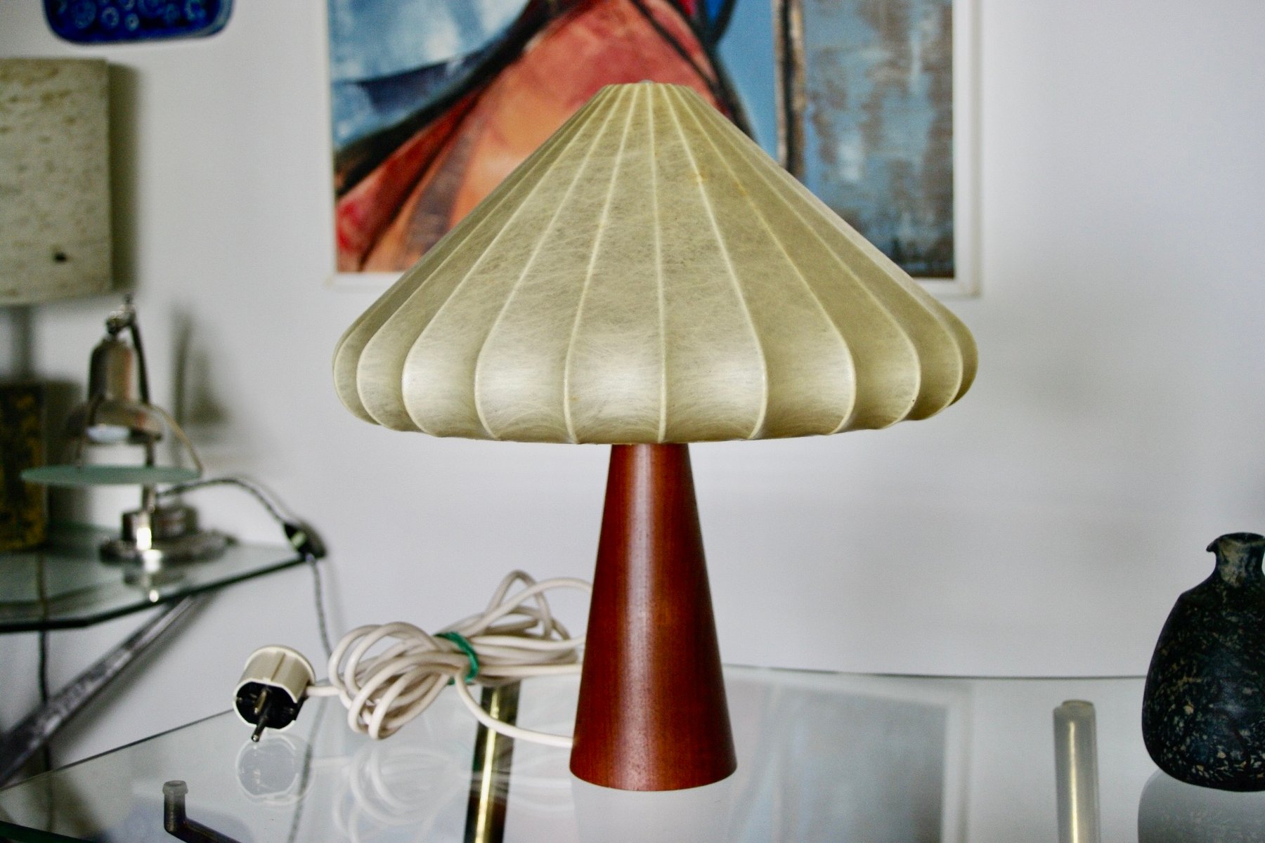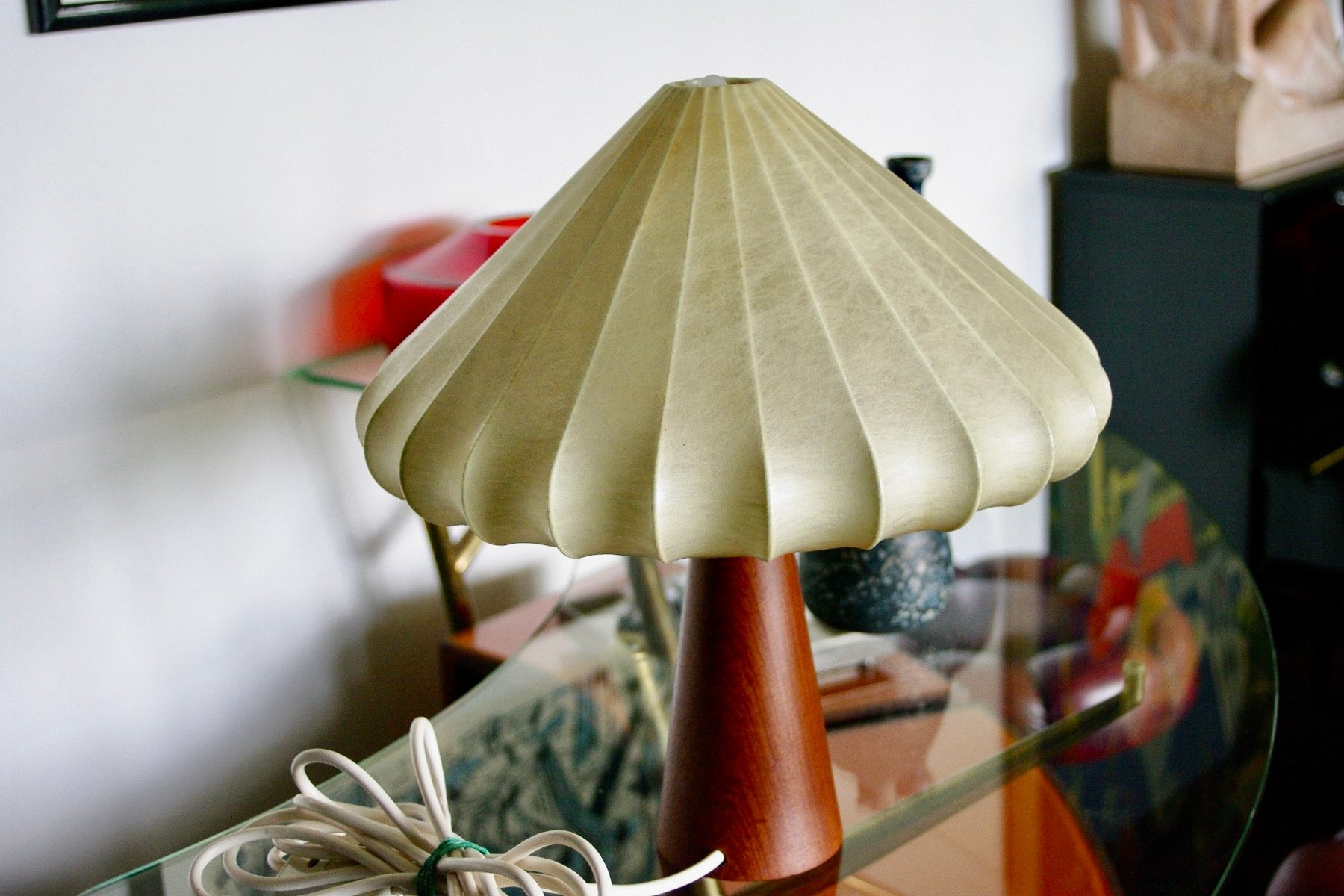 Cocoon Lamp with Teak Base from Goldkant Leuchten, 1960s