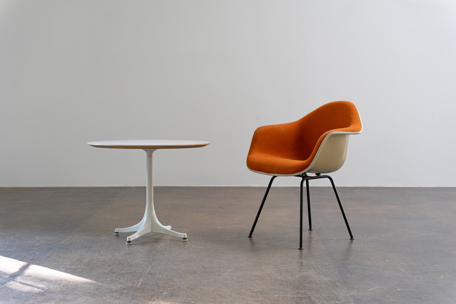 In 1935, Nelson became associate editor of Architecture Forum and Fortune magazines, for whom he continued to work through the 1940s. His writing drew the attention of D.J. DePree, president of Michigan-based furniture manufacturer Herman Miller, and Nelson subsequently designed his first collection for the brand in 1945; in 1947, he became the company’s design director. There he designed hundreds of furniture pieces and recruited rising design talents including Isamu Noguchi and Charles and Ray Eames, among others.