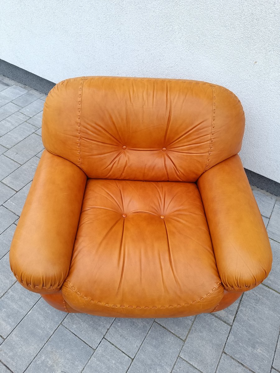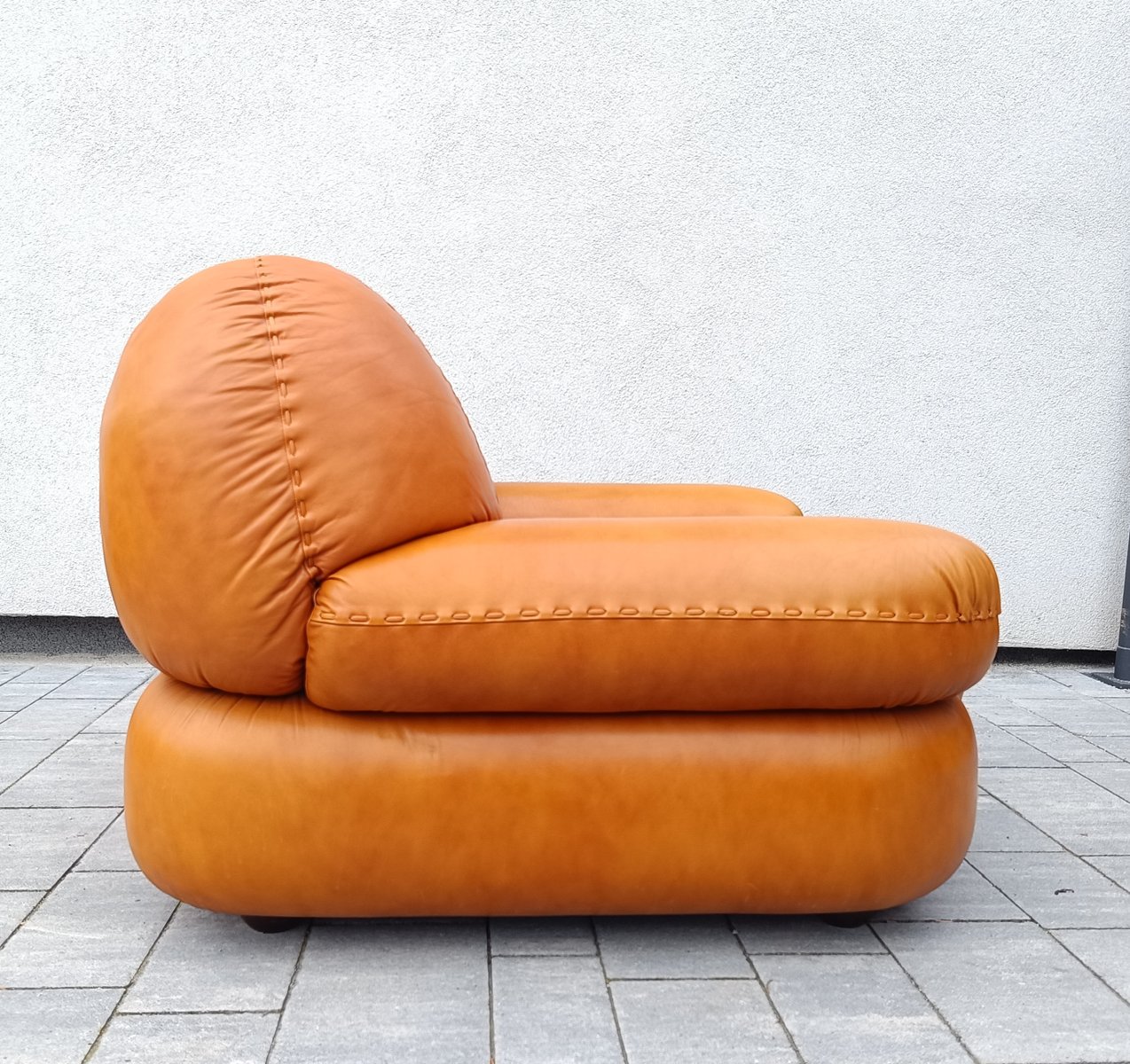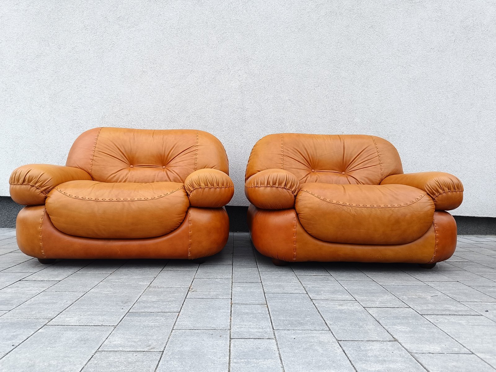 Cognac Leather Armchairs attributed to Sapporo for Mobil Girgi, Italy, 1970s, Set of 2