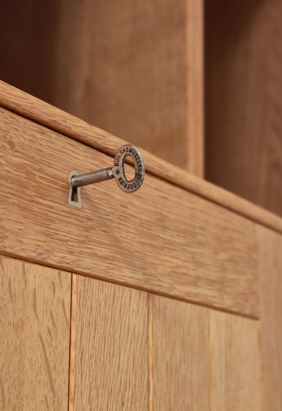 Together with his brother-in-law, J.C. Groule, they named the company Rud. Rasmussen's Factory for Oak Furniture. In the late 19th century, furniture making was being industrialized at a rapid pace, with new machinery rendering the process of wood cutting quicker and more accurate than ever before. Rasmussen hoped the use of the word “factory” rather than “workshop” in their company name would help create the image of a modern Danish manufacturer, with large-scale operations and the latest machinery. This was a successful ploy, and the happy marriage of skilled cabinetmaking and modern techniques meant that in a short time, the company’s reputation for oak furniture grew.