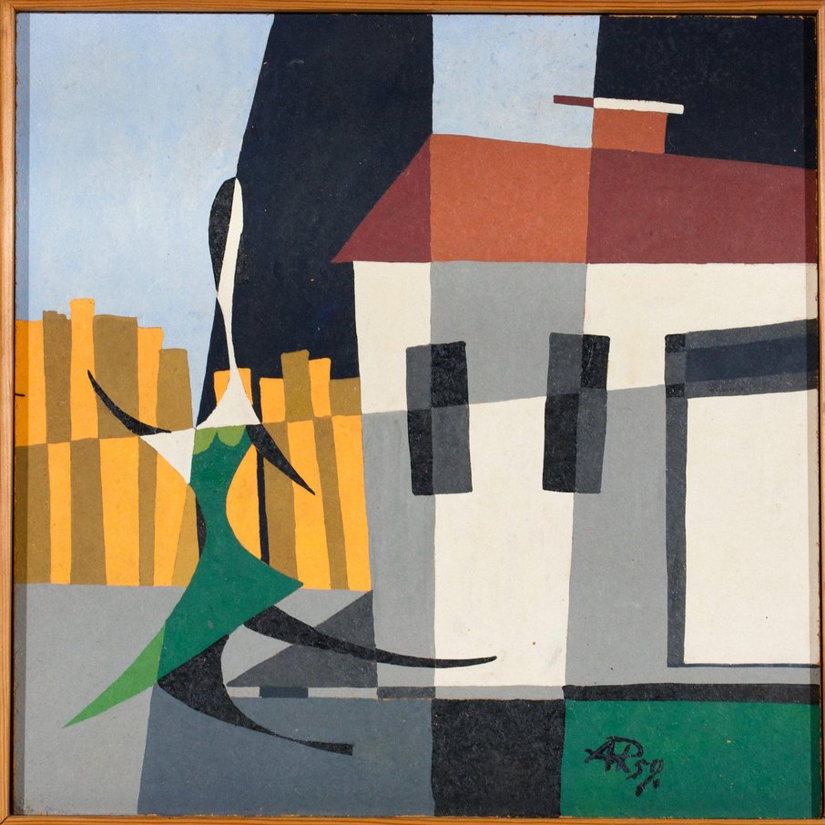 Cubist Artist, Composition with House, 1959, Painting, Framed
