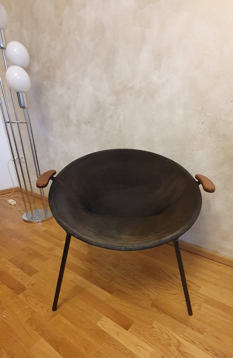 Olsen’s first successful design was the Roundette Dining Set (1952) for Frem Røjle Møbelfabrik. The compact, teak and leather design was an achievement in form and function, as the chair backs seamlessly tuck under the tabletop. Other standout designs from Olsen include the Shell Chair (1955), Easy Chair (1955), Fried Egg Chair (1956), the modular TV-bench (1956), CS500 Series (1962), Model 532A Rocking Chair (1963), and the Bikini Chair (1968)—iconic for its futuristic silhouette. Olsen’s Frederik the 9th Chair (1964)—named after Danish King Frederik VII, who apparently preferred sitting backwards—won the A.I.D gold medal in 1965.