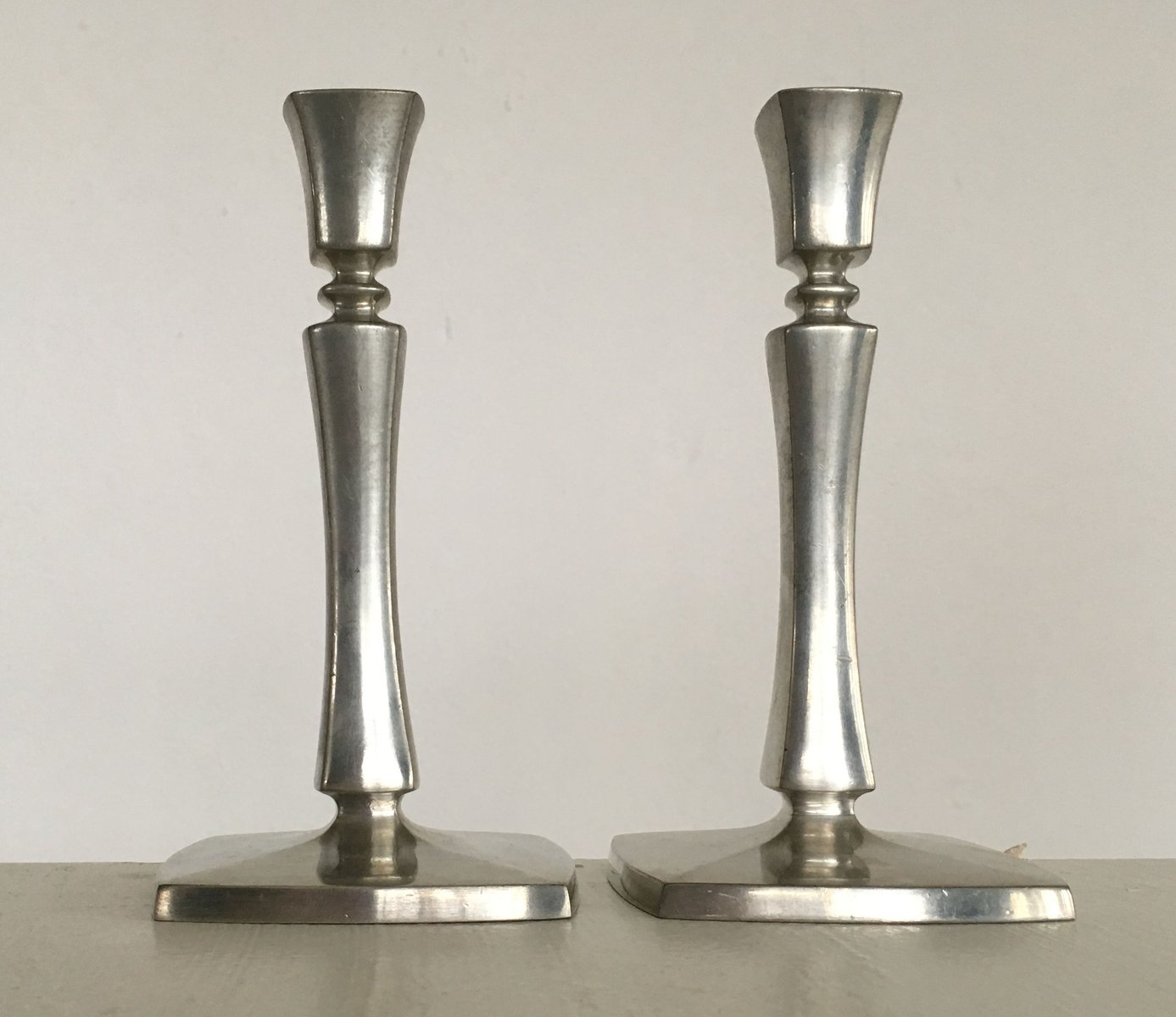 Danish Pewter Candleholders by Just Andersen, 1940s, Set of 2