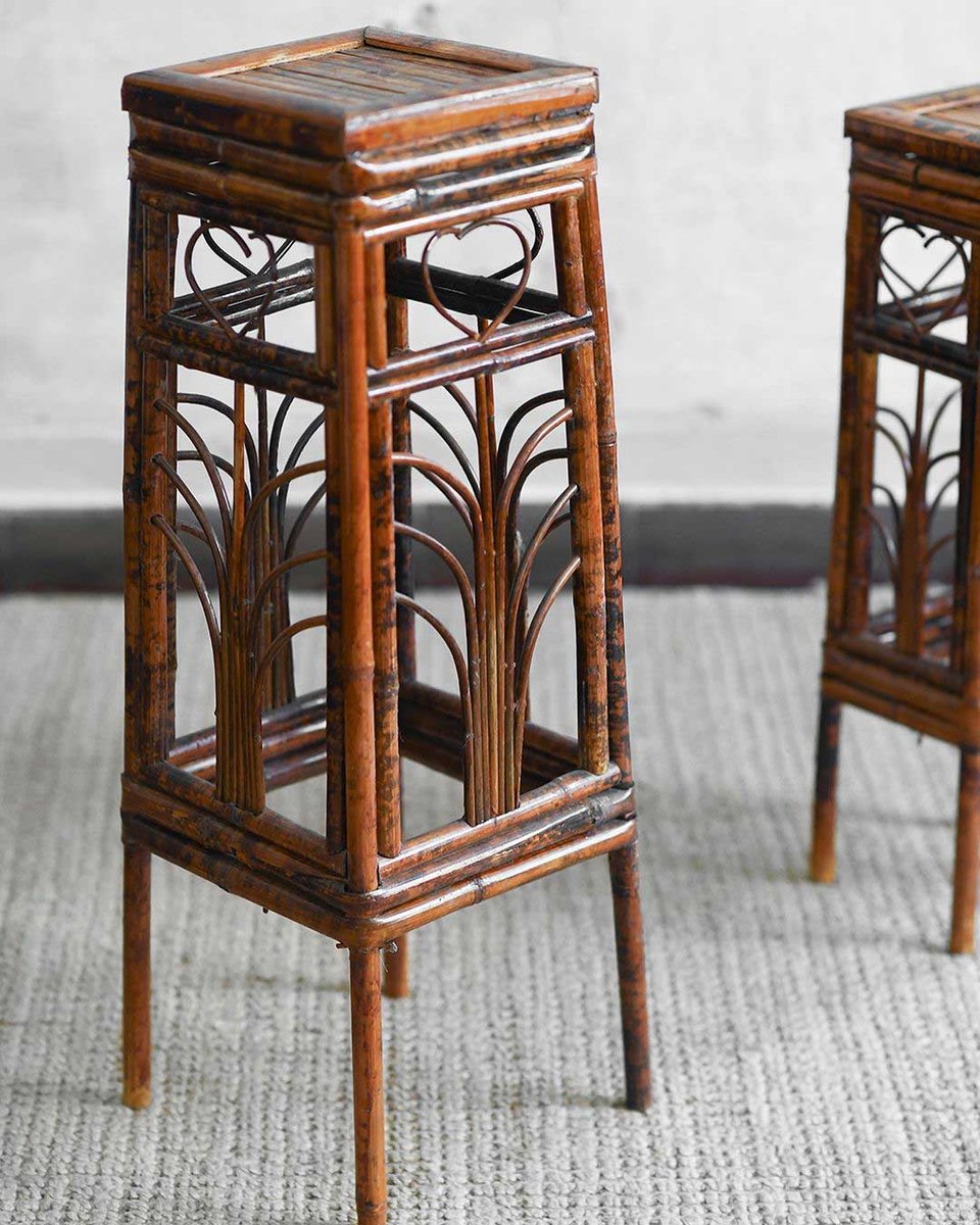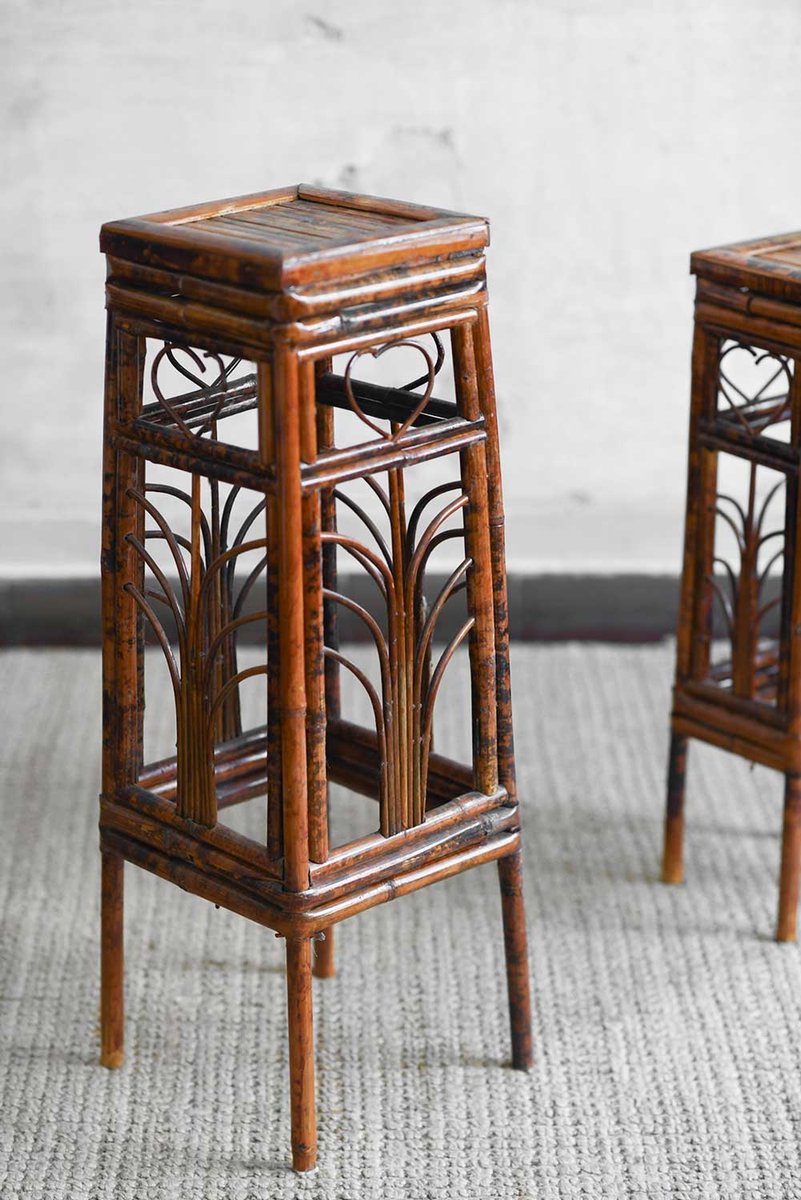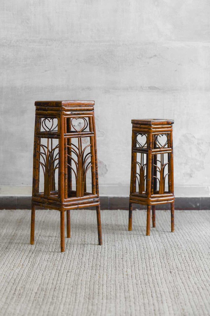 Dark Wicker Plant Stands, Set of 2