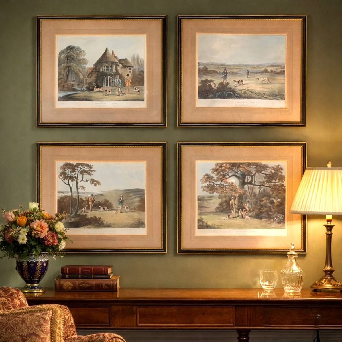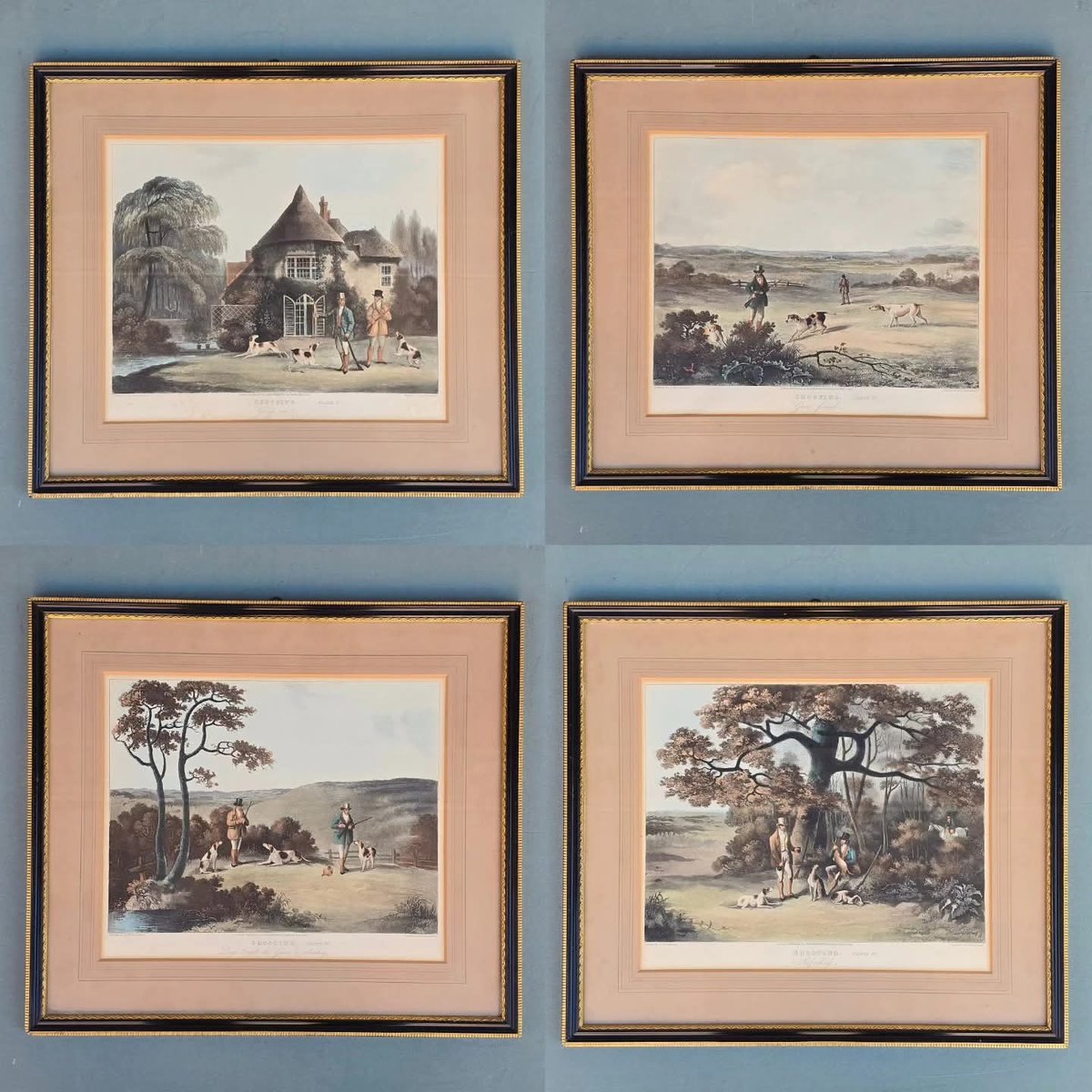 Dean Wolstenholme, Shooting English Hunting Series, 1823, Engravings on Paper, Framed, Set of 4