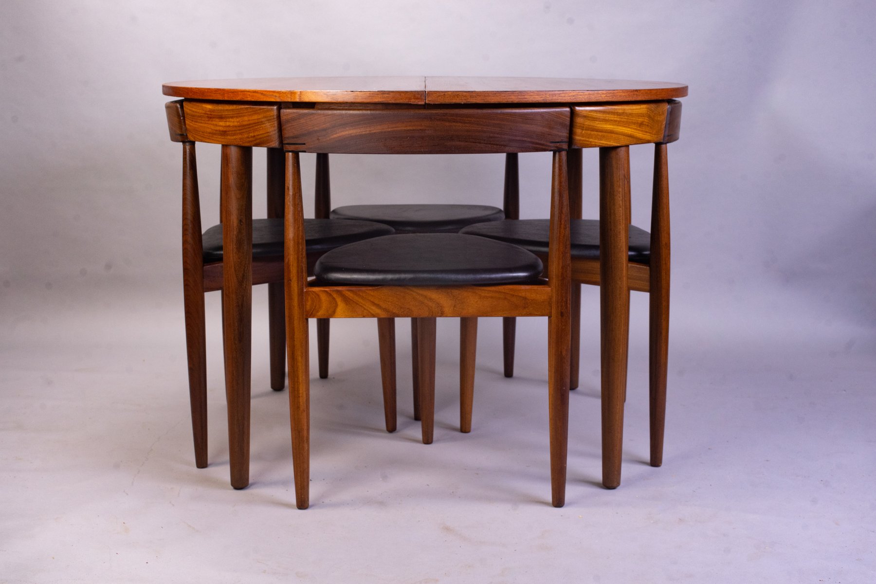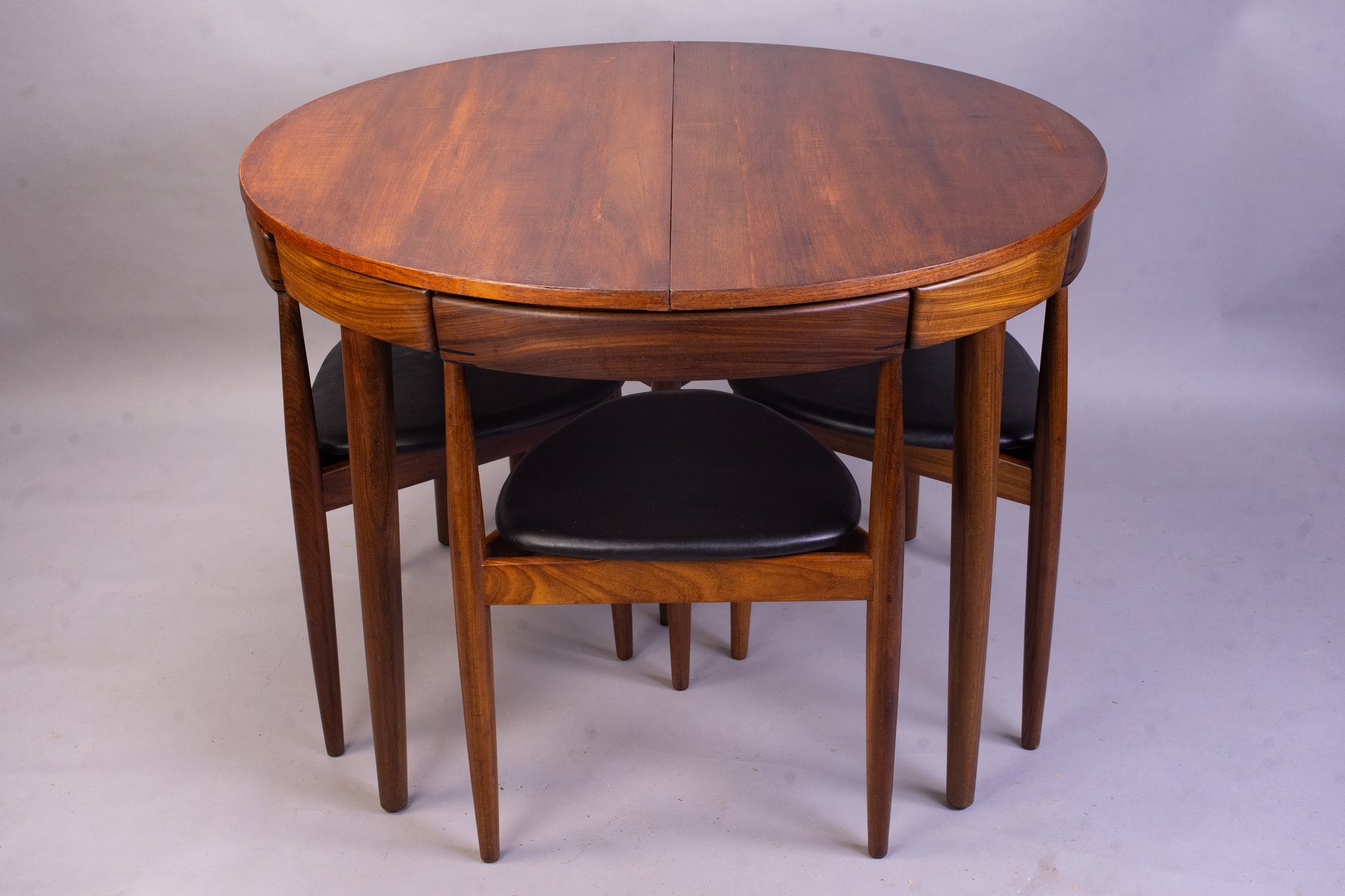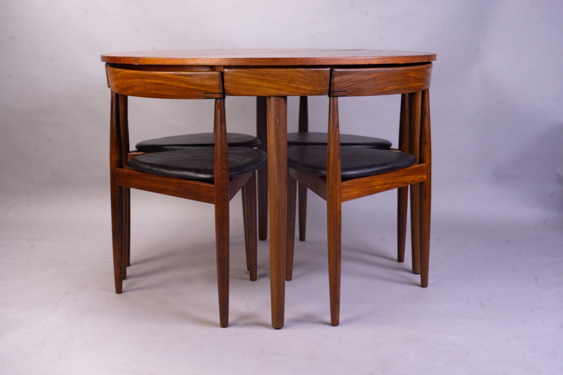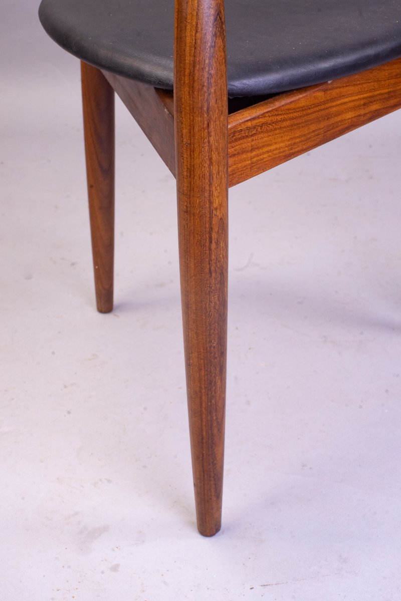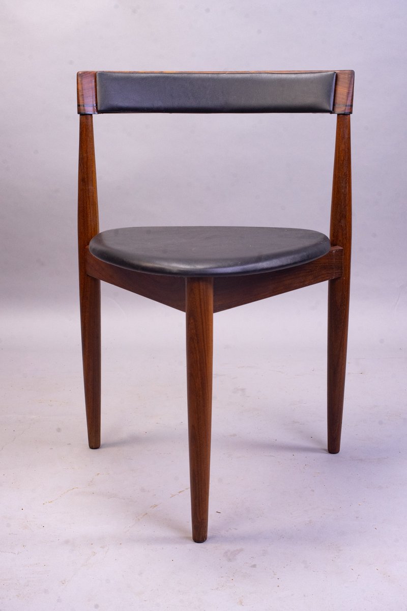 Olsen’s first successful design was the Roundette Dining Set (1952) for Frem Røjle Møbelfabrik. The compact, teak and leather design was an achievement in form and function, as the chair backs seamlessly tuck under the tabletop. Other standout designs from Olsen include the Shell Chair (1955), Easy Chair (1955), Fried Egg Chair (1956), the modular TV-bench (1956), CS500 Series (1962), Model 532A Rocking Chair (1963), and the Bikini Chair (1968)—iconic for its futuristic silhouette. Olsen’s Frederik the 9th Chair (1964)—named after Danish King Frederik VII, who apparently preferred sitting backwards—won the A.I.D gold medal in 1965.