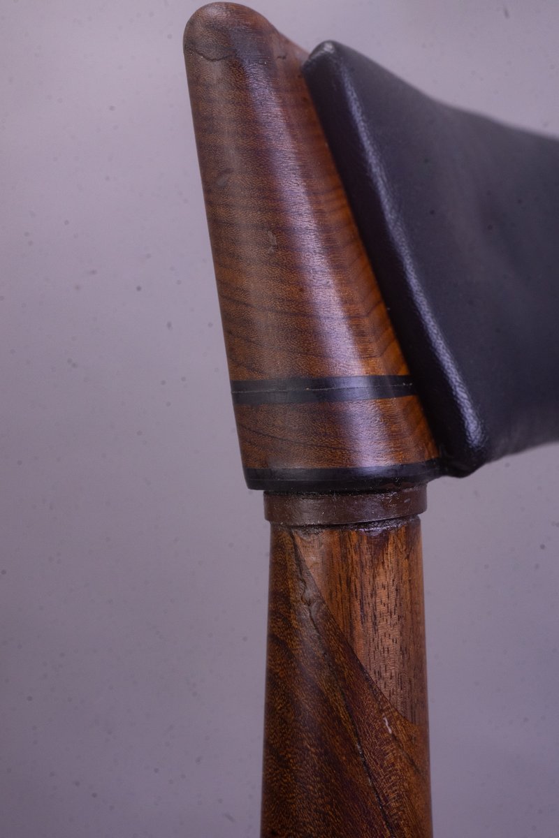 While many his Danish contemporaries—such as Arne Jacobsen, Poul Kjærholm, Børge Mogensen, and Hans Wegner—embraced the “Klint School” of modernism, Olsen was particularly eager to experiment with design and material choices in effort to achieve maximum comfort. Olsen had an affinity for bent laminated wood, which engendered designs with a great freedom of form, both sturdy and lightweight