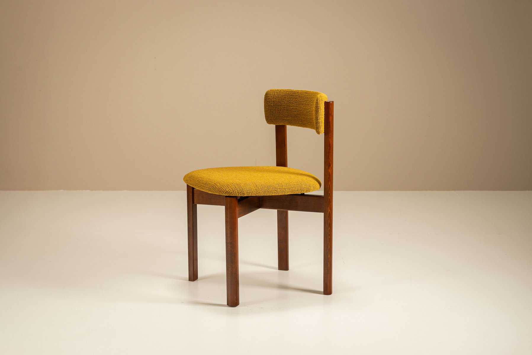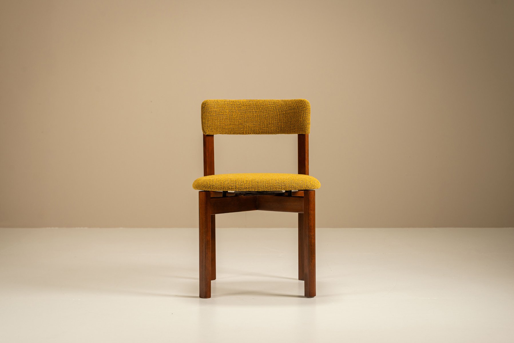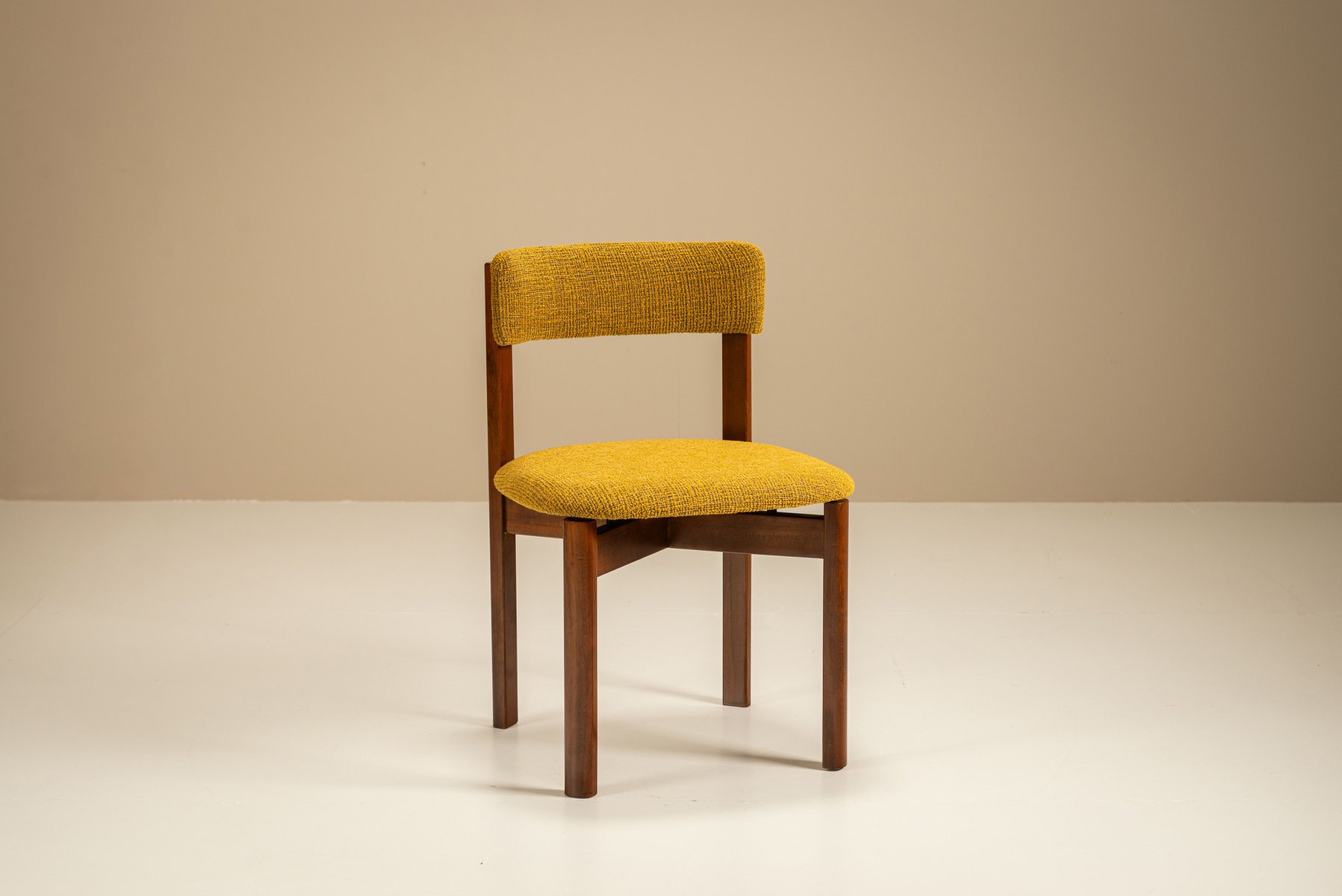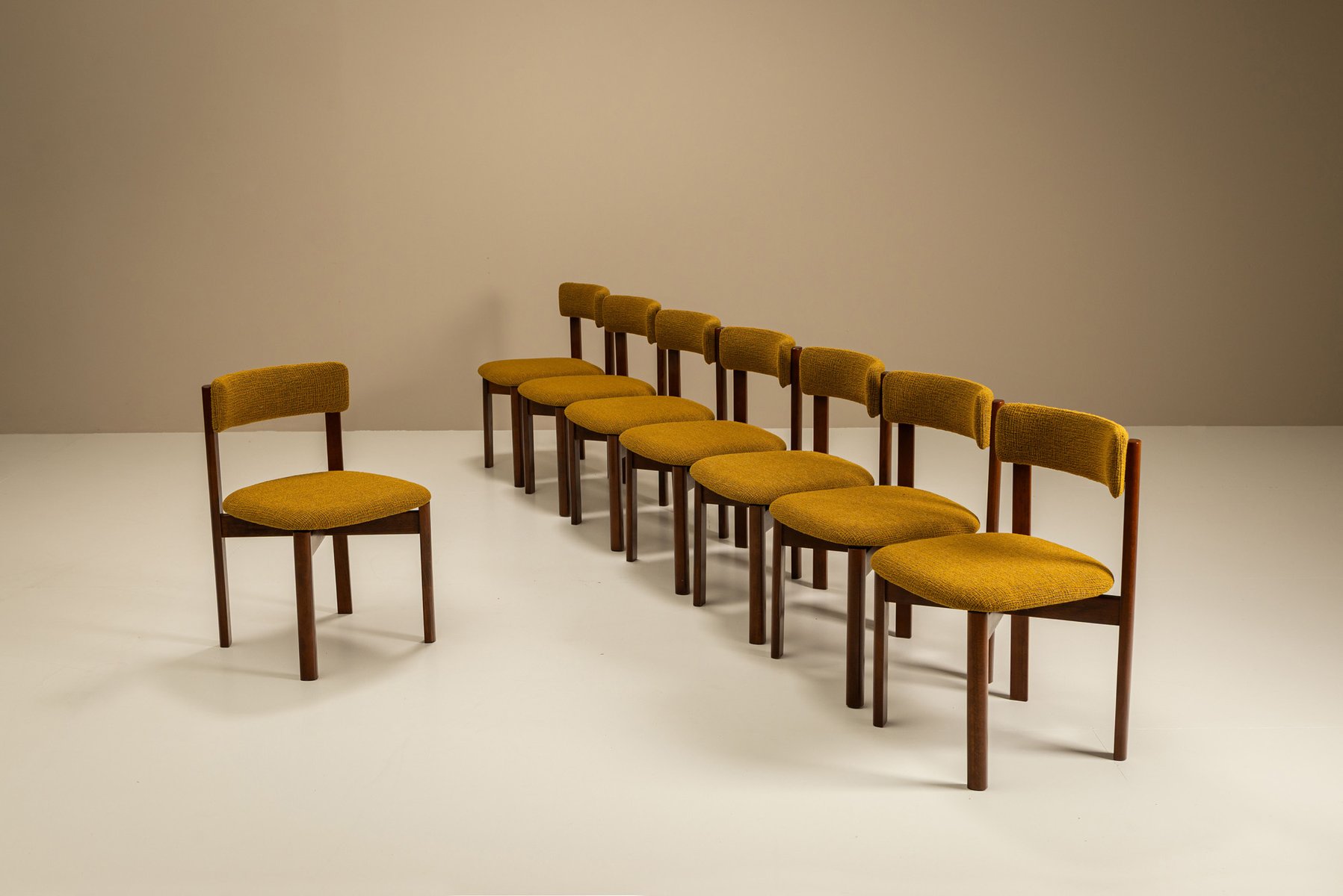 Dining Room Chairs in Ocher Fabric, Italy, 1970s, Set of 8
