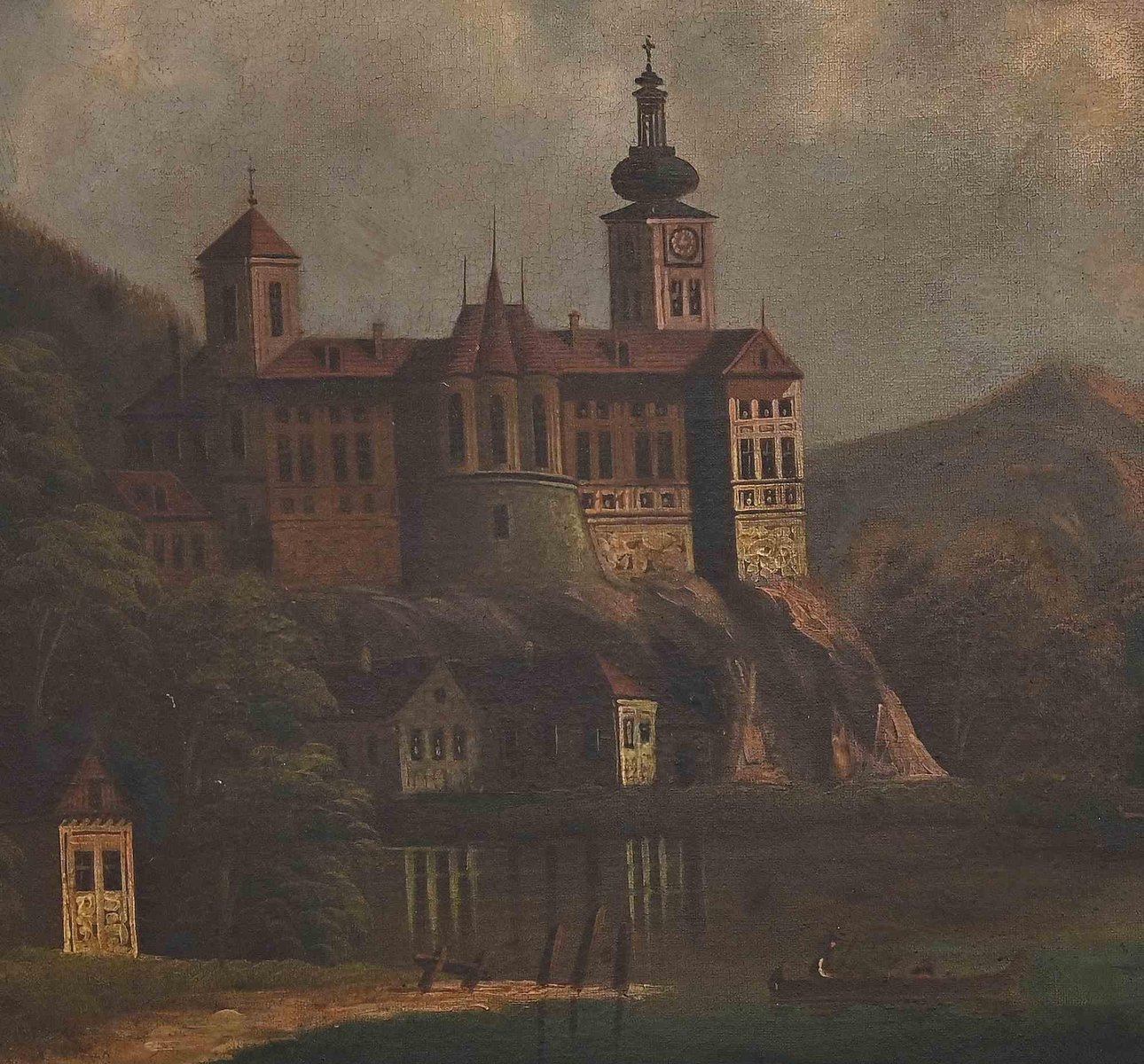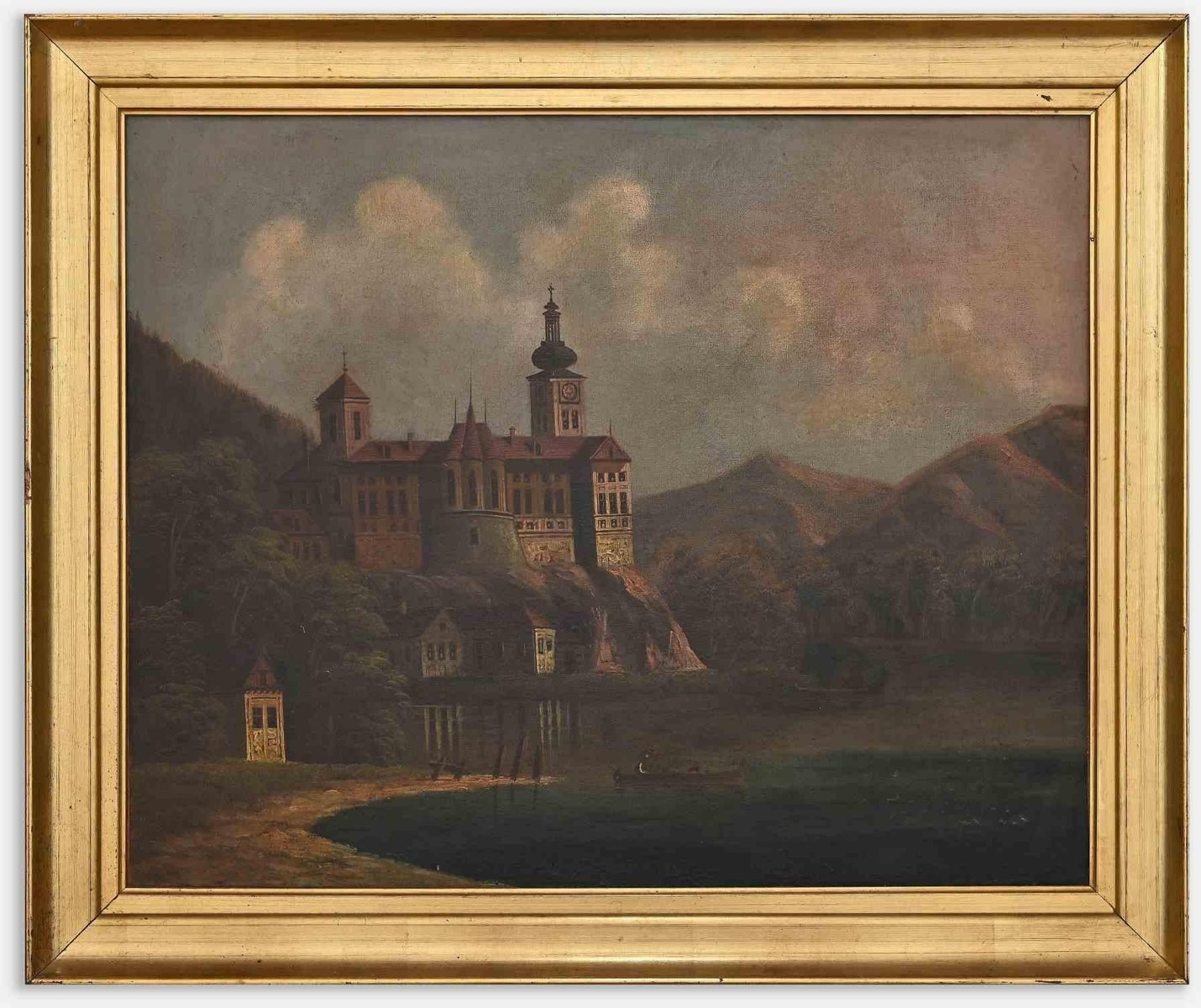 Dutch Artist, Castle View on a Lake, Oil Painting, Late 19th Century