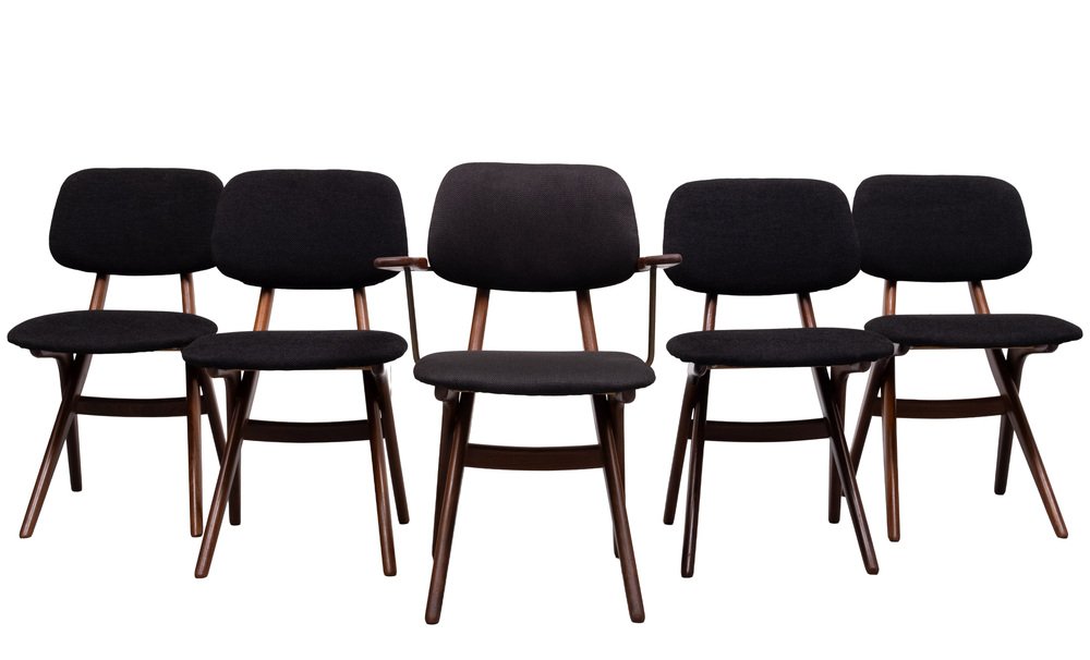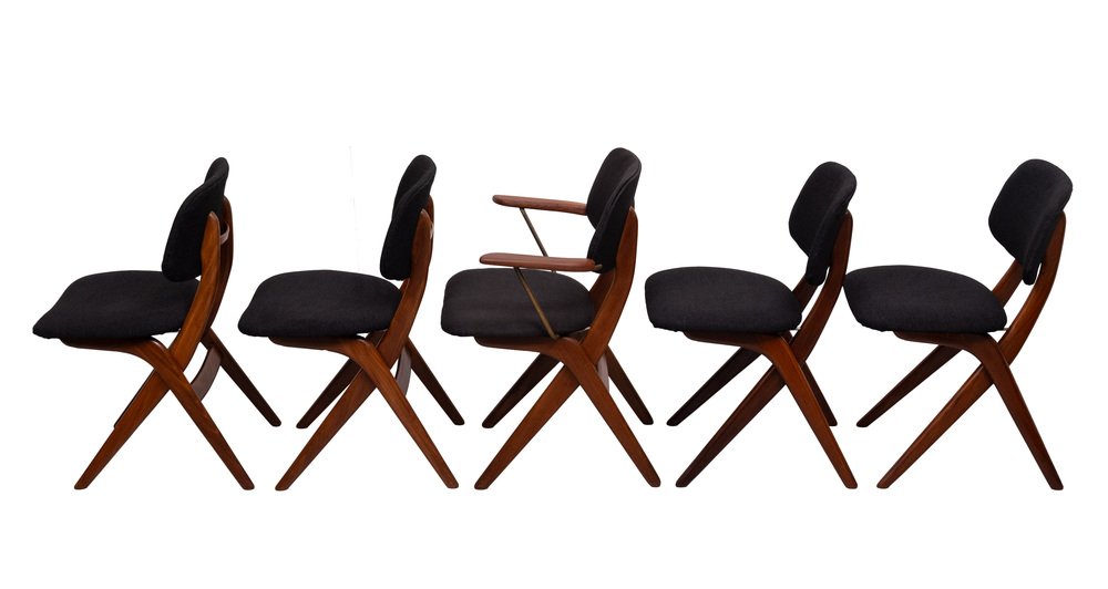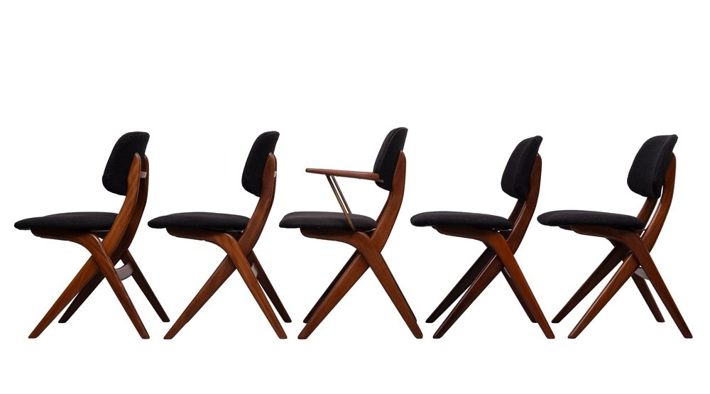 Dutch Scissors Dining Chairs by Louis van Teeffelen for WéBé, 1950s, Set of 5