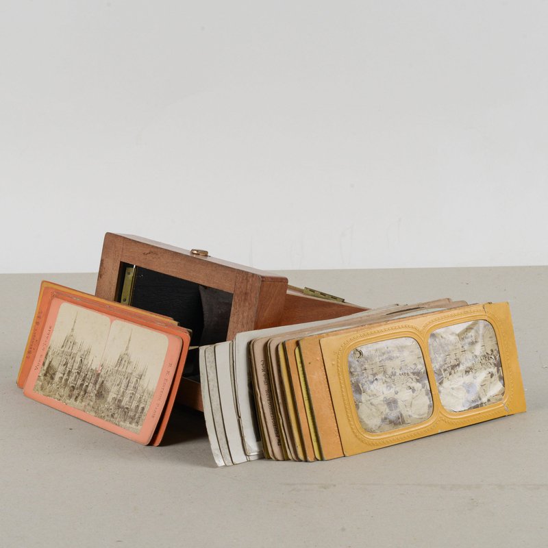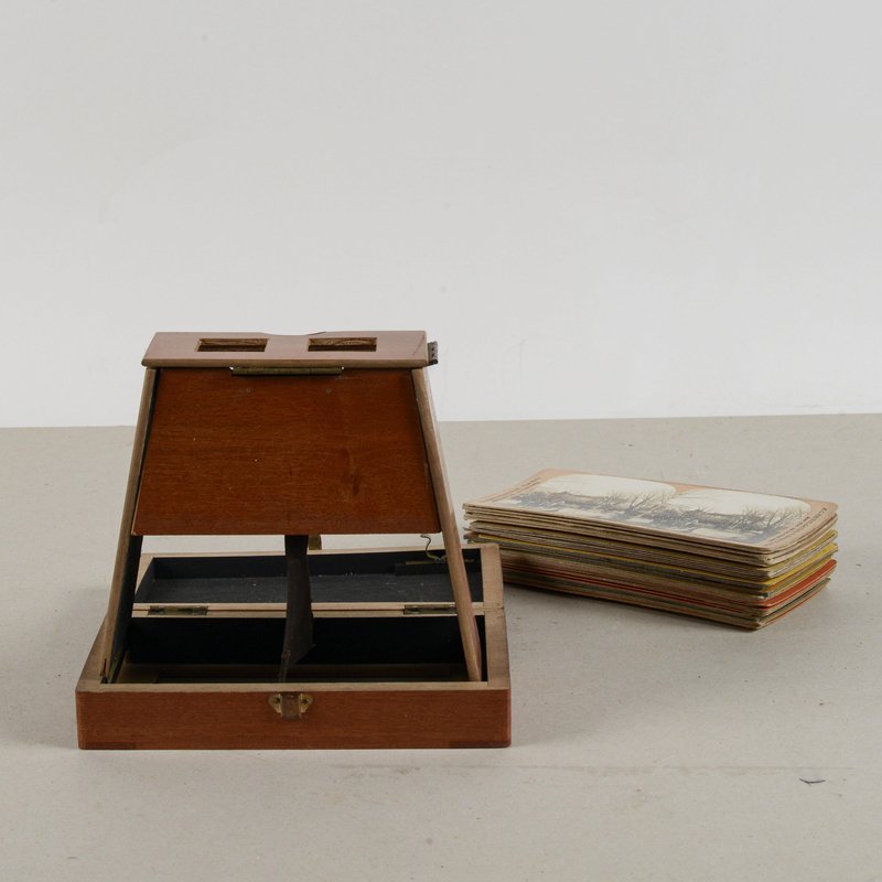 Early 20th Century Pocket Stereoscope Photographic Viewer with Photographs
