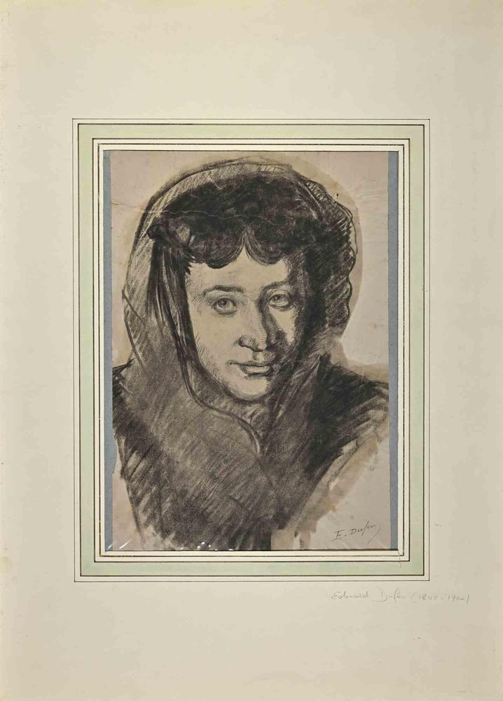 Edouard Dufeu, Portrait, Original Charcoal & Watercolor, Late 19th Century