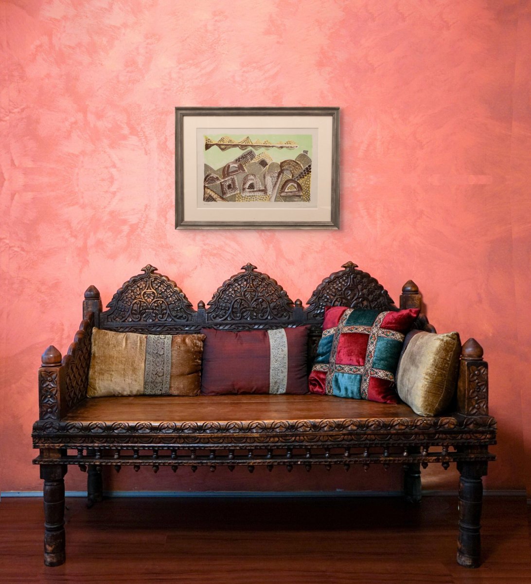 Eduard Bargheer, Village in the Desert, Color Lithograph